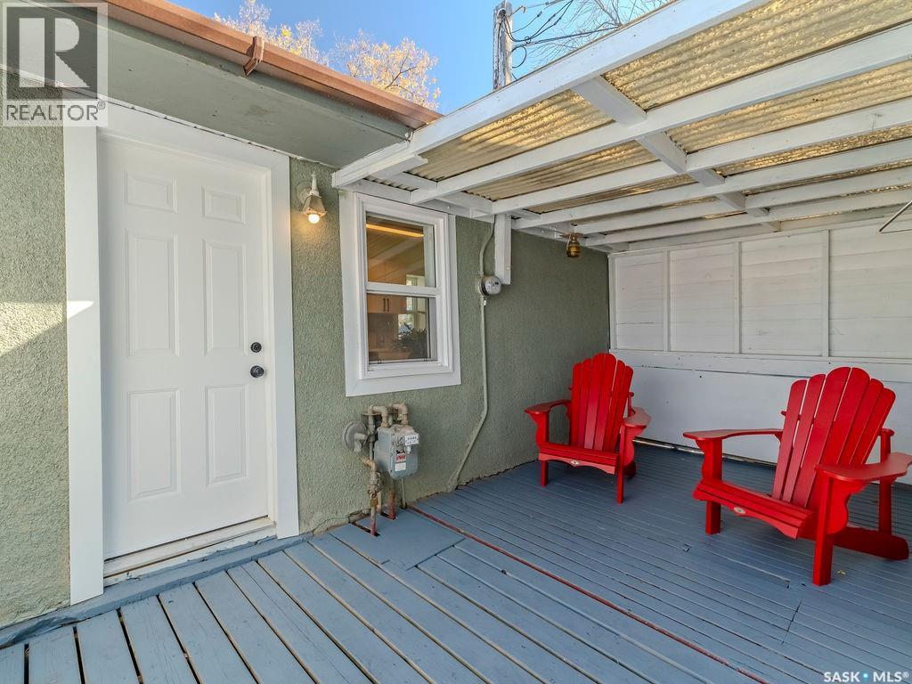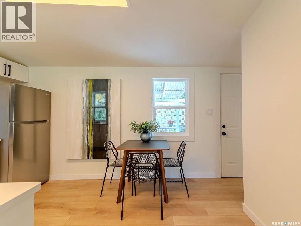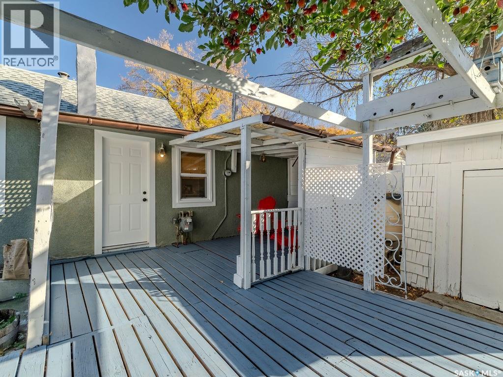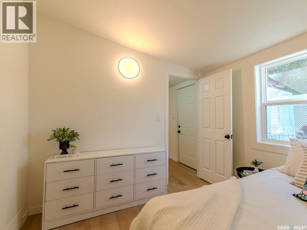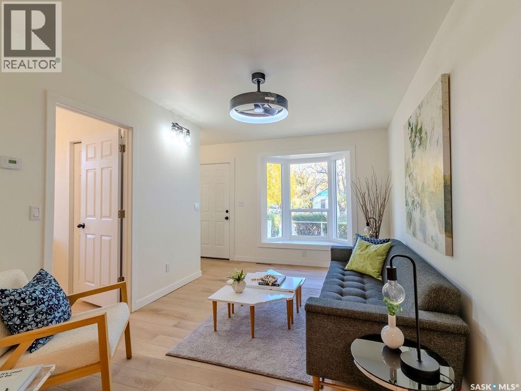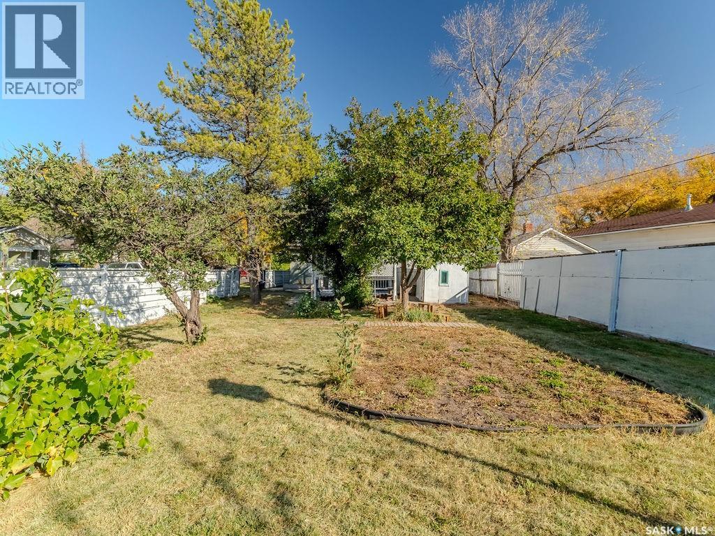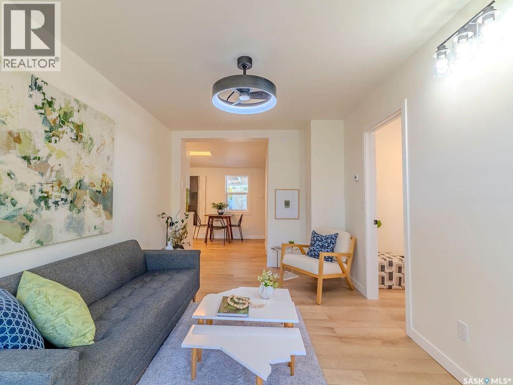 Welcome to 1423 6th Ave N, a cozy renovated home on a desirable corner lot. This property features 2 bedrooms, 1 full bathroom, and a bright, sun-filled living space with large bay windows. The modern kitchen with new appliances adds both style and functionality. Located in a well-established neighborhood, this home offers excellent access to downtown, Circle Drive, the industrial area. Elementary schools, and the river—within walking distance. The mature backyard is a true highlight, with apple and cherry trees, grape vines, birdhouses, a deck with a built-in bench (partially enclosed), and plenty of room for outdoor enjoyment. With two-street access and a spacious yard, there’s strong potential for a future garden suite or additional development check with city permits. This charming home is perfect for first-time buyers, investors, or anyone looking for a centrally located property with great possibilities. (id:44393)