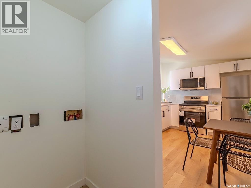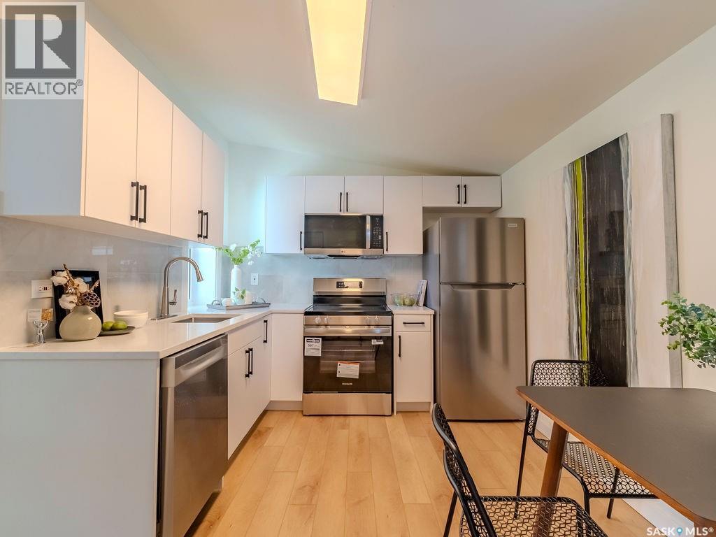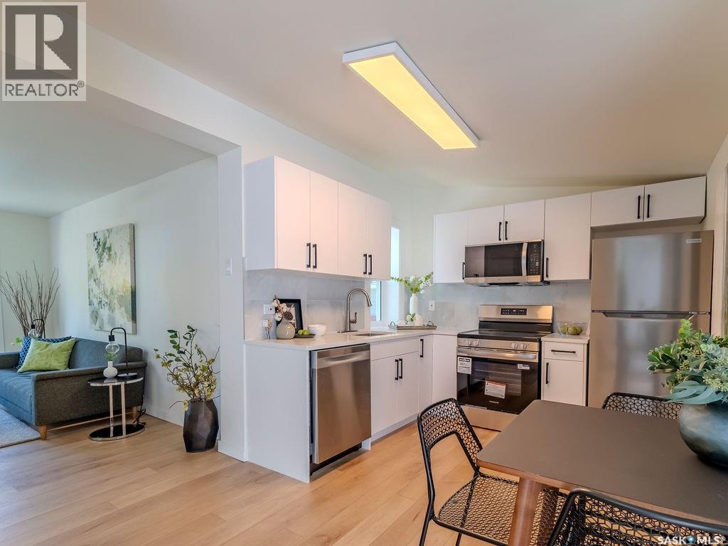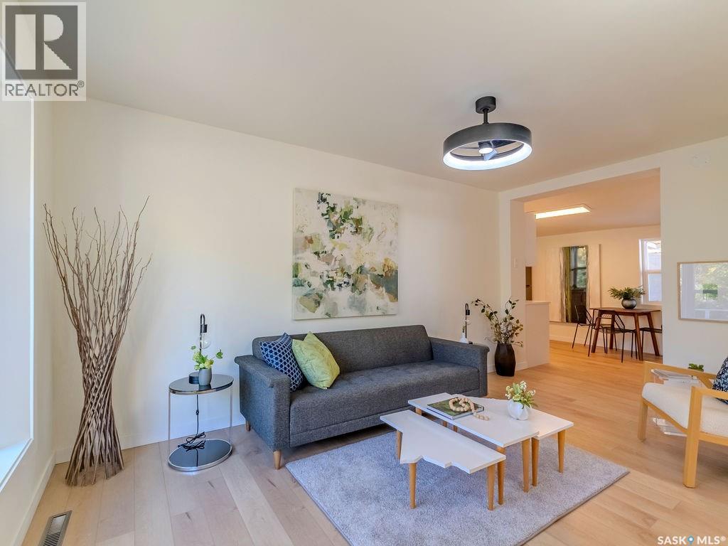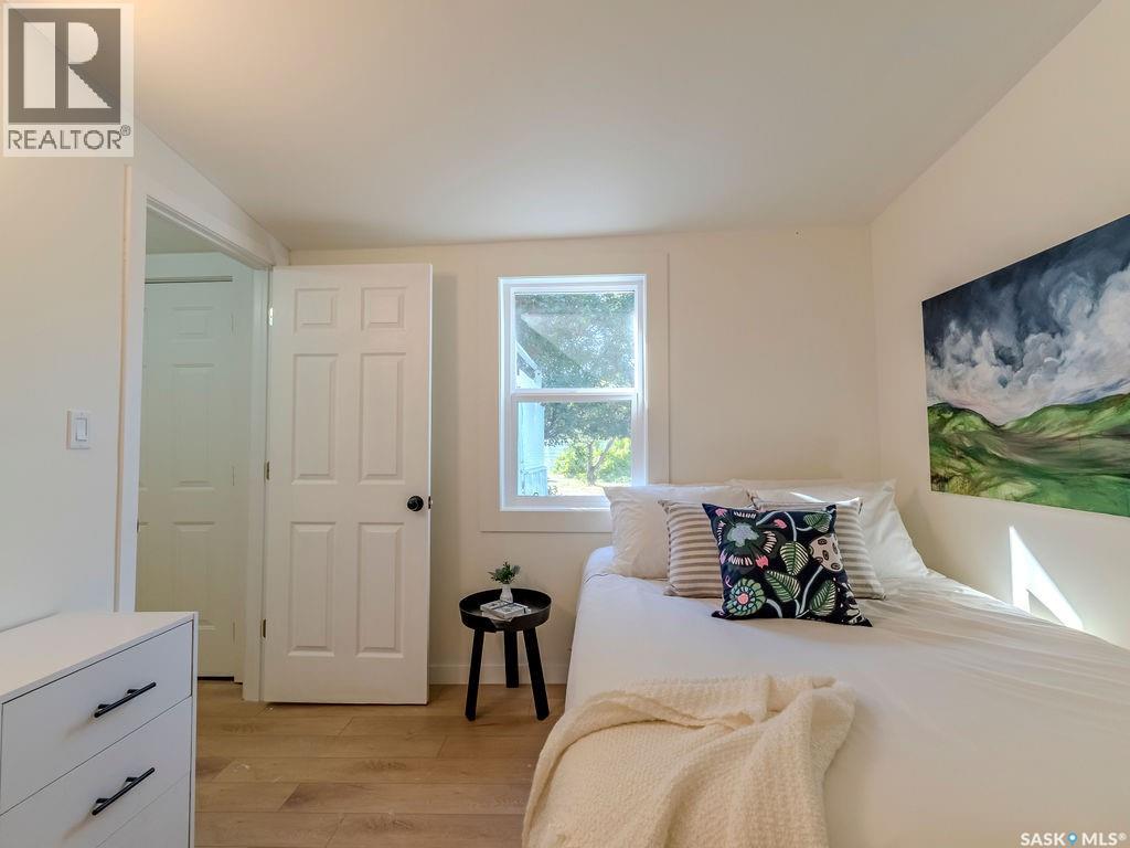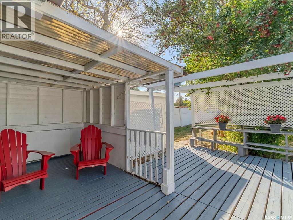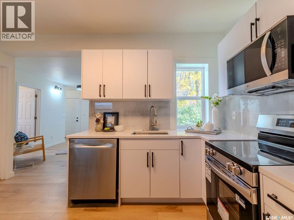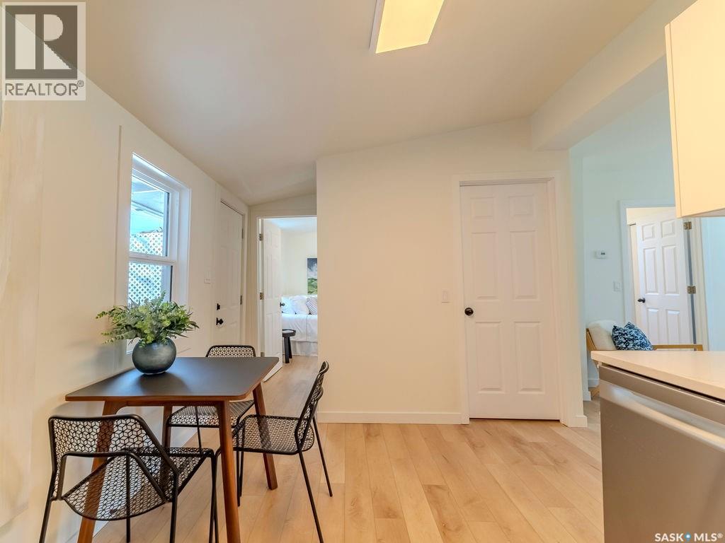 Welcome to 1423 6th Ave N, a cozy renovated home on a desirable corner lot. This property features 2 bedrooms, 1 full bathroom, and a bright, sun-filled living space with large bay windows. The modern kitchen with new appliances adds both style and functionality. Located in a well-established neighborhood, this home offers excellent access to downtown, Circle Drive, the industrial area. Elementary schools, and the river—within walking distance. The mature backyard is a true highlight, with apple and cherry trees, grape vines, birdhouses, a deck with a built-in bench (partially enclosed), and plenty of room for outdoor enjoyment. With two-street access and a spacious yard, there’s strong potential for a future garden suite or additional development check with city permits. This charming home is perfect for first-time buyers, investors, or anyone looking for a centrally located property with great possibilities. (id:44393)