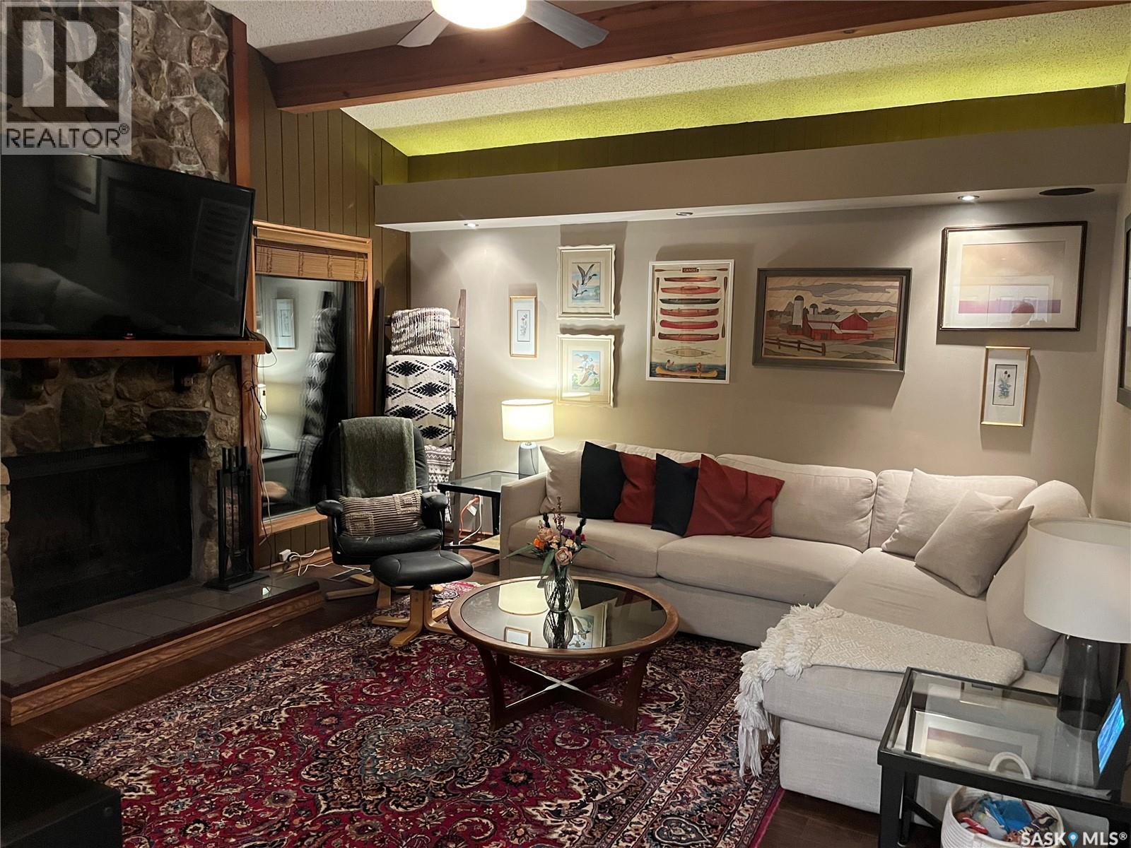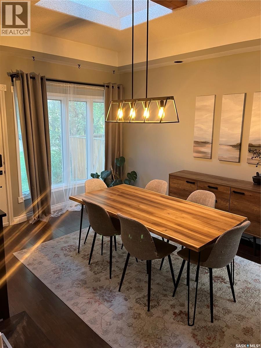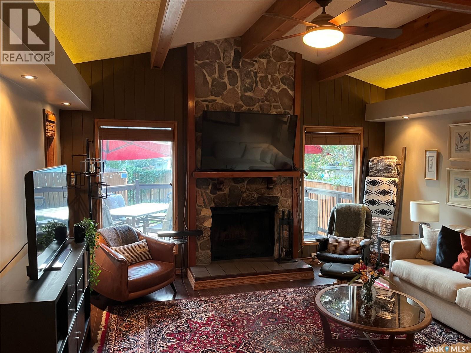 Absolutely beautiful one of a kind, spacious two bedroom one bathroom bungalow with true character. The original home had two additions in 1979 and 1981 with a beautiful dining room feature a beautiful sky light and feature shelving, as well as a spacious living room with cathedral ceilings and a wood fireplace in a fieldstone feature wall. This home features quality finishes. The backdoor opens out onto a spacious wraparound deck facing a beautifully landscaped and fenced backyard. Included in the sale is a patio table with chairs, a sectional, propane fire table, and two large umbrellas. The Smart Thermostat is included.There is a convenient lean too shed attached to the north side of the home. There are two parking spaces off a paved back lane. Plenty of space for a future double garage. We have the building plans from the City of Regina for both the dining room addition and the living room addition, that indicate that their foundations are built on piles, with crawl space. We also have an Engineer’s Certificate. Showings are easy to book on Broker Bay. (id:44393)