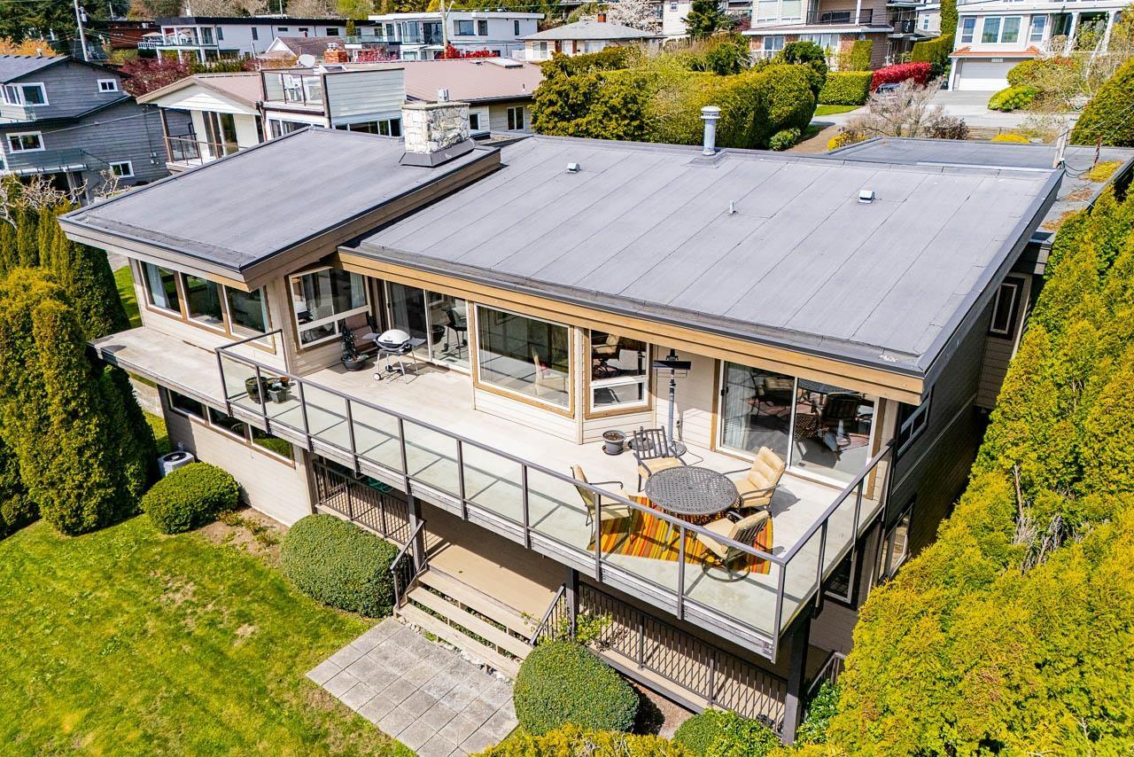 Panoramic, ocean view on rare, 14,000 sq ft lot in White Rock. This home has unique architecture throughout with original wood, vaulted ceilings. Completely renovated in 2010 including Hardy Board siding exterior, spa-like bathrooms, new roof, new windows, new furnace plus a heat pump for a/c. Four bedrooms upstairs with one down. Home could easily be suited. Future plan could be to subdivide the property with a panhandle lot or build your dream home of three stories with ocean views from every floor. Fantastic opportunity for the savvy buyer. (id:44393)