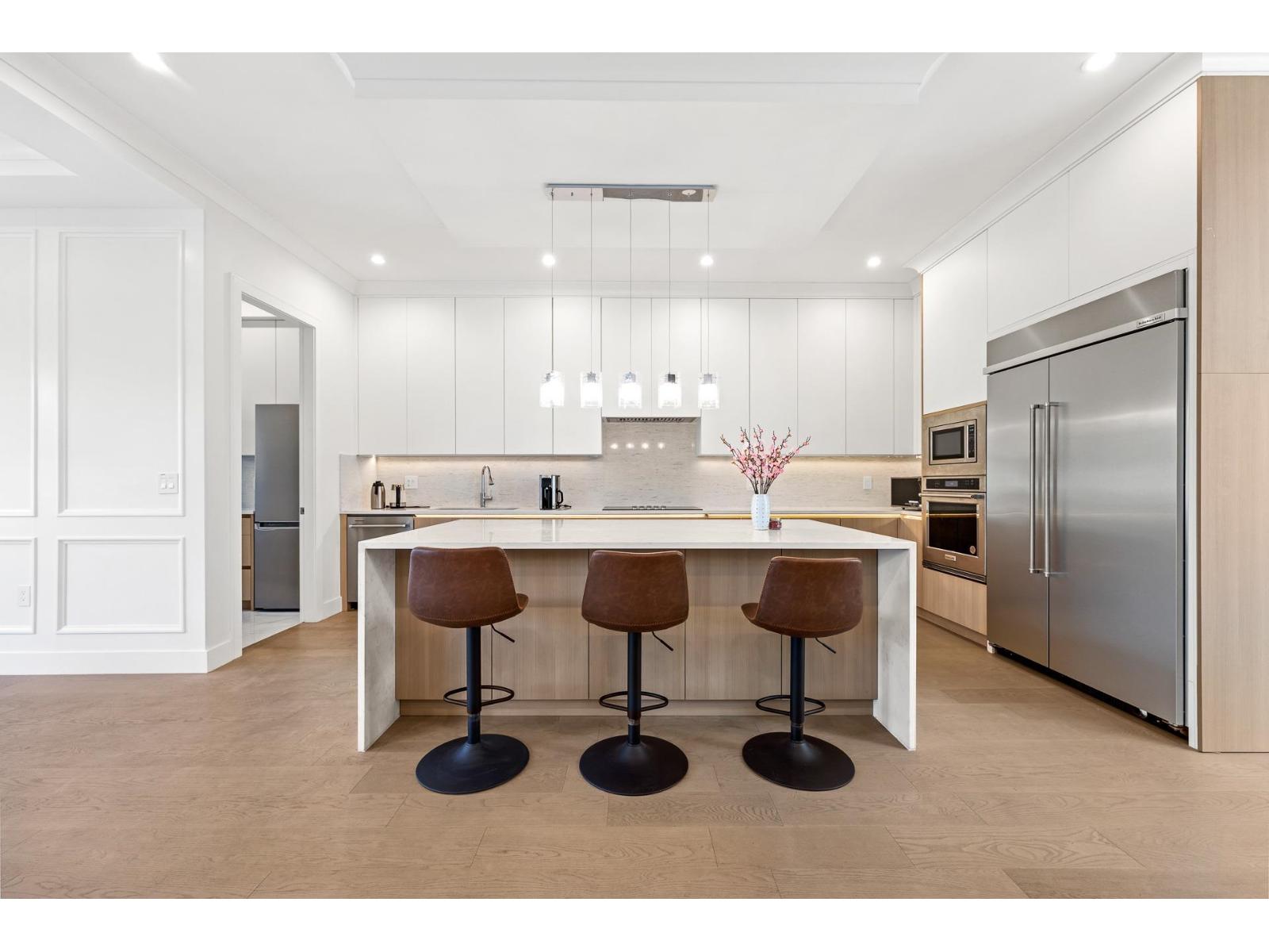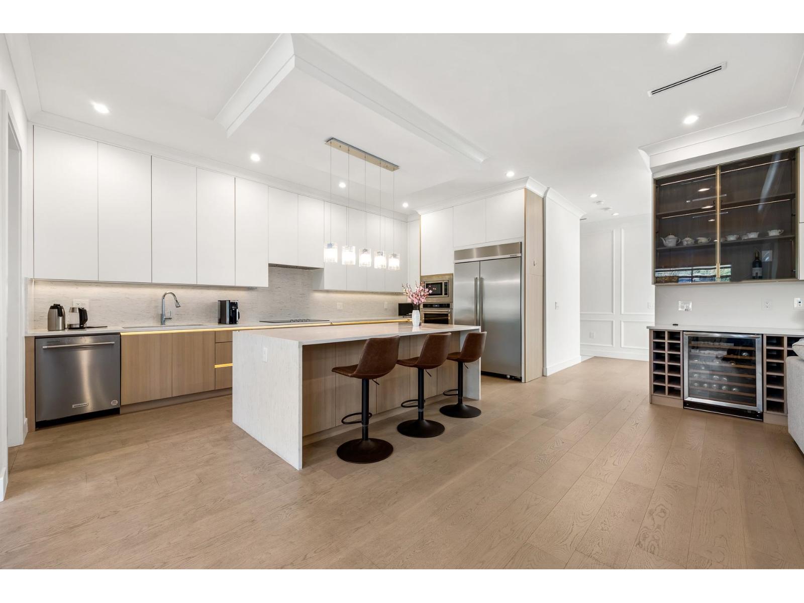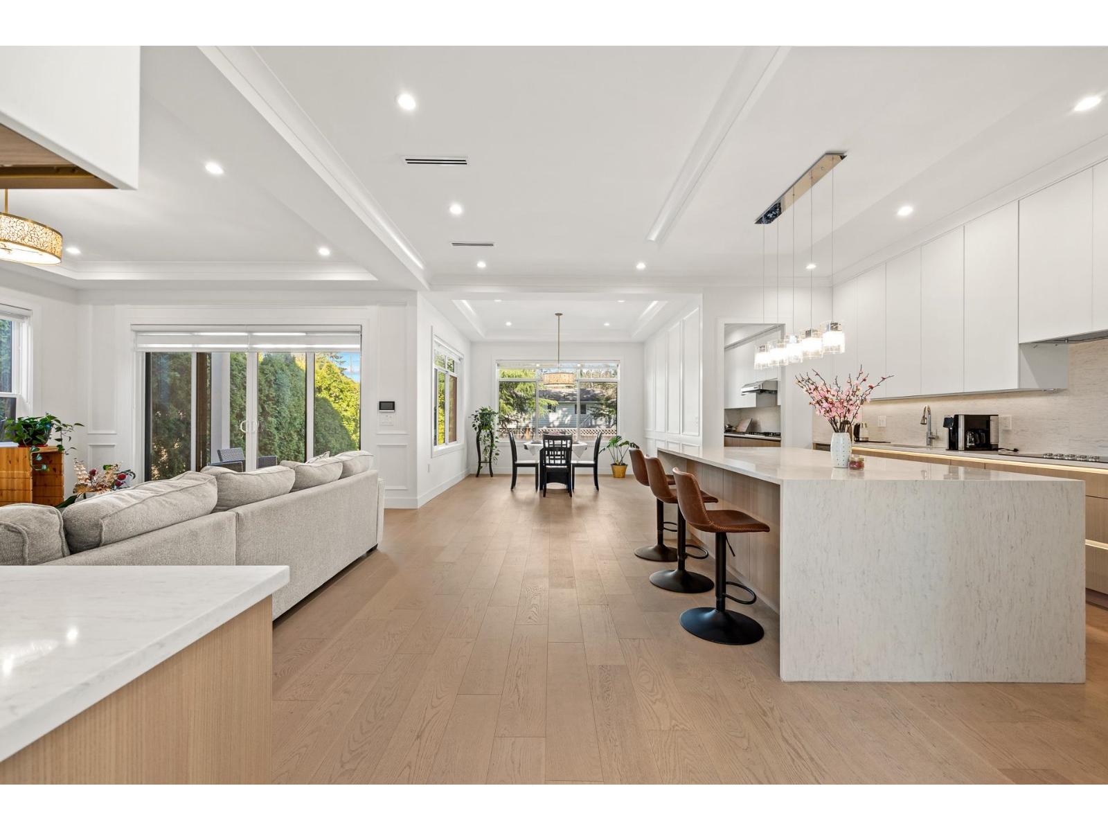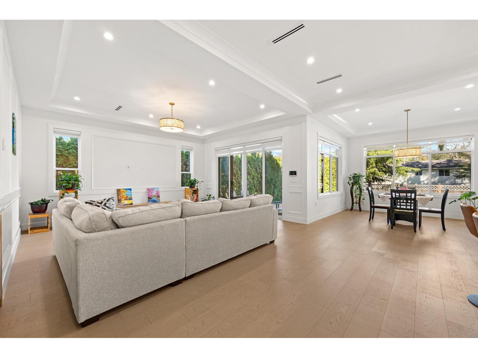 Extraordinary custom-built 6-bedroom, 6-bathroom home featuring a 2-bedroom legal suite. Nestled in a prime, amenity-rich South Surrey neighbourhood and boasting superior build quality. Enjoy engineered hardwood flooring on all levels, designer lighting, radiant heating, and air conditioning. The bright living room impresses with soaring 20' ceilings, creating a grand and open atmosphere. The stunning main kitchen & wok kitchen are complemented by an adjacent dining area and spacious family room, extending to a large patio & private backyard. Upstairs features 4 generously sized bedrooms, each with ensuite, highlighted by a luxurious primary suite. Walk to top-ranked schools: Bayridge Elementary and Semiahmoo Secondary, shops, amenities & beach. (id:44393)