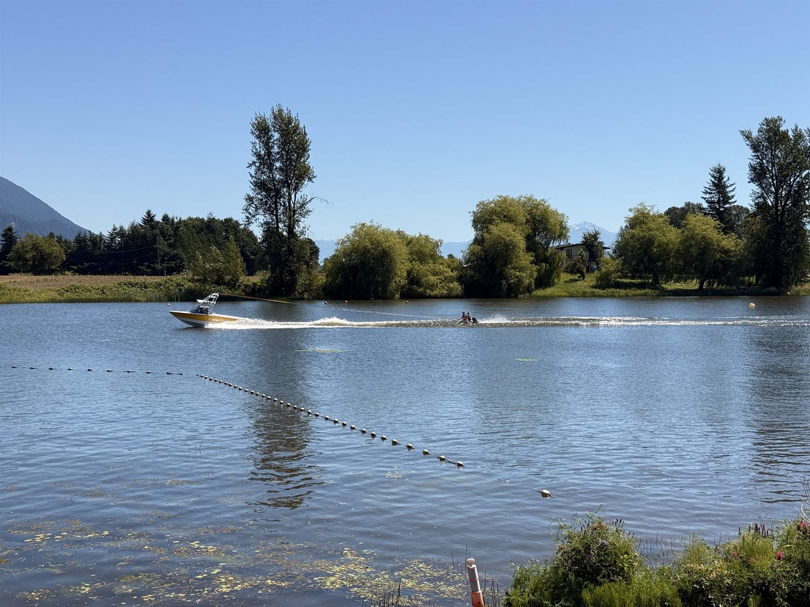 DOUBLE LOT. Rare WATERFRONT CABIN on Hatzic Lake. A cabin with a DOUBLE-LOT ON THE LAKE (married properties #148 & #151) with a huge covered Deck (porch) with glass patio surround and TREX decking. New kitchen with granite countertops (under-mount sink) cabinets and Stainless Steel appliances. New Tile Bathroom with stand-up shower (glass door) cabinets, granite and fancy sink. (SEE PICTURES) Minutes to Mission and about an hour from Vancouver. Enjoy water skiing, fishing, - Never book a campsite again. Local retreat getaway with amazing Mountain and Lake views. This GATED RESORT is a great community and offers a playground, basketball court, Club House, washrooms with showers, picnic area, 2 boat launches, beach (swimming) area and Wifi. Golf carts welcome. Sorry, no year round living. (id:44393)