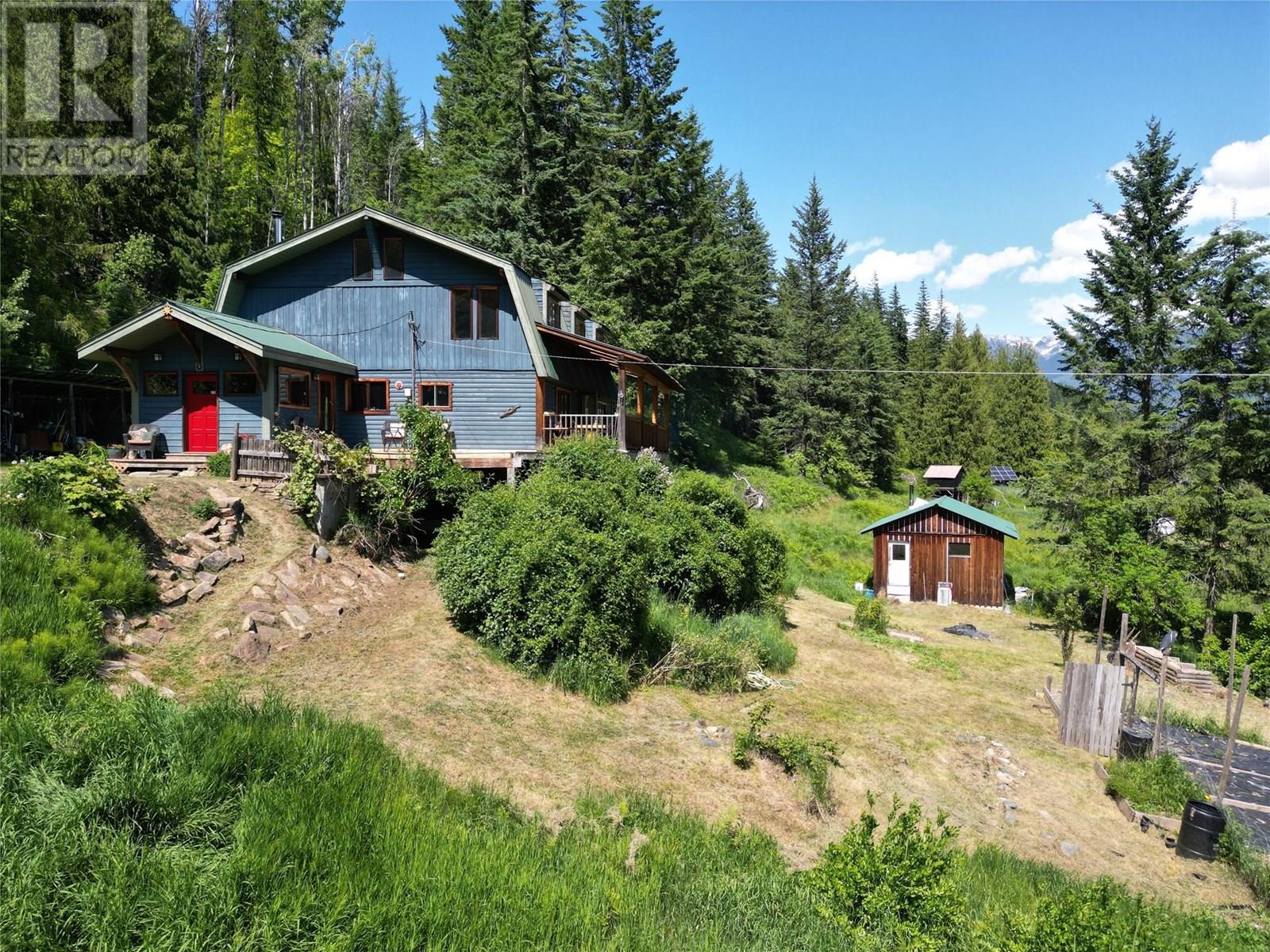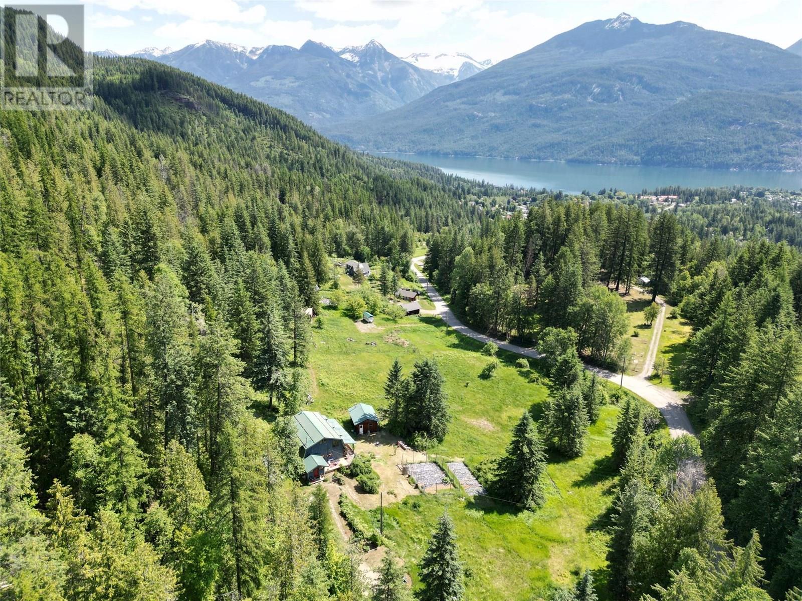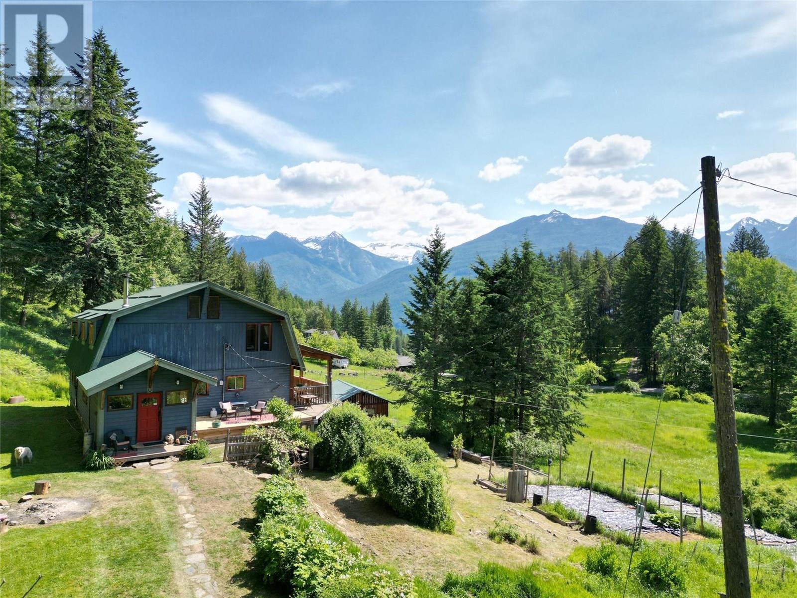 Perched on 2 acres of fertile land with sweeping views of the Purcell Mountains and Kootenay Lake, this stunning rural retreat offers both tranquillity and convenience. Just minutes from the charming town of Kaslo and the lake’s pristine shoreline, the property delivers the best of Kootenay living. Perfectly positioned to take advantage of full southern exposure, this setting is hard to beat. Step onto the large covered post and beam deck and soak in the sunshine and panoramic mountain views. The spacious 4 bedroom, 2 bathroom home is thoughtfully crafted with natural materials throughout. Wood and tile finishes create a warm, grounded aesthetic that blends beautifully with the surrounding landscape. With vaulted ceilings and an abundance of windows, natural light pours in all day. A 1385 sq ft unfinished basement offers excellent development potential. Whether you envision additional living space, a rental suite, or a hobby area, the possibilities are wide open. You’ll enjoy gravity fed spring water, generous garden space, and endless potential to live off the land. An 18 by 28 foot insulated shop, built on a full foundation, adds exceptional value, ideal for a woodworking studio, creative space, or home office. Whether you're looking to homestead, raise a family, or simply unwind in a natural setting, this rare acreage offers the lifestyle you’ve been searching for. (All measurements approximate) (id:44393)