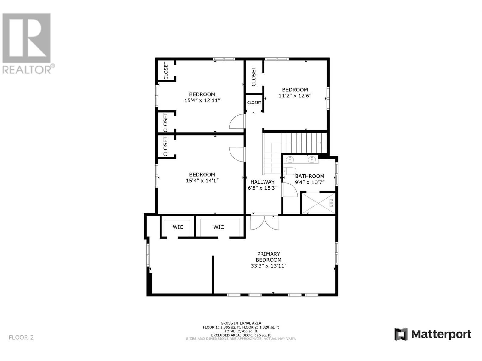 Second Level | Primary Bedroom | 13'11'' x 33'3'' | ||