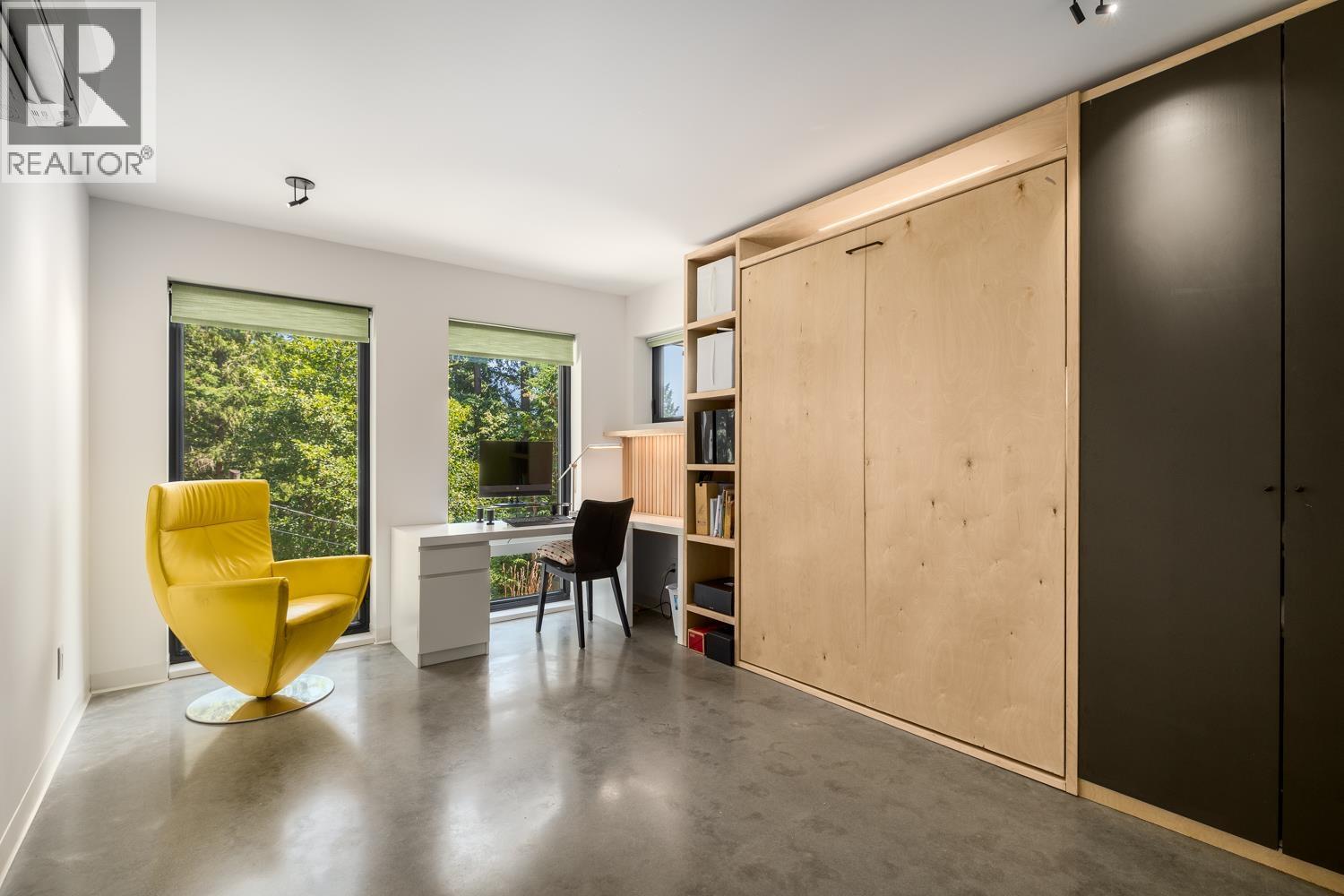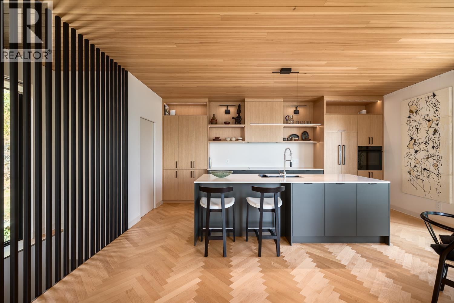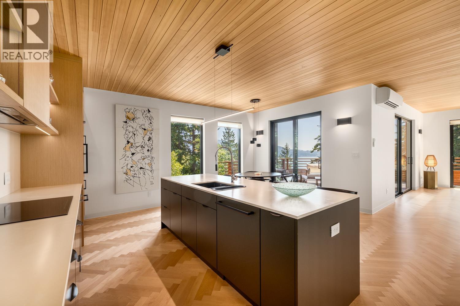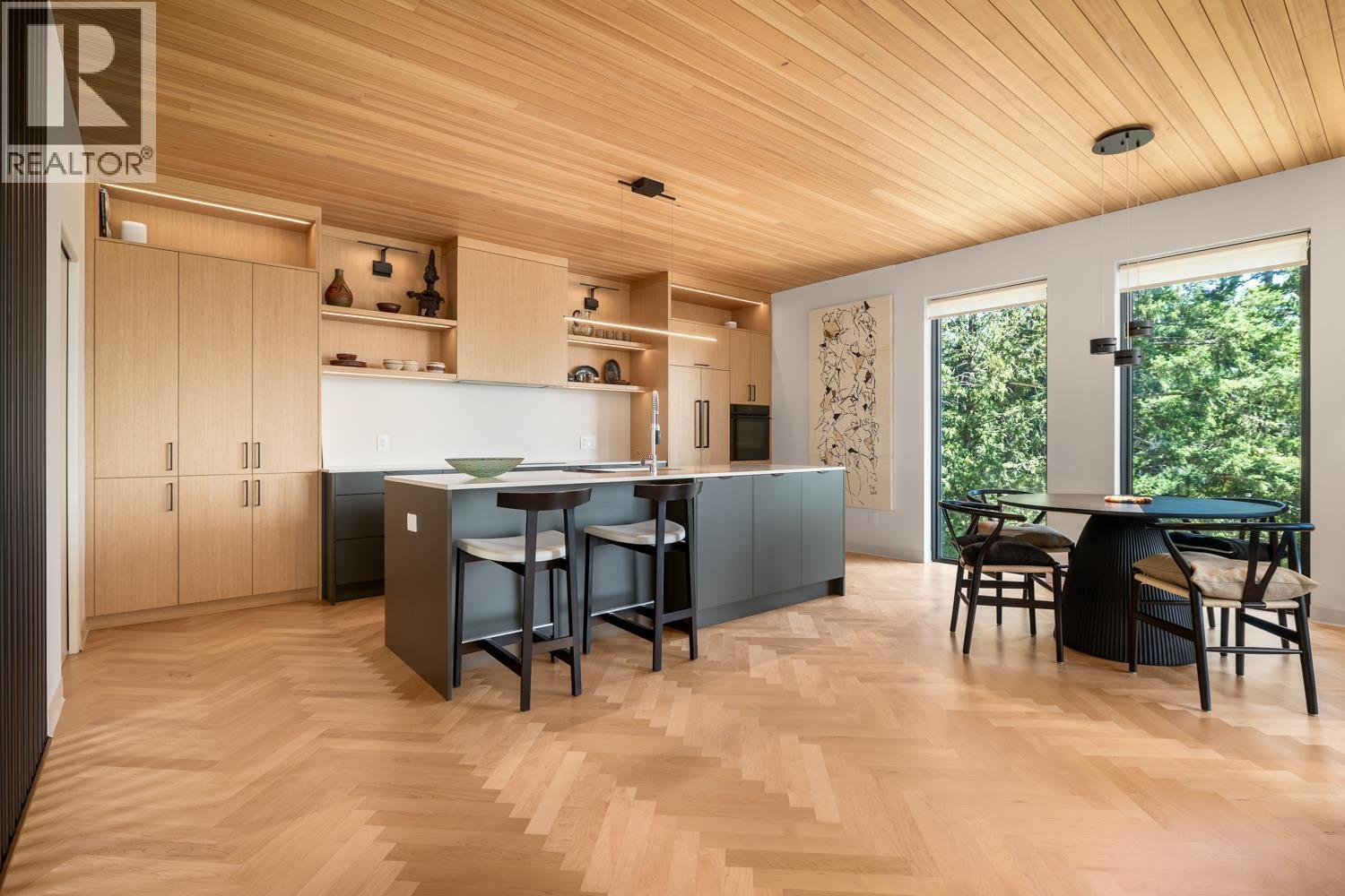 Step inside this sleek, thoughtfully designed home and immediately feel a sense of calm. Polished concrete floors on entry; to the upper level Canadian Maple flooring, in the distinctive herringbone pattern; sets the foundation of quality and excellence surrounding you. South facing oversized windows overlooking Howe Sound will catch your attention. Overhead, the clear Hemlock ceilings, soffits and accent wall add to the refinement of this home. Local custom millwork and architectural lighting further elevate. A murphy bed in the flex space creates room for guests. Built to Step Code 4, with Passive House airtightness and home warranty in place, supports comfort and peace of mind. A five minute walk to Eaglecliff Community Beach & dock. On the bus route to/from Snug Cove ticks another box (id:44393)