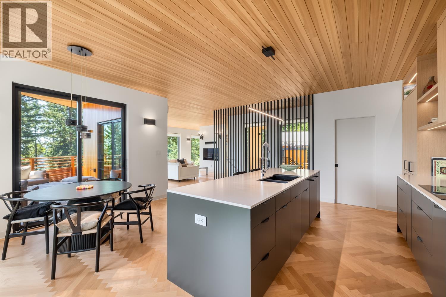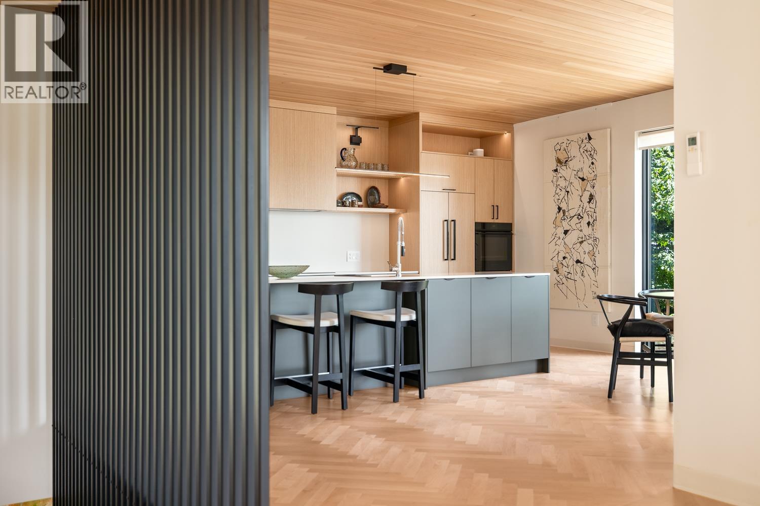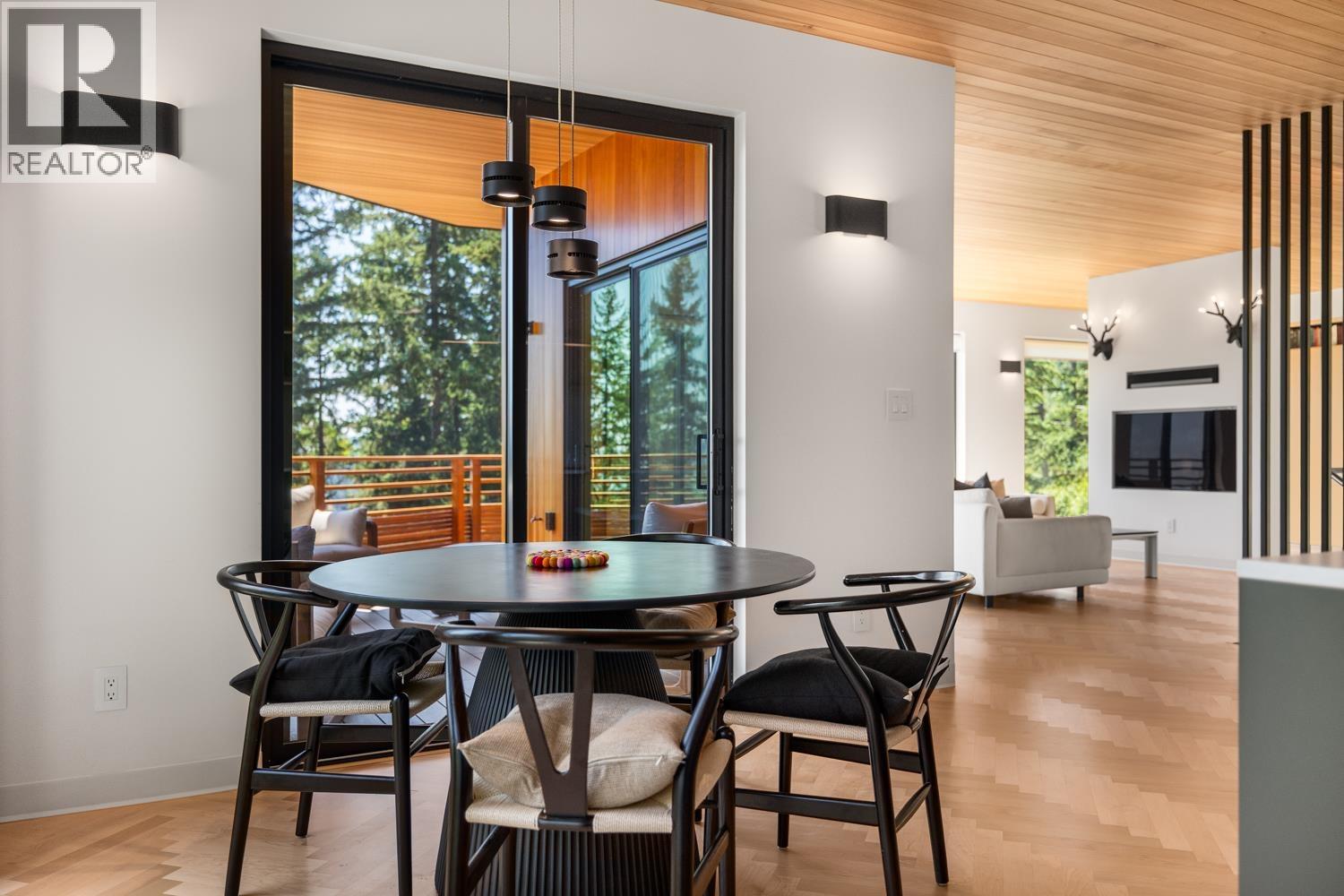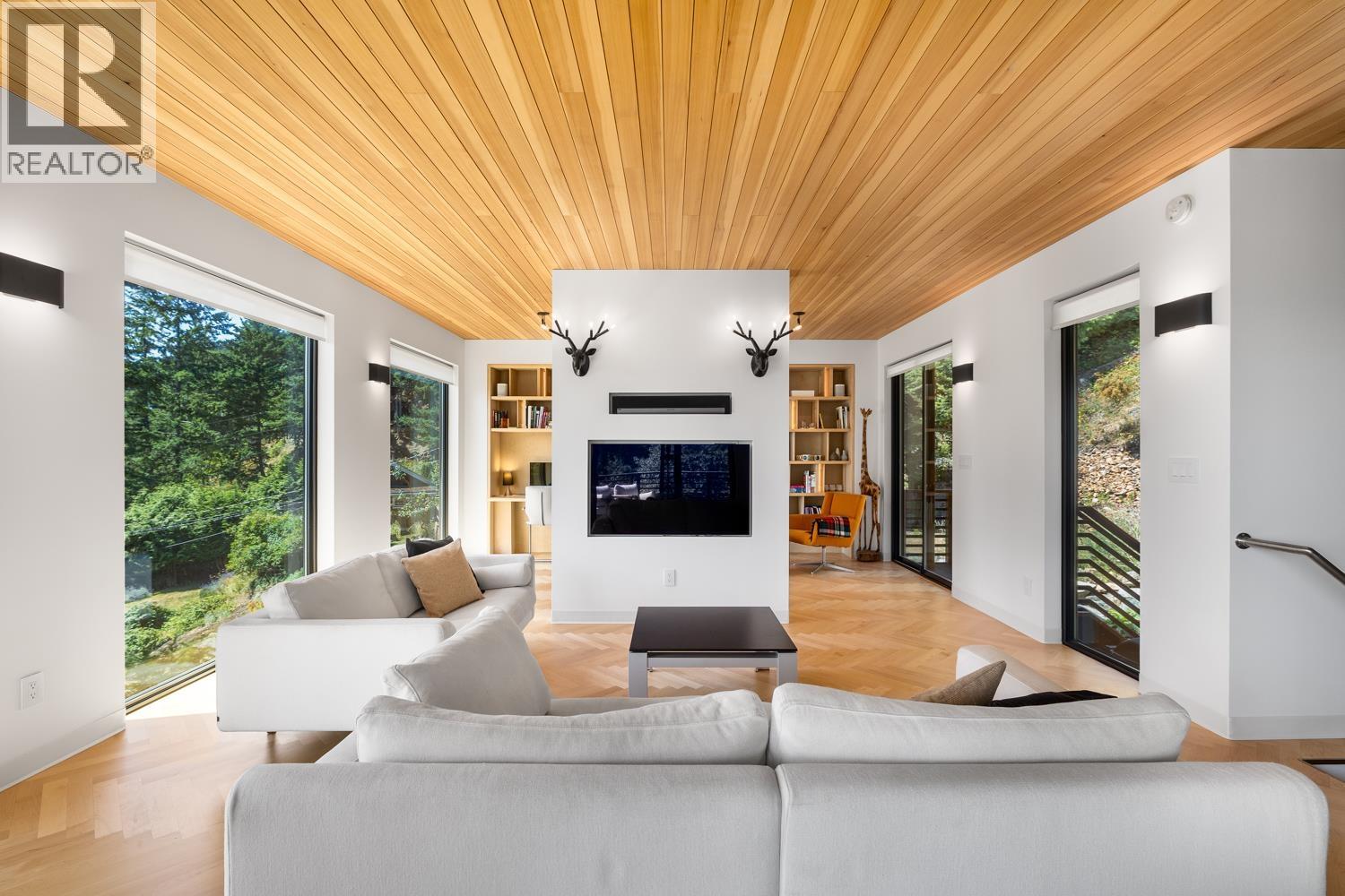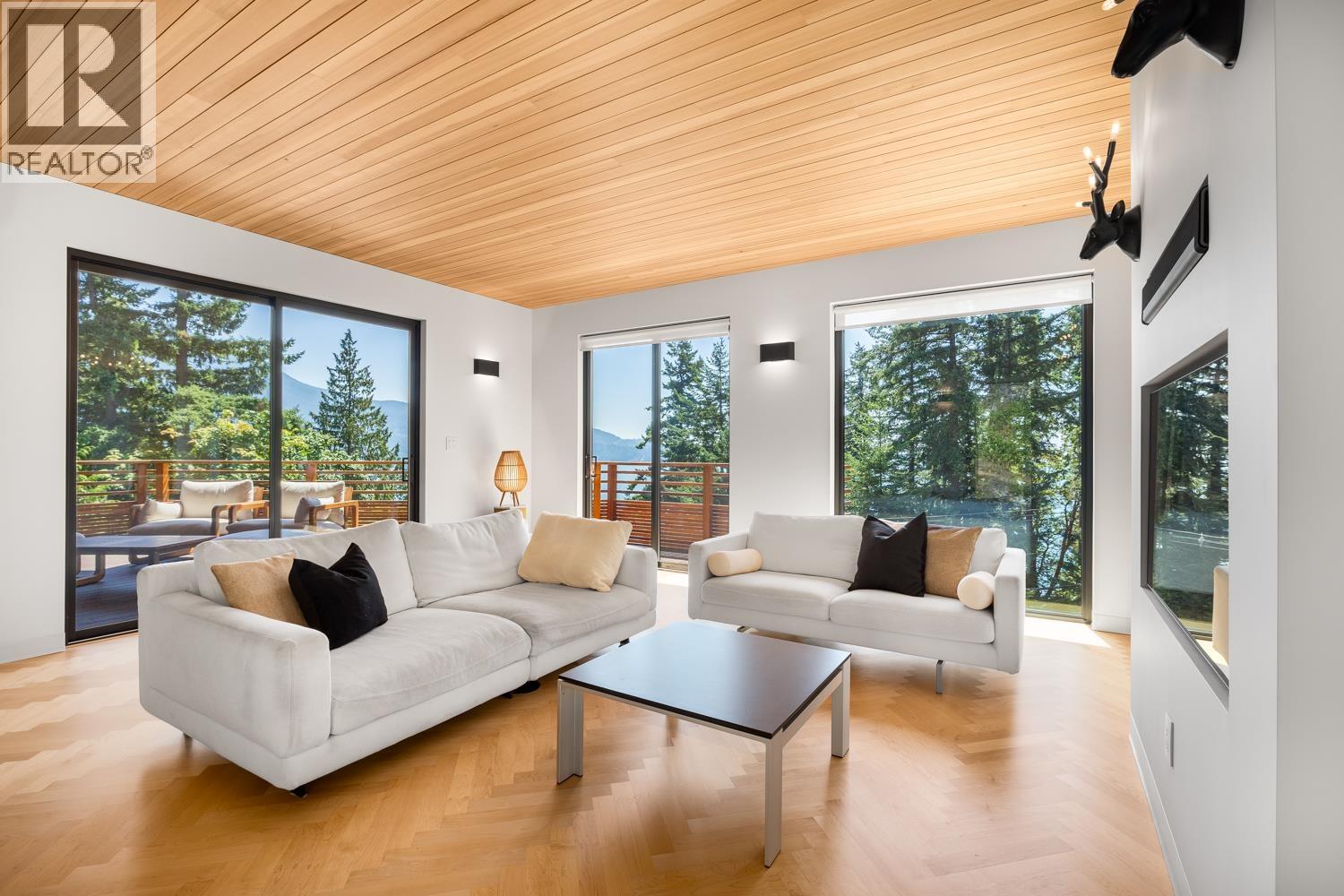 Step inside this sleek, thoughtfully designed home and immediately feel a sense of calm. Polished concrete floors on entry; to the upper level Canadian Maple flooring, in the distinctive herringbone pattern; sets the foundation of quality and excellence surrounding you. South facing oversized windows overlooking Howe Sound will catch your attention. Overhead, the clear Hemlock ceilings, soffits and accent wall add to the refinement of this home. Local custom millwork and architectural lighting further elevate. A murphy bed in the flex space creates room for guests. Built to Step Code 4, with Passive House airtightness and home warranty in place, supports comfort and peace of mind. A five minute walk to Eaglecliff Community Beach & dock. On the bus route to/from Snug Cove ticks another box (id:44393)