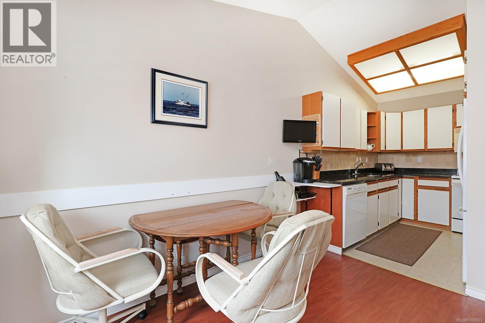 $394.31 MonthlyCheck out this cute West facing patio home in popular Chelsea Court near downtown Comox. Offering almost 1,200sqft this unit features vaulted ceilings, a separate eating nook off the kitchen, heat pump with air conditioning, access to your own partially covered patio area, and a large primary bedroom with an ensuite. The garage offers additional storage, there is parking for two, plus plenty of visitor parking. Located a short walk to a wonderful bakery, coffee shop, and restaurant, or only 1 km to downtown Comox. The location, condition, and well-run strata make this patio home a true gem. For more information, please contact Christiaan Horsfall at 250-702-7150. (id:44393)