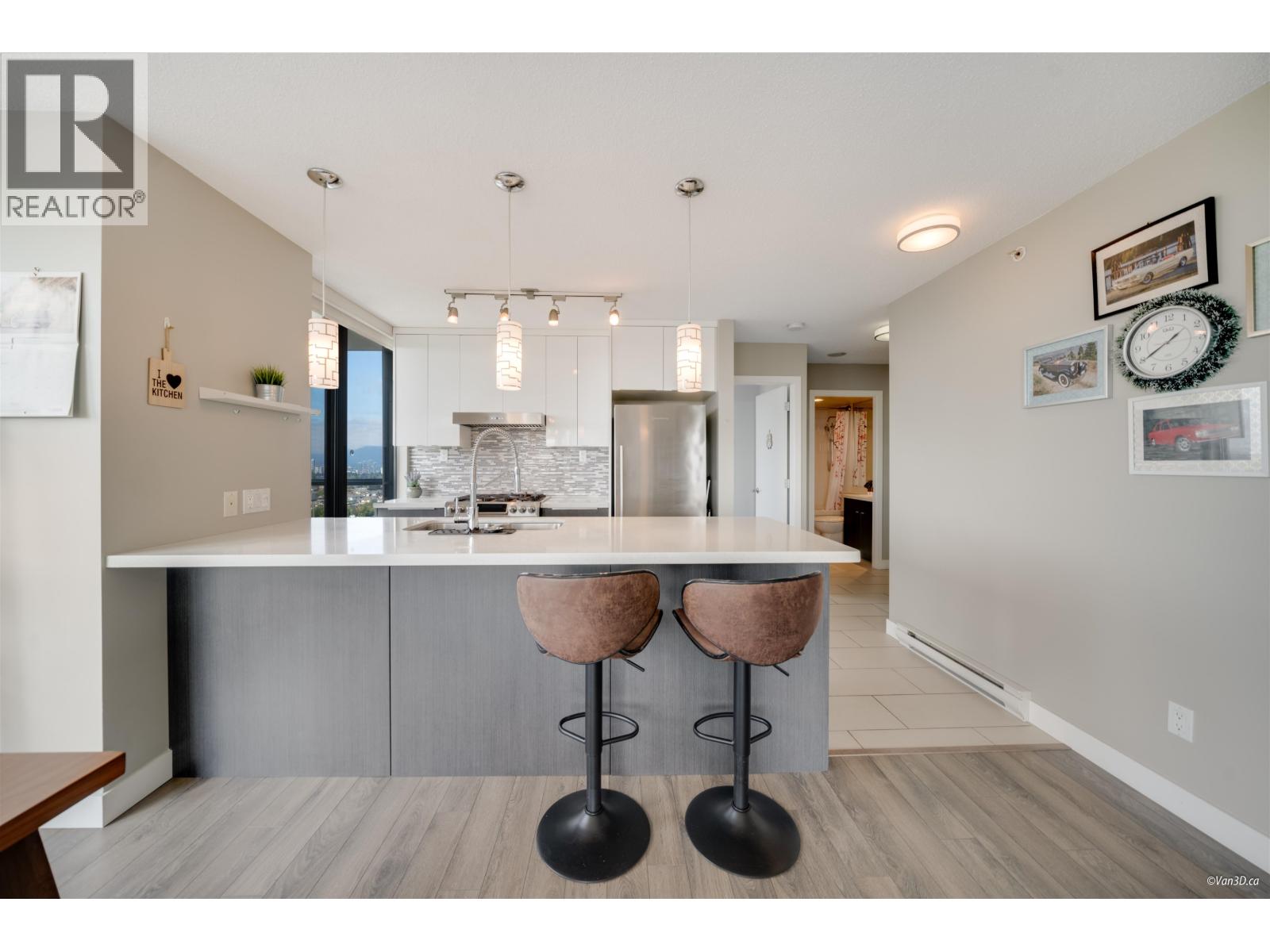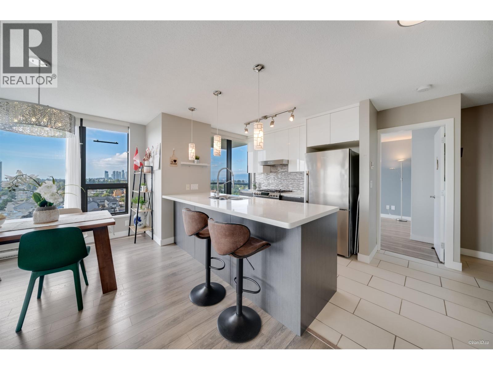 $480.64 MonthlyWelcome to Arcadia West by BOSA in the heart of Highgate Village! This south-west facing 2 bed+ den corner home offers 1,056 sqft of bright functional living with stunning city, downtown, sunset and even fireworks views. Features include an open-concept kitchen with quartz countertops, stainless-steel appliances, ample cabinets, two balconies-one off the kitchen for fresh air while cooking, and another accessible from both master and living room. Spacious bedrooms are separates for privacy, both bathrooms with quartz counters and tub/shower combos, laminate flooring throughout, one parking 386 & locker 296. Well-maintained concrete building with gym, hot tub, party room, garden. Steps to shopping, schools, Edmonds Skytrain & Community Centre.Measure approx, buyer and buyer agent to verify. (id:44393)