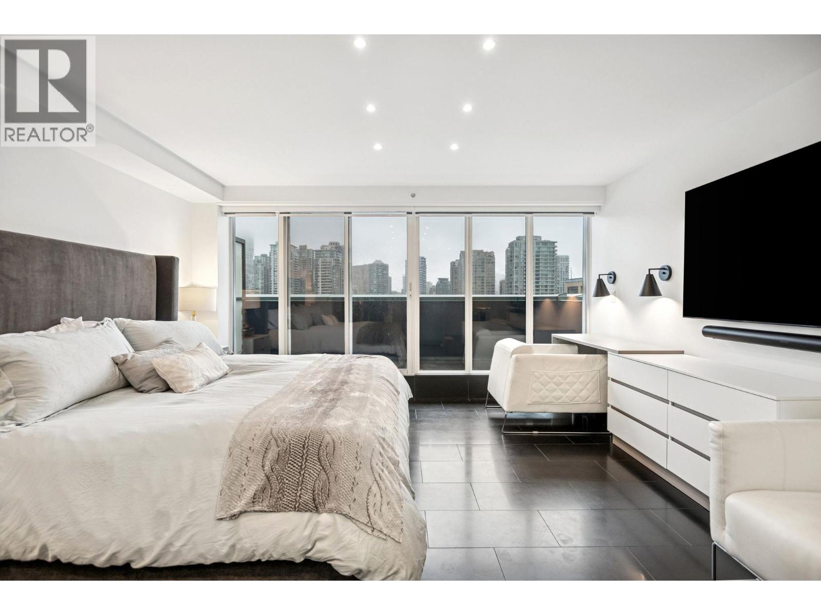 $2,949.59 MonthlyAward winning penthouse offering rare privacy, flexibility and architectural pedigree. This fully renovated two-storey 4,200 sq.ft residence features south and west-facing windows with stunning marina and city views from every room. Recipient of Georgie & HAVAN Awards with over $2.5M in curated renovations, it is currently configured as a 4 bedroom, 3 bathroom home. The primary suite opens to a spectacular 500 sq.ft terrace with built-in BBQ and fire table. Enjoy a custom wet bar, billiards and recreation room, and a chef´s kitchen with new appliances and living plant wall. Includes five parking stalls and two storage lockers. Rare ability to re-convert into two luxury residences. (id:44393)