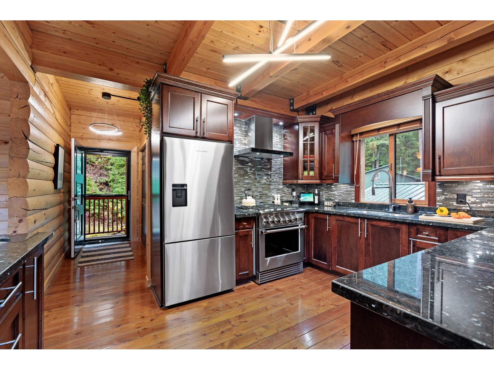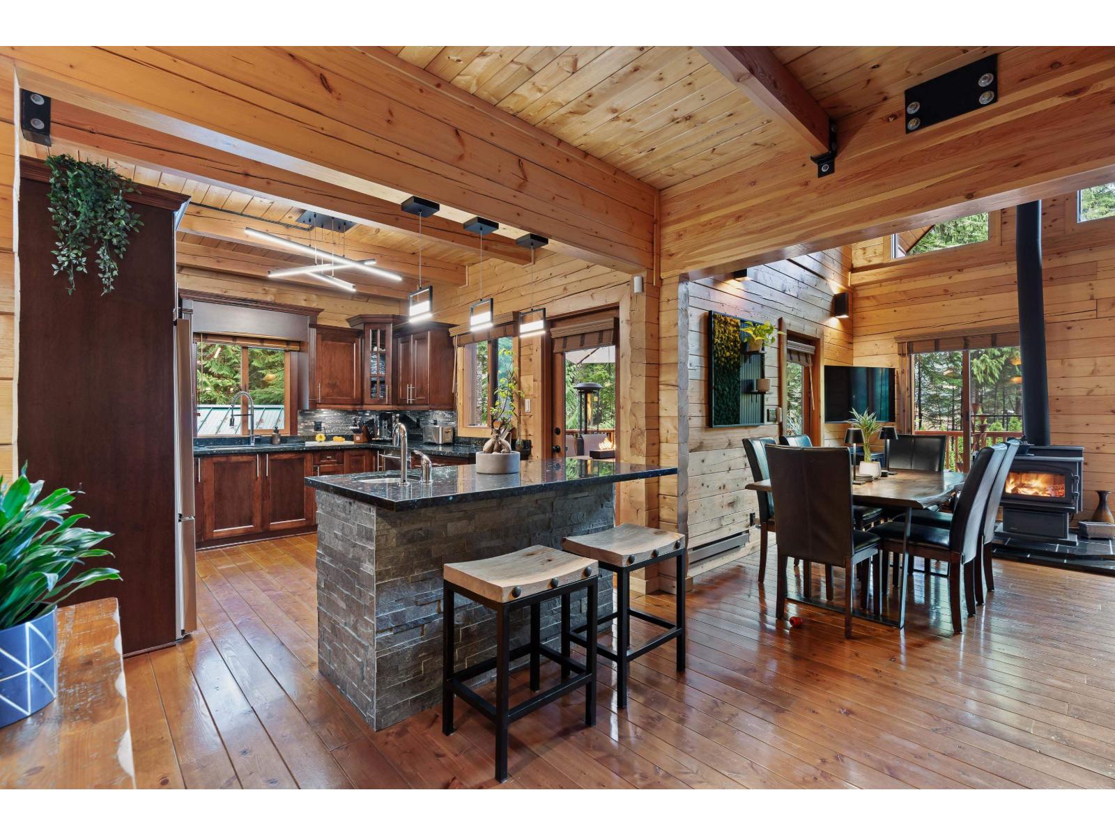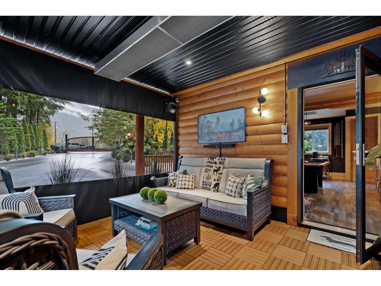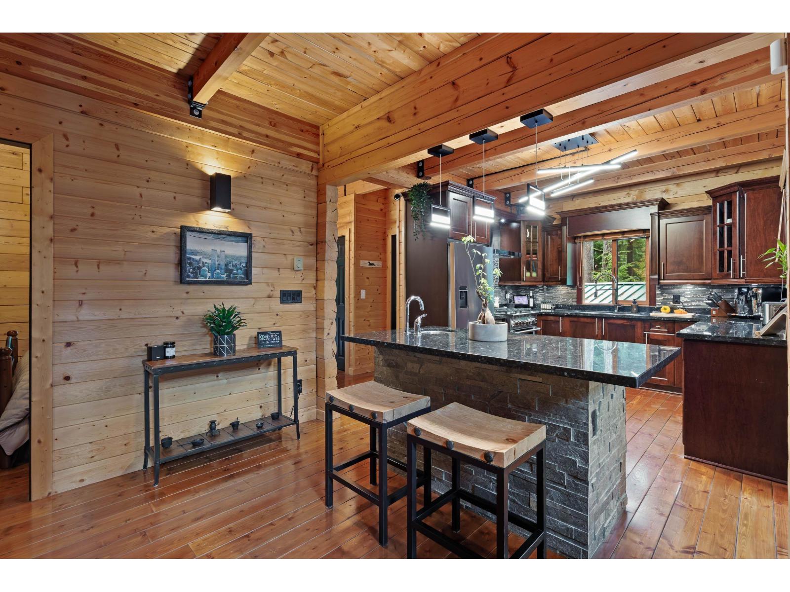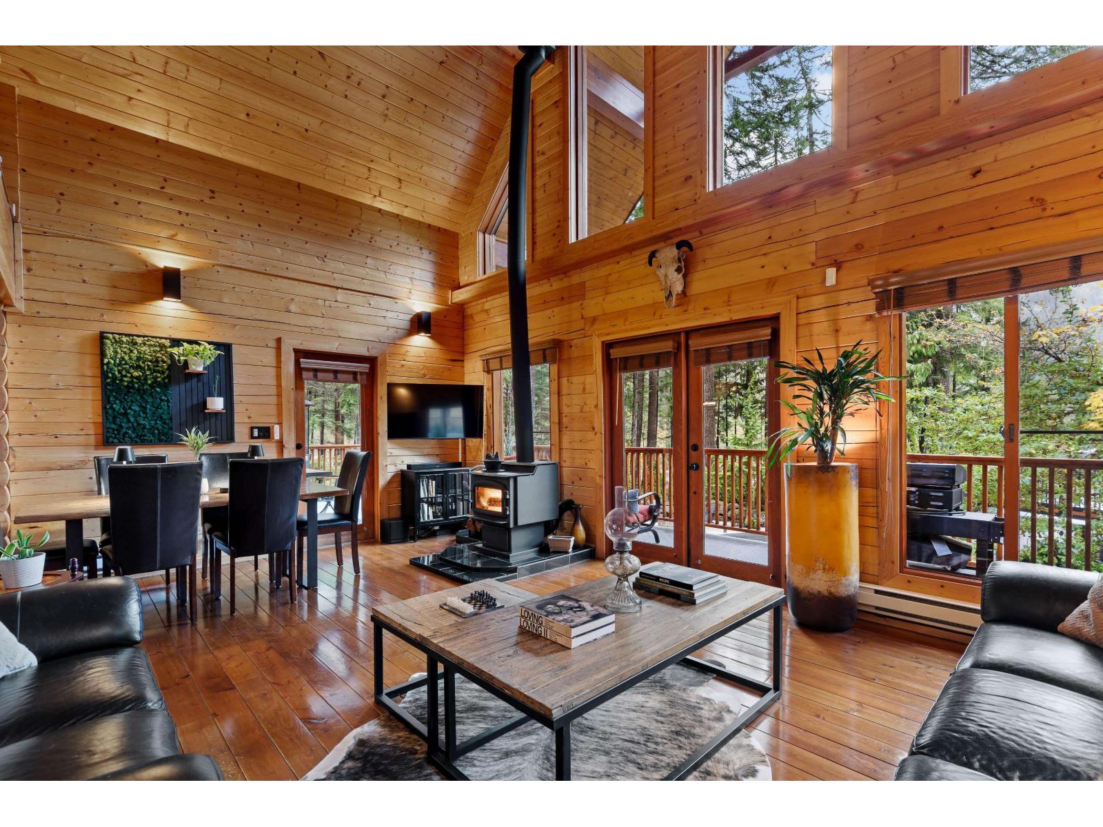 Exceptional Custom built log home on a private, gated freehold 1/3-acre in Sunshine Valley. Designed for four-season living, minutes to Hope and Manning Park, with hiking, snowmobiling & biking at your door. Beautifully crafted in & out with metal-clad roof, solid fir doors/stair treads, wood-frame windows, full remote controlled heat/AC & Generac backup generator. The main floor features a stunning great room with 24-ft vaulted ceilings, exposed beams, and floor-to-ceiling windows, plus a chef's kitchen with granite counters, stainless appliances, and large island. The lower level is an entertainers dream- with custom bar, billiards, media room & more. Detached garage for toys. This is an excellent investment opportunity with Airbnb permitted, rental details available, don't miss it! (id:44393)