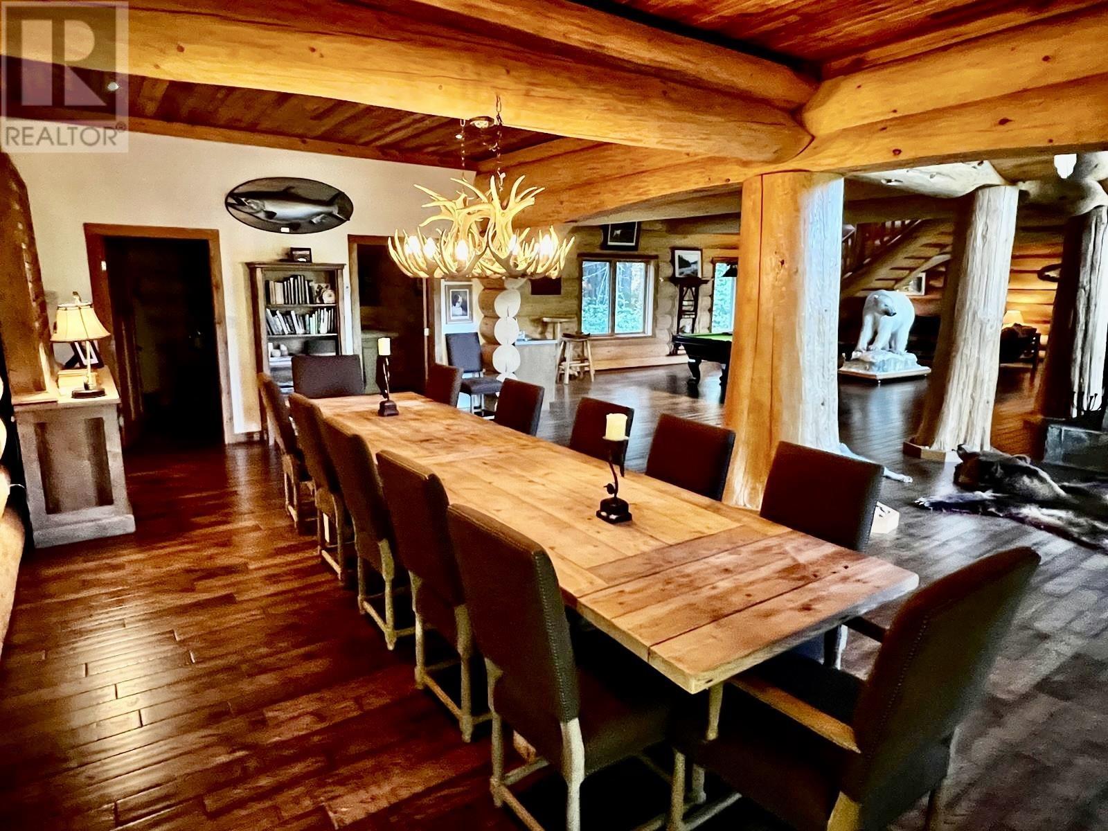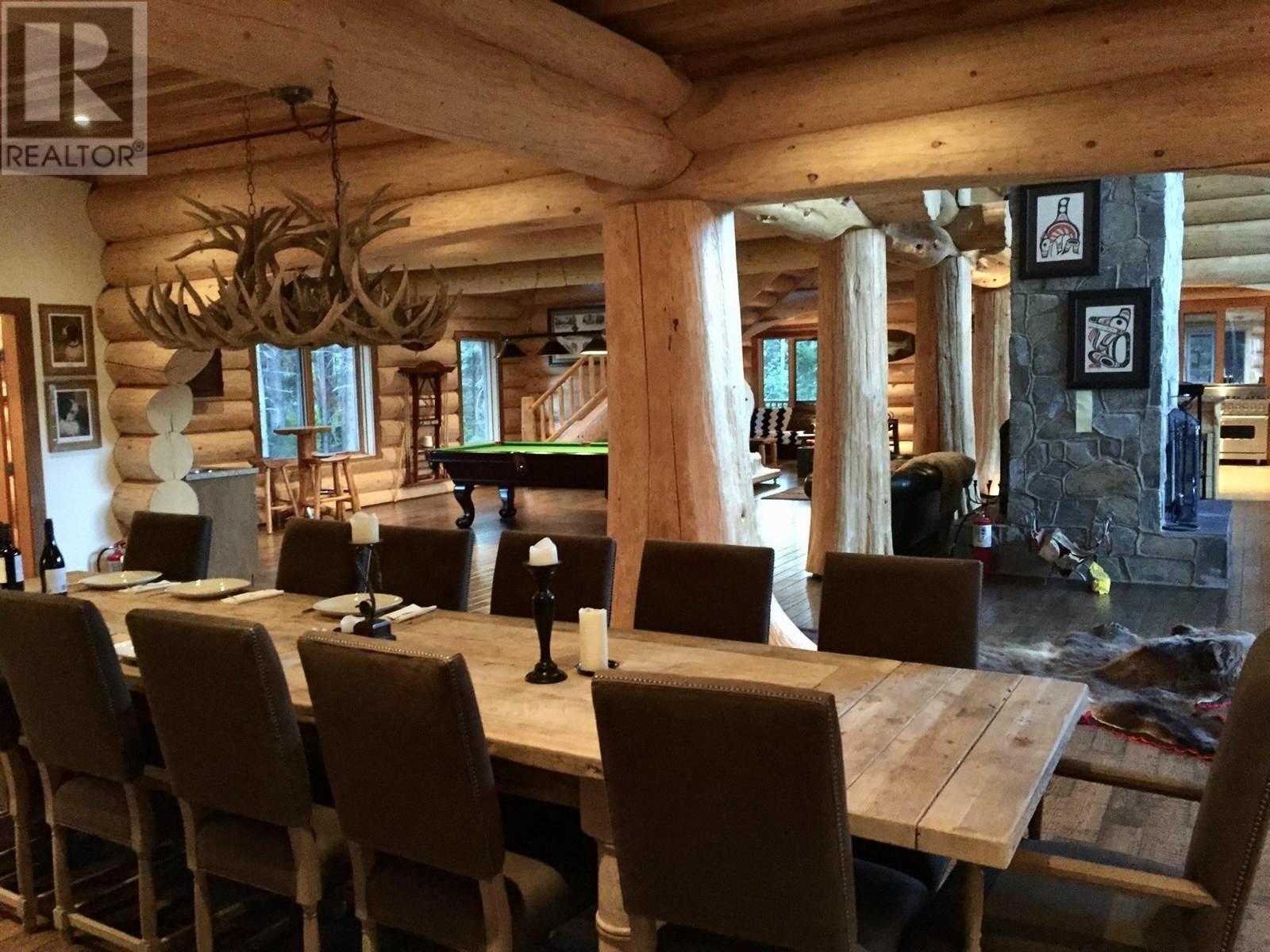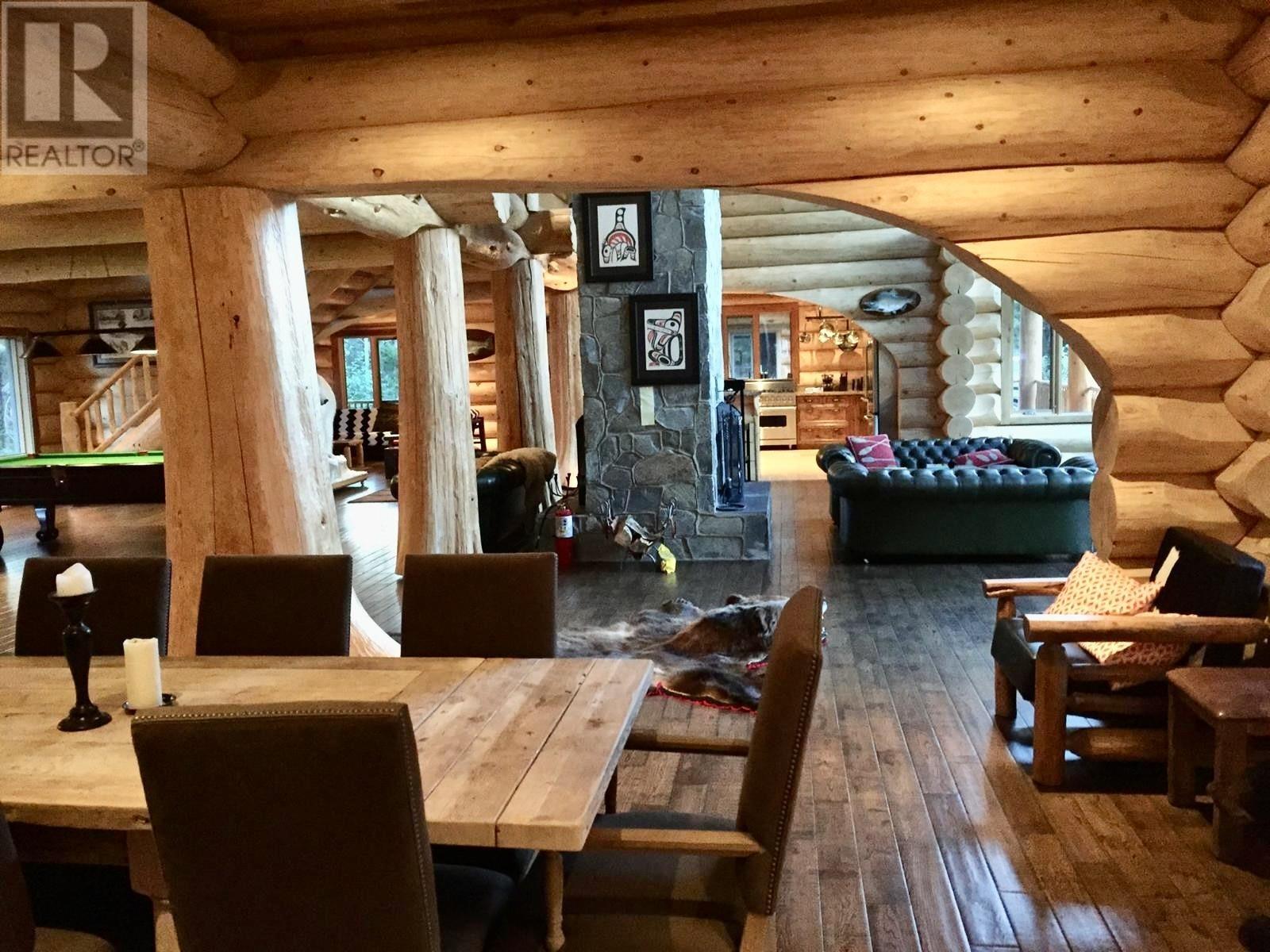 Sportsmen's Paradise: Premier Lodge in Terrace, B.C. For the first time ever, a prestigious turn-key 2010 6,350 sq. ft. executive lodge on 101 acres is available. This 7-bedroom, 5.5-bathroom lodge/cabin features vaulted ceilings, custom specialty finishes, and a gourmet kitchen with granite countertops and top-tier appliances. Enjoy the beauty and excitement of the Kalum River with your own private boat launch. The property includes a log guest cabin, an extensive taxidermy collection, and high-end fishing gear. Perfect for outdoor enthusiasts, it's ideal for a family retreat, corporate getaway, or exclusive compound. Experience world-class fishing, skiing, and hunting right at your doorstep. (id:44393)