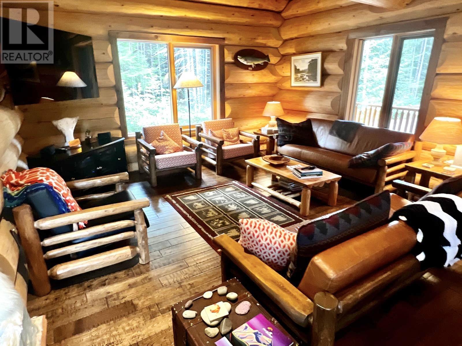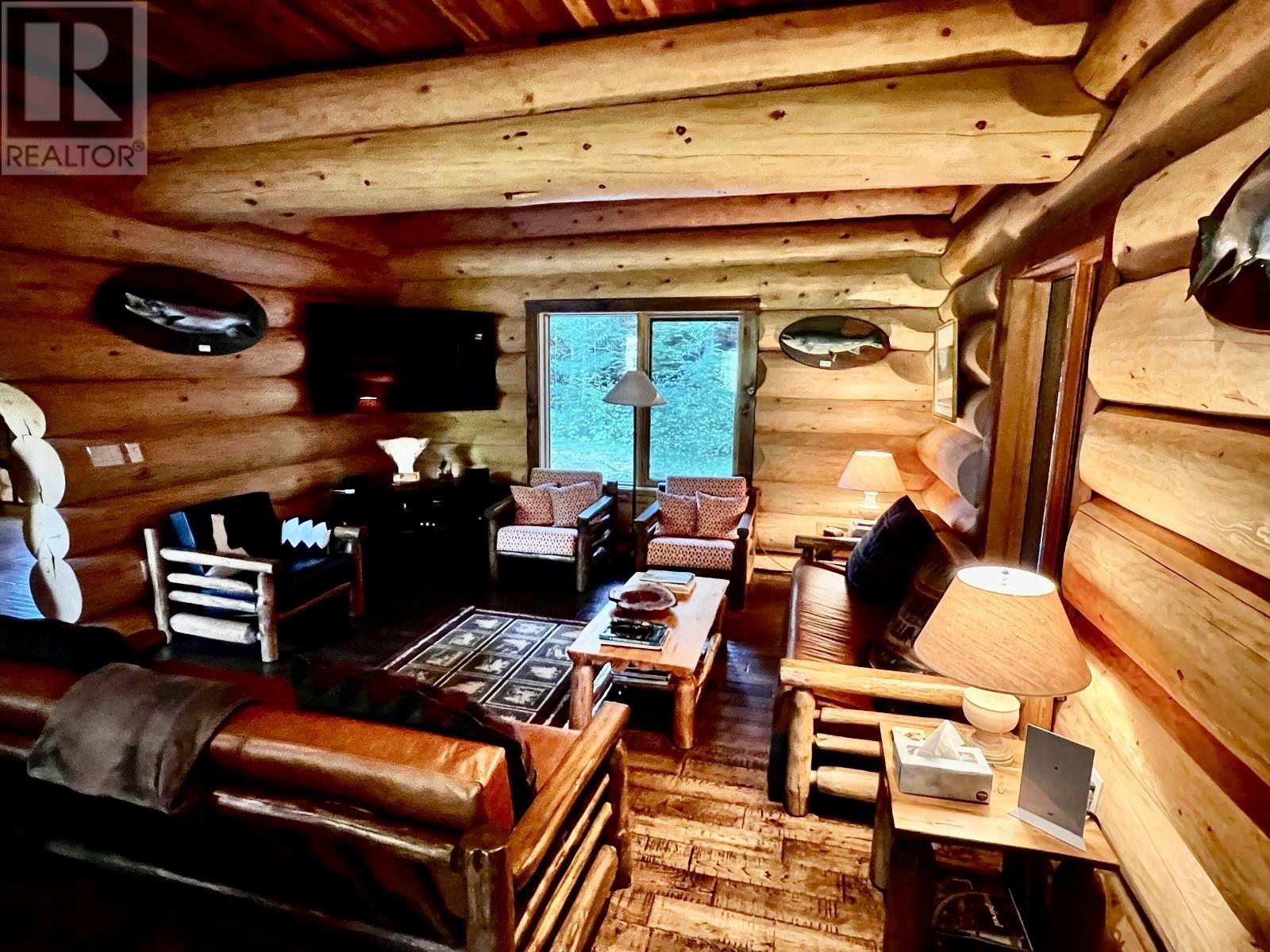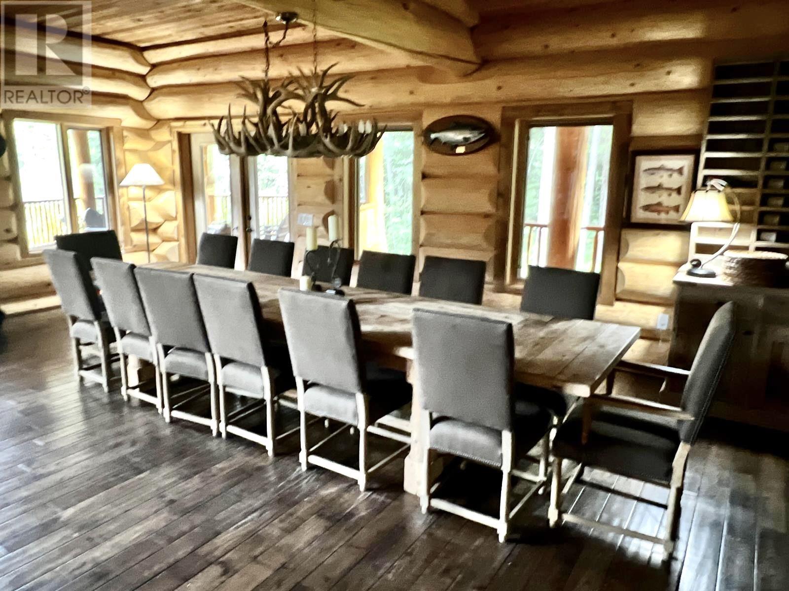 Sportsmen's Paradise: Premier Lodge in Terrace, B.C. For the first time ever, a prestigious turn-key 2010 6,350 sq. ft. executive lodge on 101 acres is available. This 7-bedroom, 5.5-bathroom lodge/cabin features vaulted ceilings, custom specialty finishes, and a gourmet kitchen with granite countertops and top-tier appliances. Enjoy the beauty and excitement of the Kalum River with your own private boat launch. The property includes a log guest cabin, an extensive taxidermy collection, and high-end fishing gear. Perfect for outdoor enthusiasts, it's ideal for a family retreat, corporate getaway, or exclusive compound. Experience world-class fishing, skiing, and hunting right at your doorstep. (id:44393)