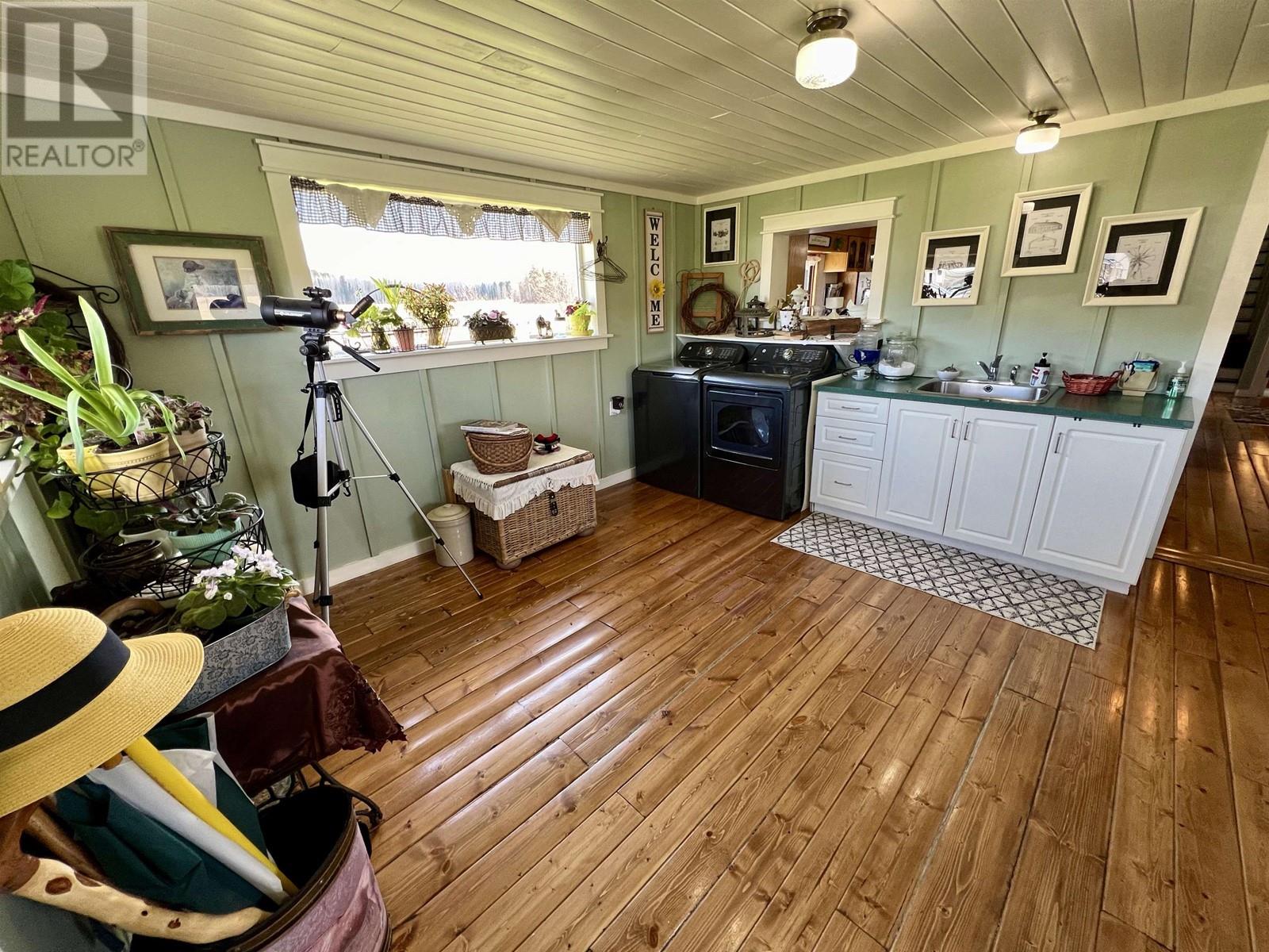 Peace and tranquility at its finest! 120 quiet, sprawling acre farm with two creeks, surrounding a lovingly restored farmhouse with wrap around covered porch. Approx 80 flat acres hay, 30 timber, currently set up for horses with shelter with catch basin and stand pipes. Home boasts huge mud room, new upstairs windows, new roof, Blaze King wood stove and more. Outside features a 26x16 homesteaders dream kitchen/storage for canning, pickling etc. with fridge, stove, sink, water and huge island! 16x32 greenhouse with wood stove for starting plants before spring plus raised beds and rhubarb, haskap, strawberry and raspberries. 12x16 coop with run. Never run out of room for tools with a 40x60 shop with bays and tons of storage. 24x72 equipment storage w/lean-to and enclosed 14x38 RV parking. Also on Residential see MLS# R2997972. (id:44393)