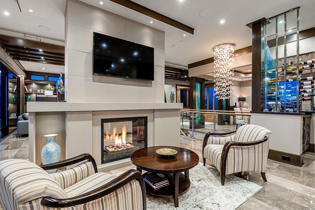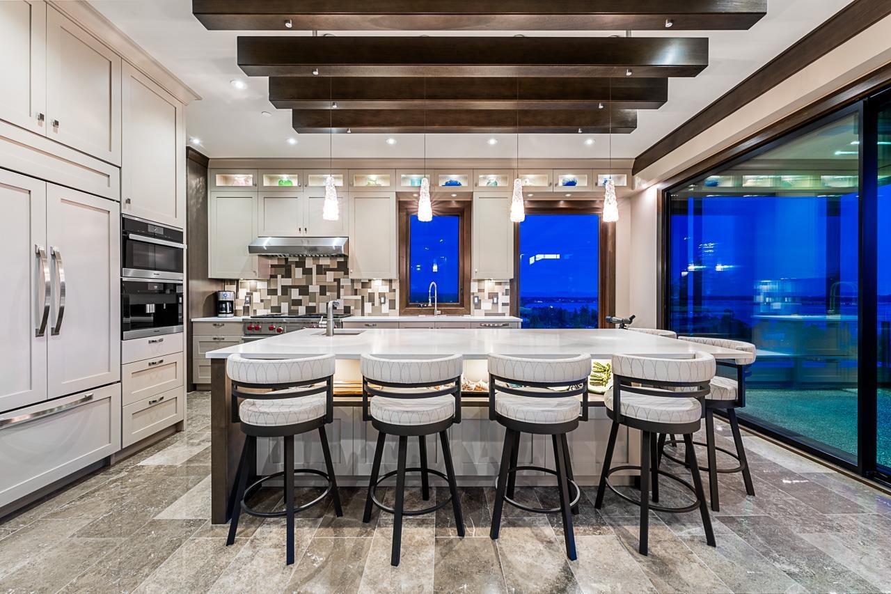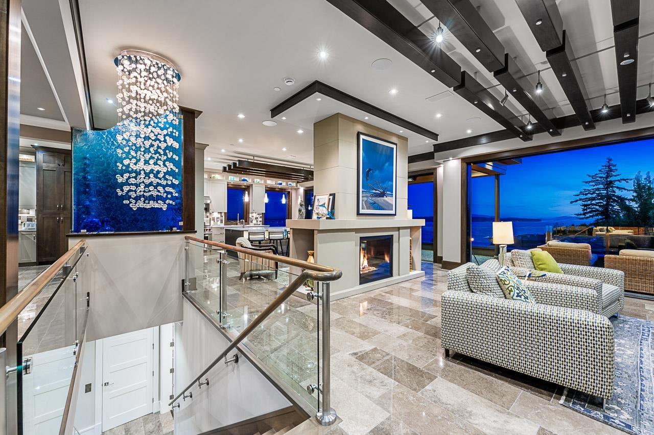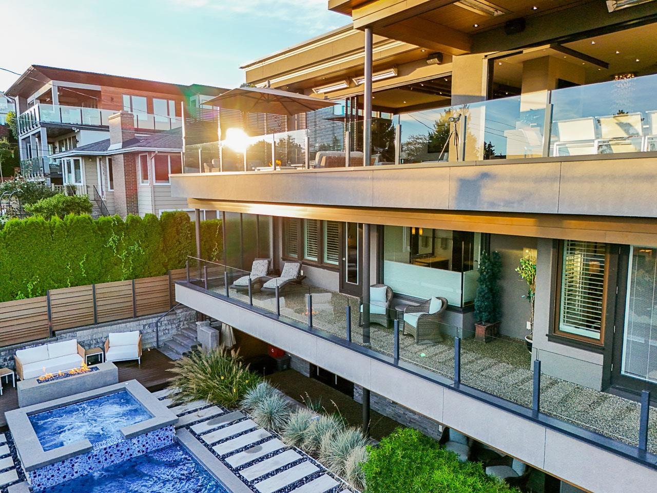 Spectacular Ocean & Mount Baker Views combined with superior quality and timeless modern design. Built by Ronco Construction, this opulent smart home offers breathtaking views from principal living spaces seamlessly integrating indoor & outdoor living. Open-concept main floor includes a grand living room with a double sided limestone fireplace leading to a gourmet kitchen with Wolf/Subzero appliances, formal living & dining rooms, and a heated oceanside deck. Elevator for easy access to the lower levels, including the lavish primary suite rivalling the Ritz in its glamour. Walk out basement complete with a media room, gym with sauna & steam, bar, and a guest room. Meticulously landscaped and gated for privacy, the backyard features an in-ground pool and hot tub. Timeless luxury redefined! (id:44393)