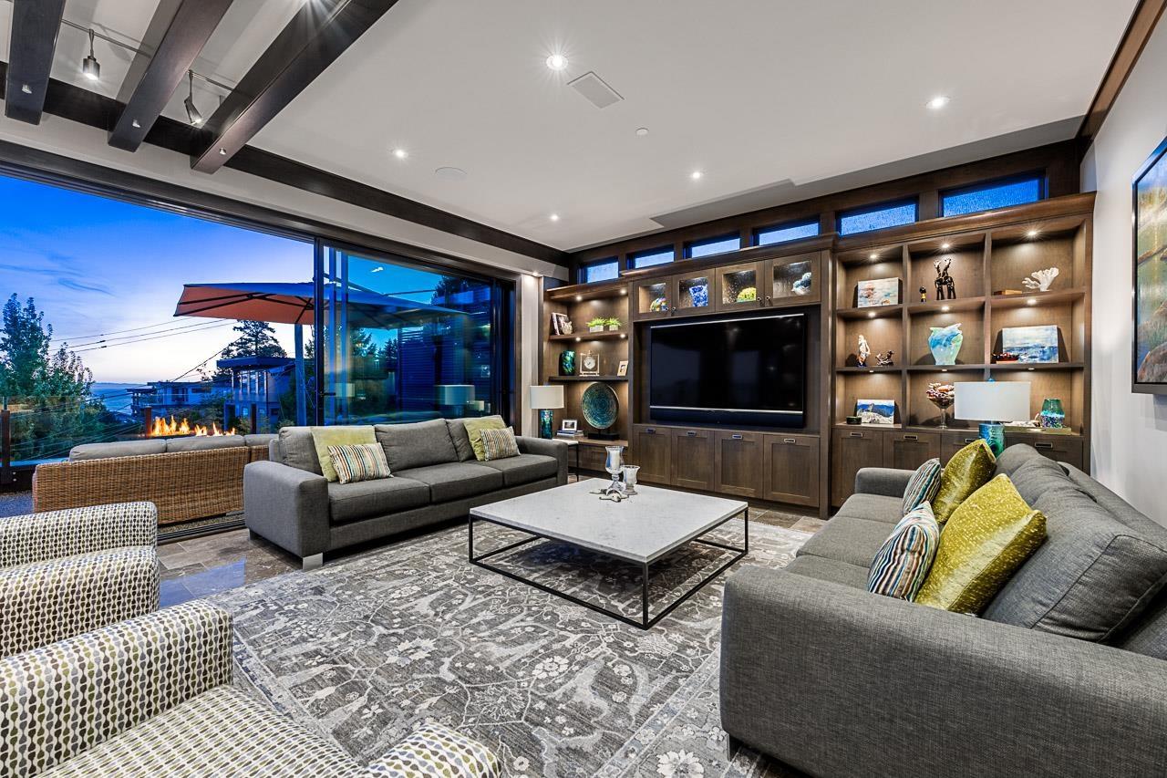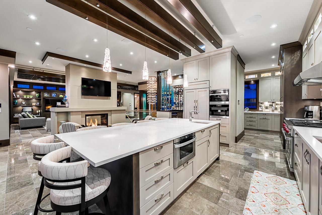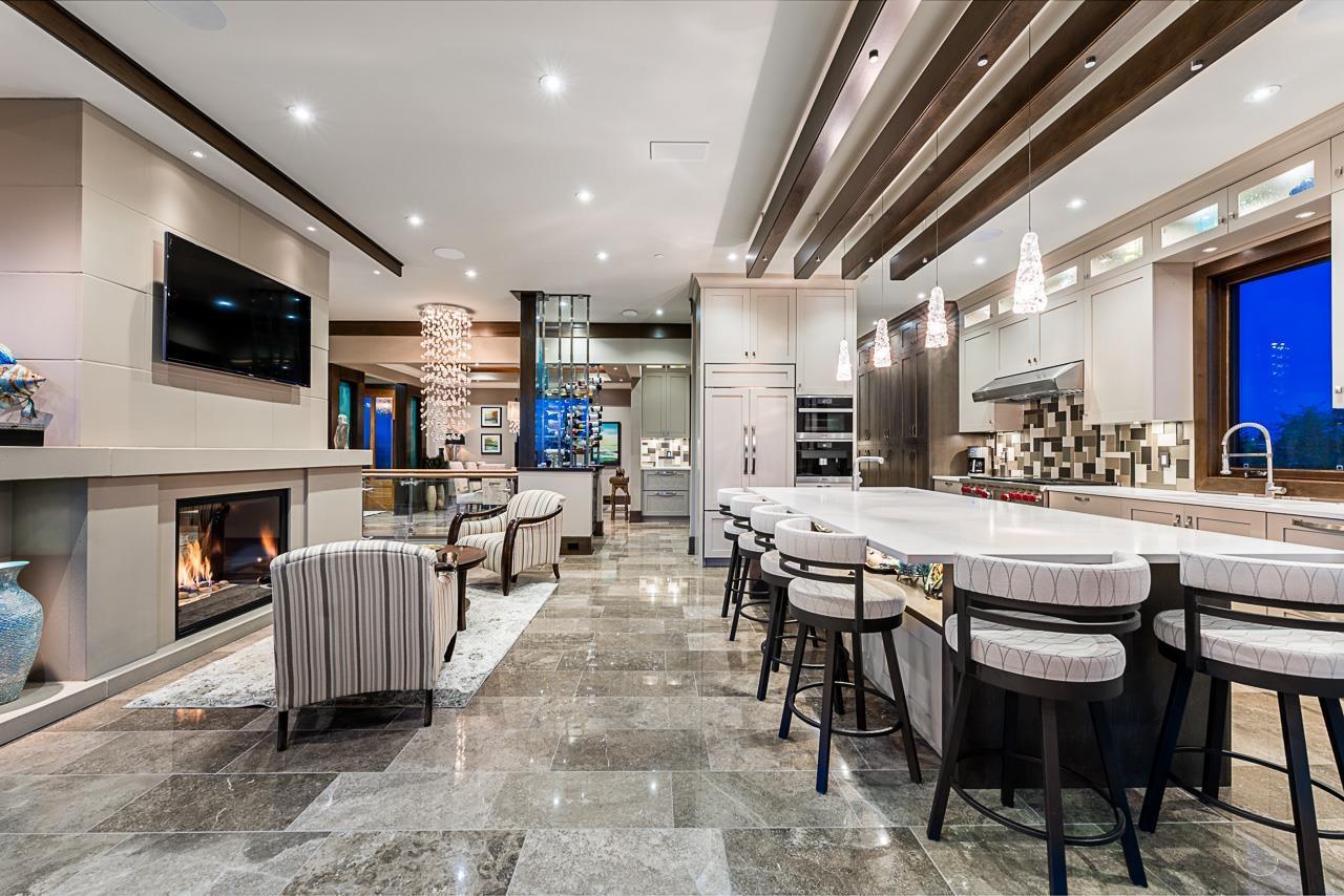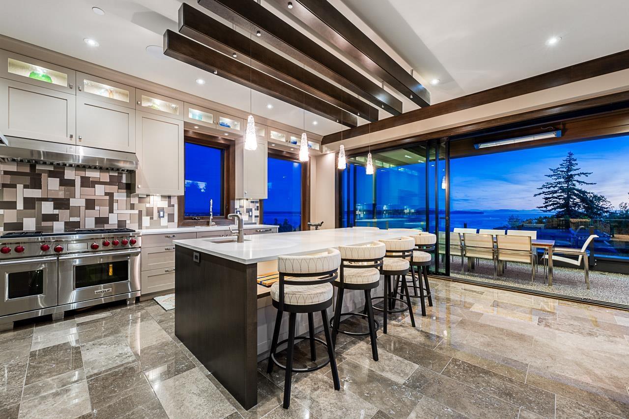 Spectacular Ocean & Mount Baker Views combined with superior quality and timeless modern design. Built by Ronco Construction, this opulent smart home offers breathtaking views from principal living spaces seamlessly integrating indoor & outdoor living. Open-concept main floor includes a grand living room with a double sided limestone fireplace leading to a gourmet kitchen with Wolf/Subzero appliances, formal living & dining rooms, and a heated oceanside deck. Elevator for easy access to the lower levels, including the lavish primary suite rivalling the Ritz in its glamour. Walk out basement complete with a media room, gym with sauna & steam, bar, and a guest room. Meticulously landscaped and gated for privacy, the backyard features an in-ground pool and hot tub. Timeless luxury redefined! (id:44393)