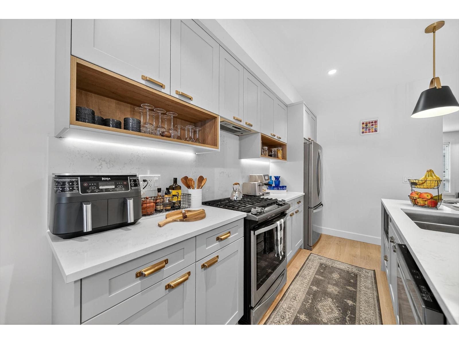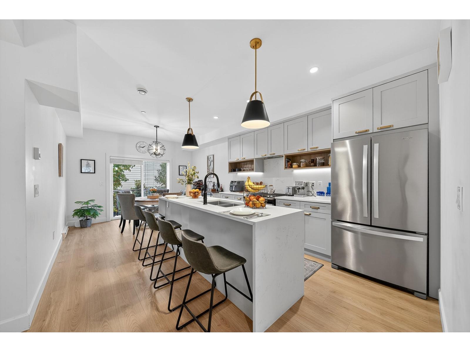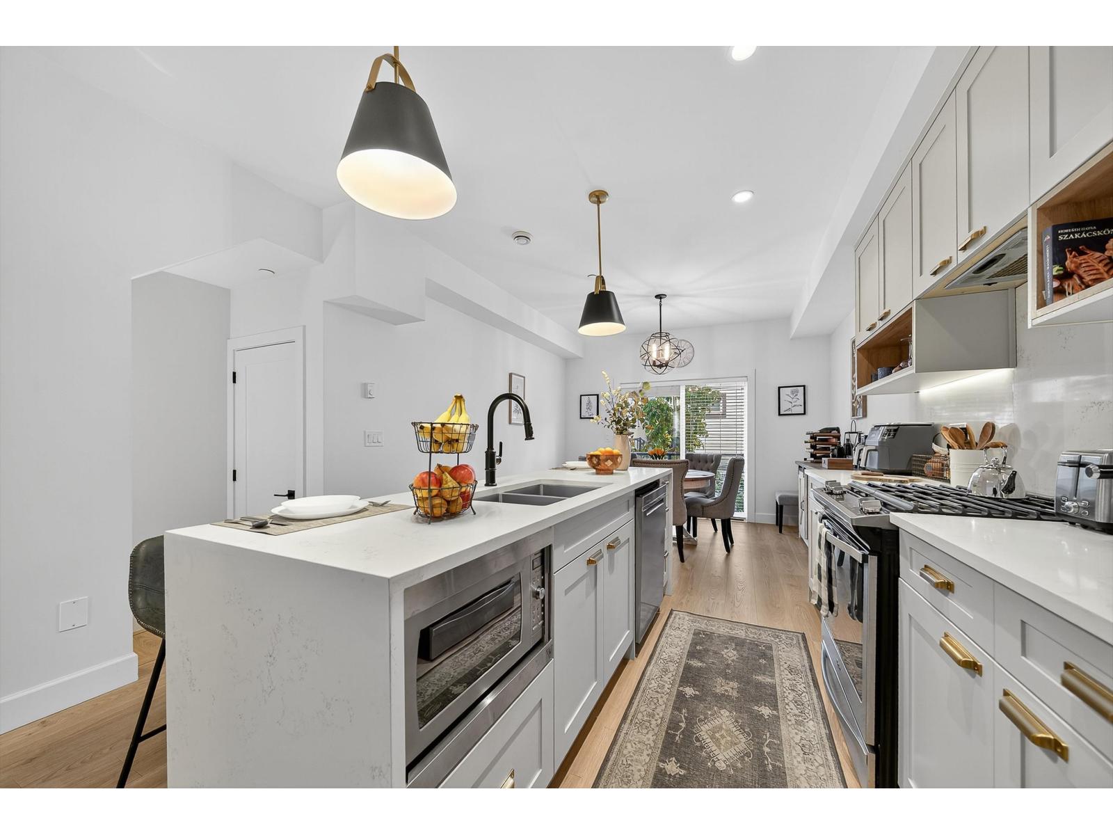 $248.36 MonthlyBrydon Living - Space for Life! Centrally located near parks, shopping, schools, transit, and the future SkyTrain. This thoughtfully designed 2-bedroom + den/office, 3-bath townhouse offers quality upgrades throughout. Enjoy sleek quartz countertops, a high-end appliance package with a gas stove, and a dining area that opens to a private deck. Upstairs features spa-inspired bathrooms and a spacious primary suite with dual closets and hot water on demand. Entertain on the 538 sq. ft. rooftop deck with a natural gas BBQ and included patio furniture. Tandem 2-car garage, fenced yard, and patio complete this move-in-ready home. Quick possession available! Low maintenance fees and a pet-friendly complex make this the perfect choice. Open House Sun Oct 19 230pm-430pm. (id:44393)
