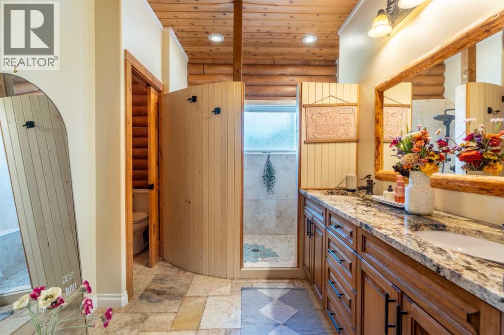 Stunning custom log home at Lac Des Ilse is just steps from the lake. With over 3000 square feet of living space on 3 levels. A true log built home from the entry you'll be awe struck with the beamed cathedral ceilings and log beauty. Large chef's kitchen with granite counters and over size island. Walk-thru pantry. This year round Lake House has 5 bedrooms, 4 bathrooms along with a 90% completed basement with flex space for gym or crafts. The magazine worthy primary bedroom has a custom tile walk in shower and his and hers vanities, a large walk in closet as well. This property includes a boat slip and a portion of the owned dock system. Picture you and your family enjoying evenings on the wrap around deck watching the northern lights over the lake. The deck has 4 natural gas outlets for BBQ and Fire Tables... so handy with the fire bans we may see. A Generac gas powered genrator is an upgrade you'll appreciate when there is a power outage. An oversize lot, beautifully landscaped includes the double garage. There is an easy to remove wall allowing a second vehicle to park. At this time, there is a bedroom for guests. The sellers built this home with quality and longevity in mind with the metal roof and triple pane windows. The expense of just the log house package wouldn't cover the price this property is listed for! Listed for well below value, this dreamy lake home can be yours! (id:44393)