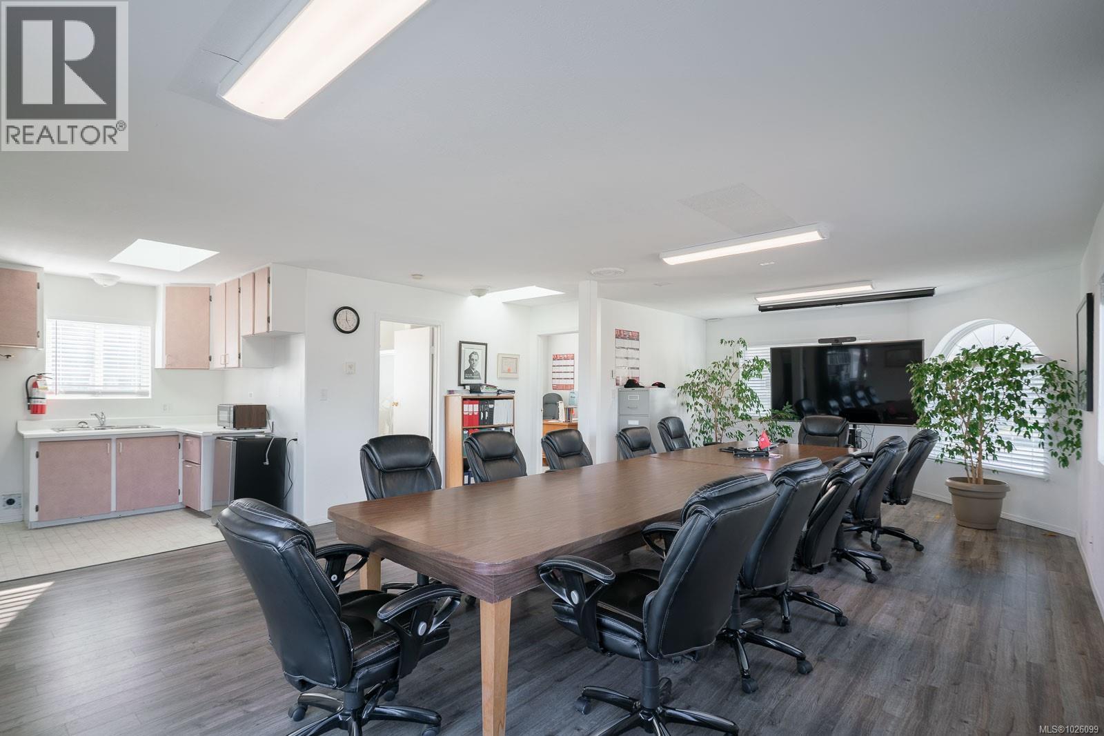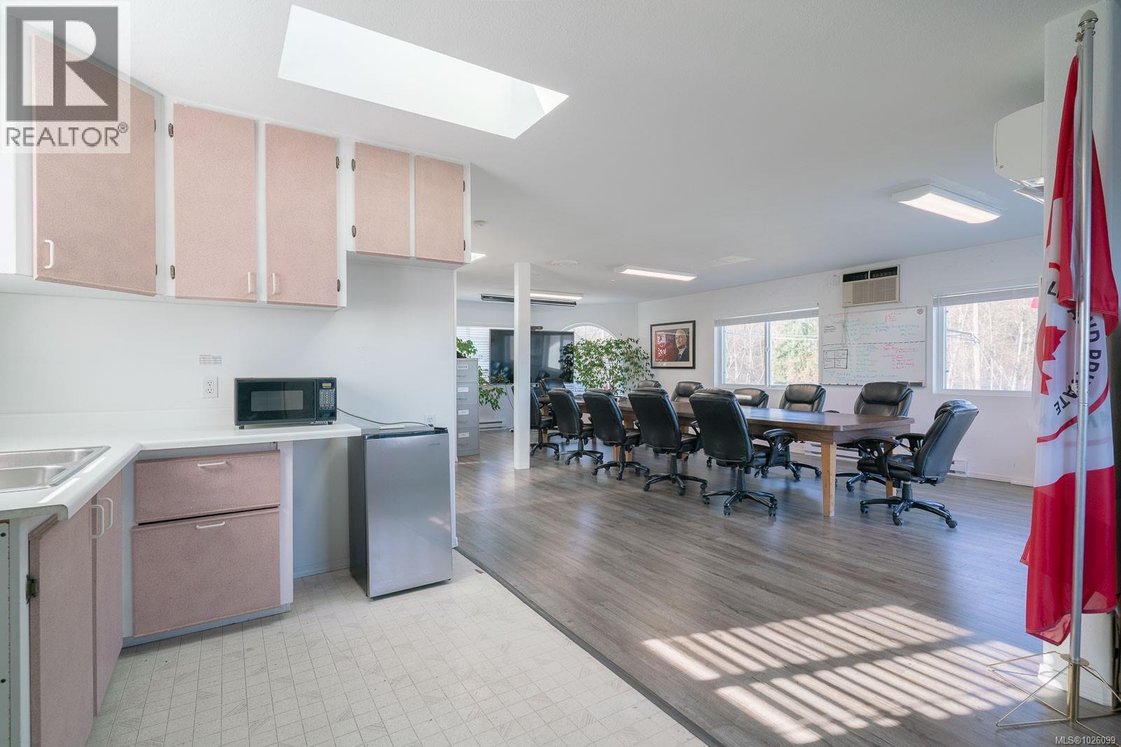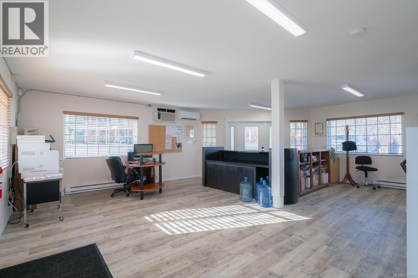 Prime C2 mixed-use opportunity in the charming seaside village of Crofton, set on a prominent corner with outstanding visibility and presence. The fully accessible main floor offers flexible space ideal for office, retail or professional use, while the upper level, currently configured as a boardroom, can easily transition into a residential suite for a true live/work lifestyle or additional income potential. Situated on a 5,000 sq ft lot with seven off-street parking stalls and excellent street exposure. Enjoy ocean glimpses from the upper deck and convenient access to the Crofton Seawalk, marina, ferry terminal, parks, trails and community amenities. Roof replaced in 2011, heat pump installed in 2025, new hot water tanks and exterior stairs. Well maintained and ready for its next chapter in business or investment. (id:44393)