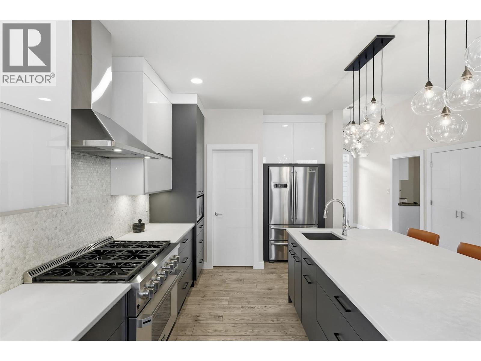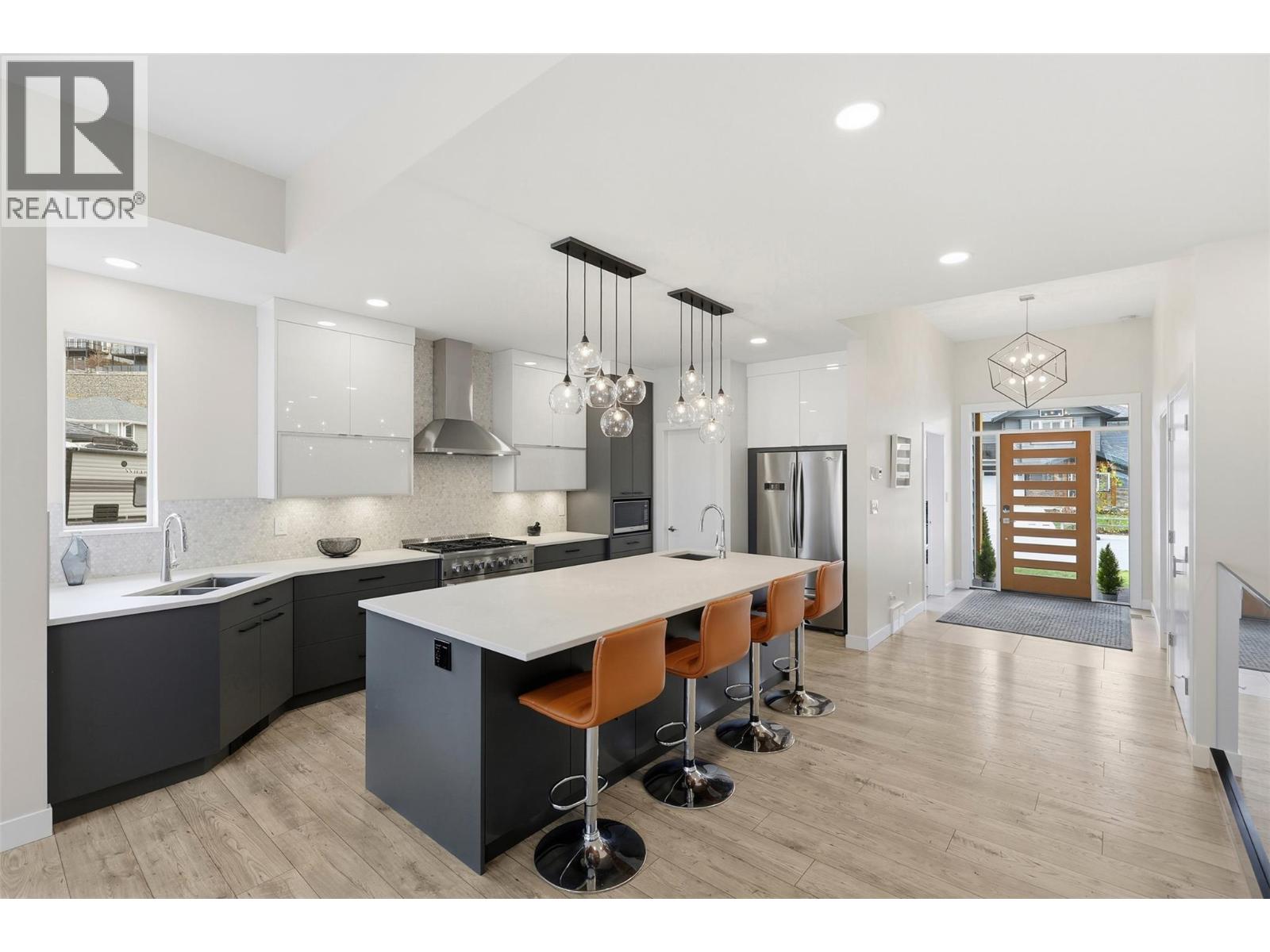 Welcome to this beautifully designed, light-filled custom home featuring 4 bedrooms in the main house plus a 1-bedroom basement suite. Located in the highly desirable Juniper Ridge community backing onto a dog park, this property offers complete luxury and style. Step through the front entrance and into an open, airy living space flooded with natural light from the home’s expansive windows. The gourmet kitchen is equipped with high-end THOR appliances, an 8 foot island, and an impressive walk-in pantry making it a dream space for cooking and entertaining. The primary is a complete sanctuary with convenient access to the covered deck. The heated concrete basement is designed for enjoyment and versatility—featuring a stylish bar with its own dishwasher, abundant storage, a second bonus laundry room for the main house, and a built-in speaker system. Additional premium features include a heated driveway to keep away snow and ice during those winter months, heated double garage, a separate entrance to the fully legal suite with its own radiant heating /cooling system, and custom blinds and lighting throughout. Come check out this exceptional one-of-a-kind home! (id:44393)