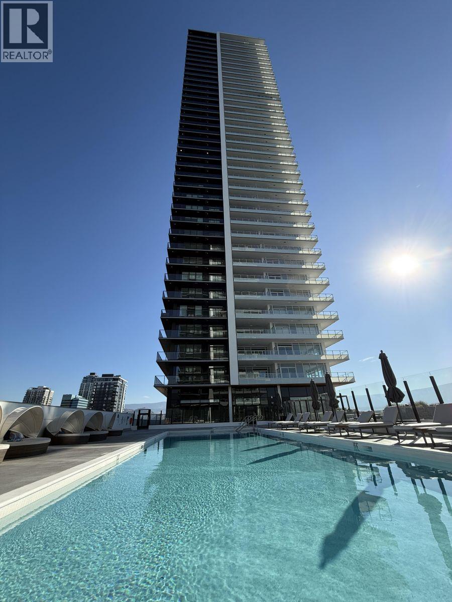 $341.98 MonthlyWelcome to The Eli, a newer condominium in the sought-after Water Street by the Park development, completed in 2025 and one of Kelowna’s most exciting downtown addresses. This ONE-bedroom plus DEN, one-bathroom home offers a bright, open-concept layout featuring a sleek modern kitchen, light flooring and cabinetry, and warm contemporary finishes throughout. Step outside to an oversized 267 sq ft covered deck—ideal for indoor-outdoor living and entertaining. Large windows showcase beautiful lake views while flooding the space with natural light. The versatile den works perfectly as a home office, guest space, or additional storage. Residents enjoy resort-style amenities including a theatre room, wine-tasting lounge, dog wash and grooming room, fitness centre, outdoor pool with lounge areas, and a hot tub. Secure entry, professional management, ONE UNDERGROUND PARKING STALL B267 (value of $35,000), and a VISITOR PARKING PASS provide comfort and peace of mind. Located just steps from City Park, sandy beaches, and the dining and shopping along Bernard Avenue, this condo delivers the ultimate blend of luxury, lifestyle, and location. NO GST — already paid and included in Price! Rentals are allowed, with restrictions (min. 30 days) and pets are also allowed, with restrictions (up to two dogs; or 2 cats; or one dog and one cat). (id:44393)