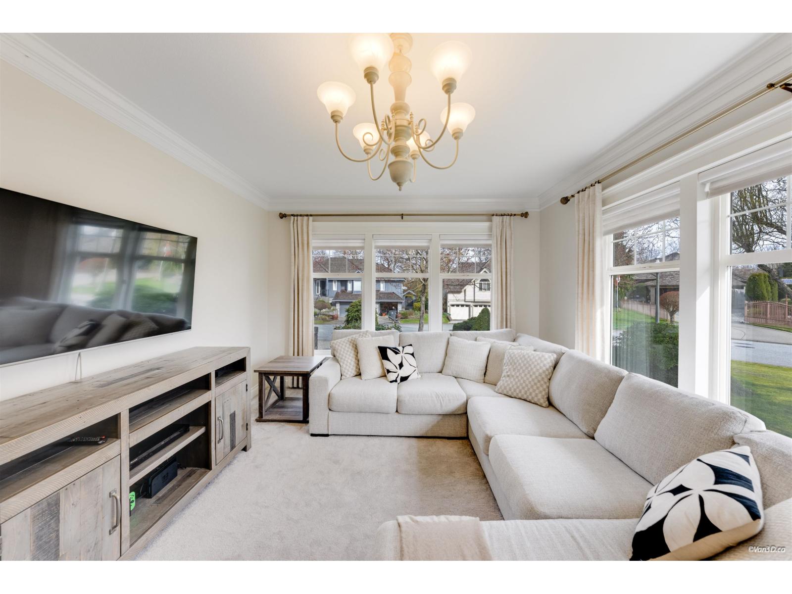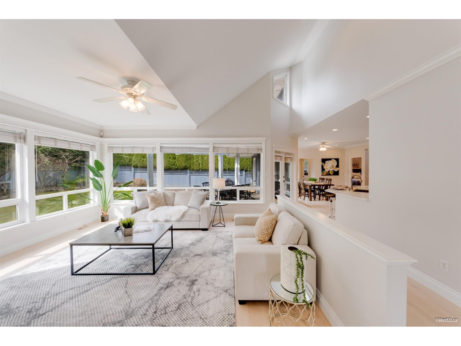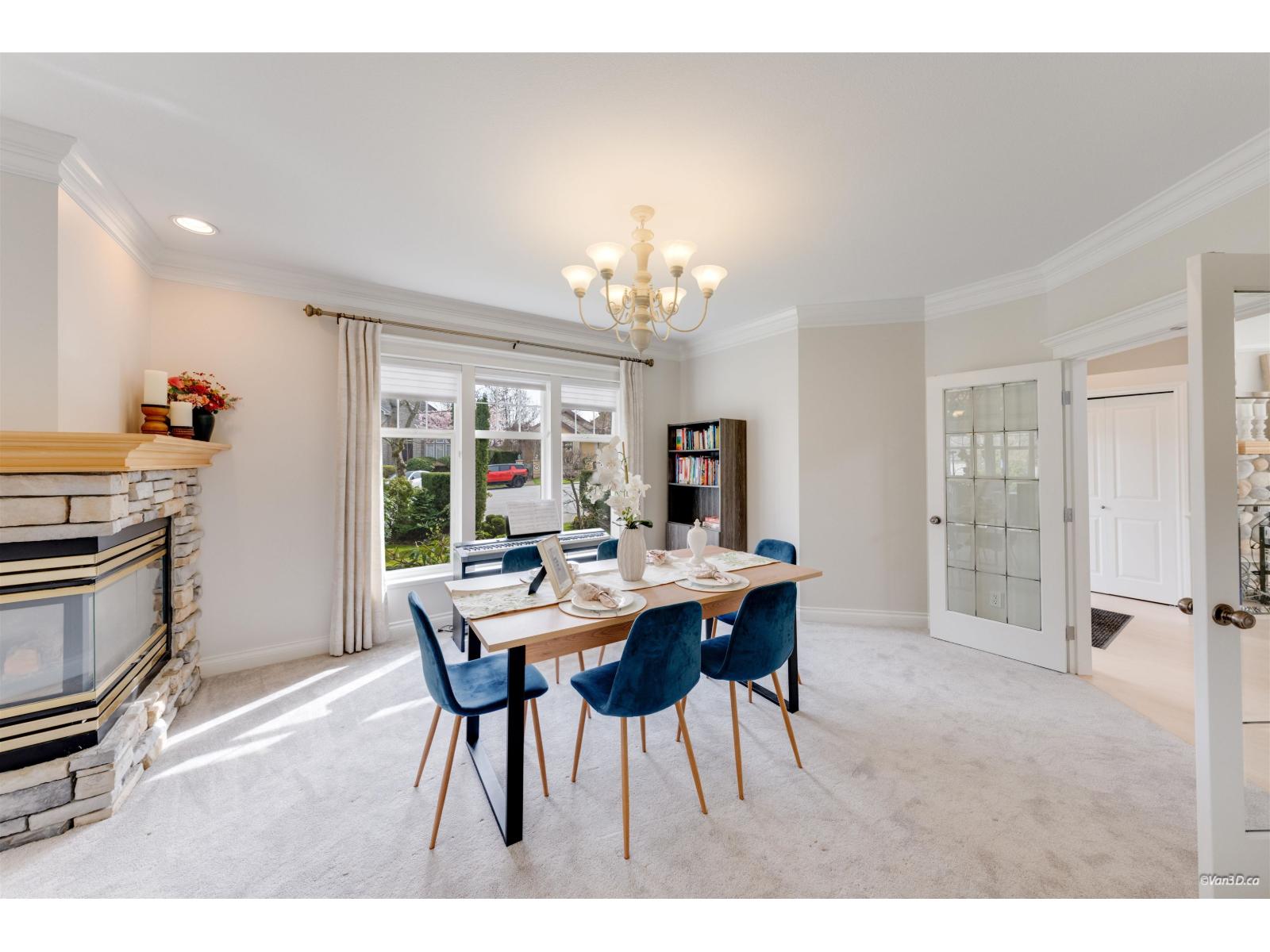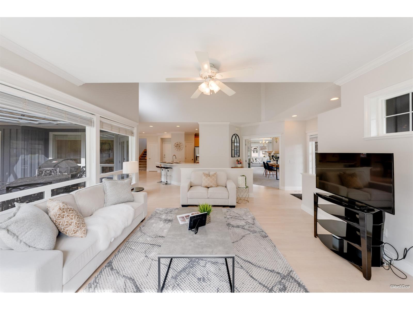 Welcome to this beautifully updated family home in prestigious Morgan Creek. Located on a quiet cul-de-sac corner lot, this home offers great curb appeal and a sunny south-facing, partially covered backyard. The main floor features 9' ceilings, a bright living room with vaulted ceilings and gas fireplace, plus elegant dining and family rooms with a double-sided fireplace. The kitchen is upgraded with new countertops and marble backsplash. The main floor primary bedroom includes a walk-in closet and renovated ensuite with heated floors. Upstairs offers two bedrooms with a flex room. Basement features a large recreation room with separate entrance. Updates include new paint, refinished hardwood floors, A/C, and bathrooms. Close to golf and schools. (id:44393)