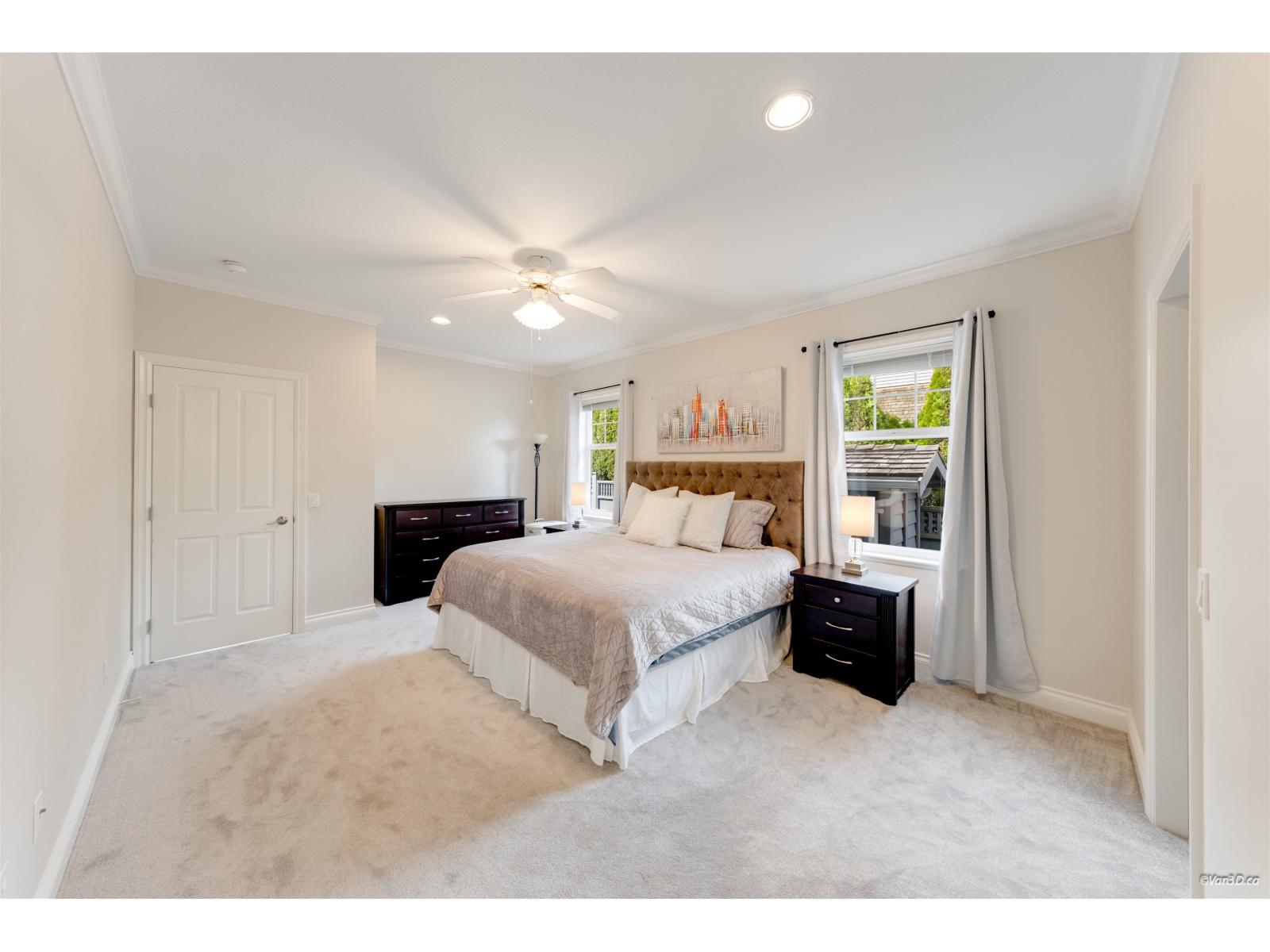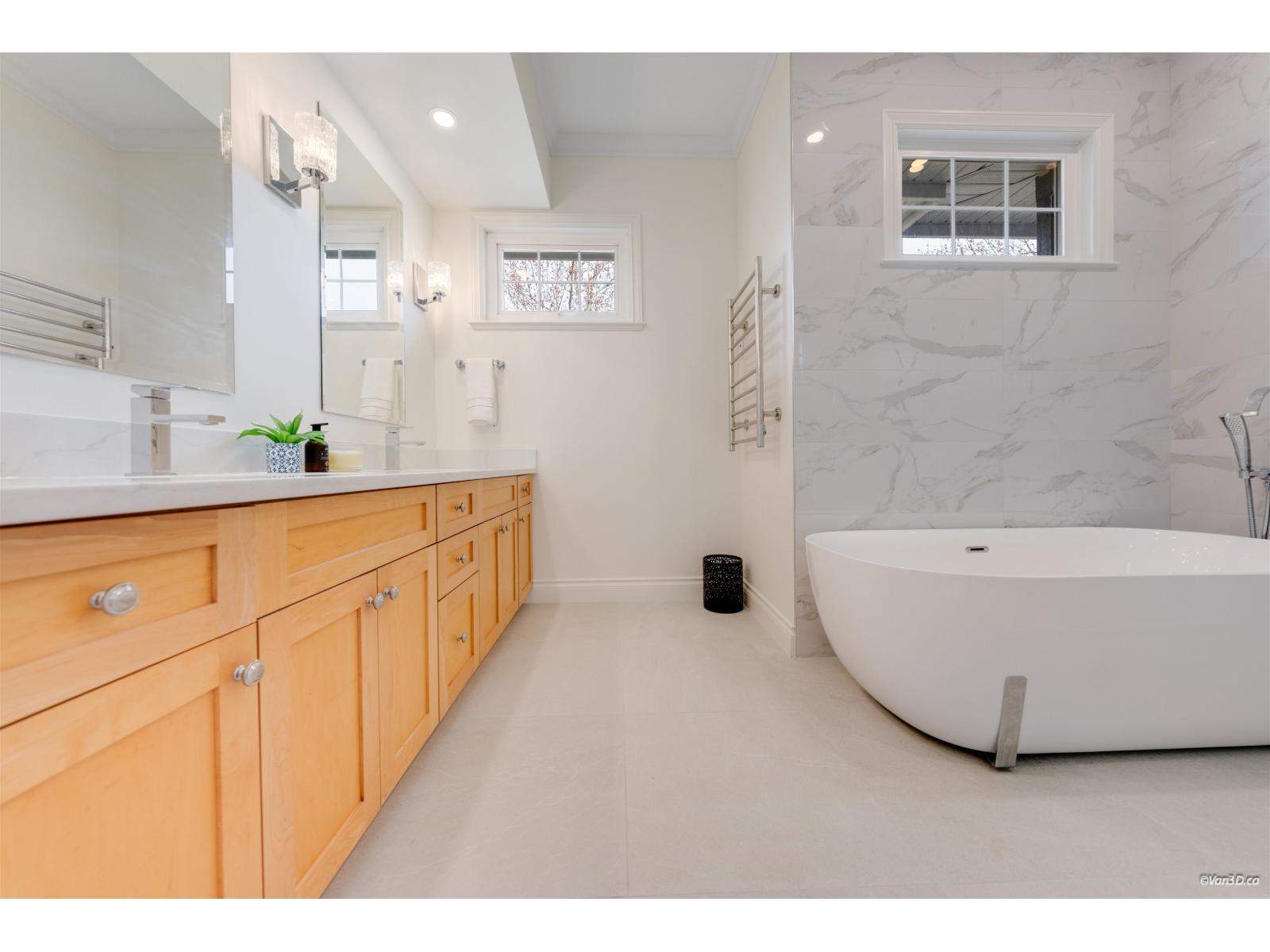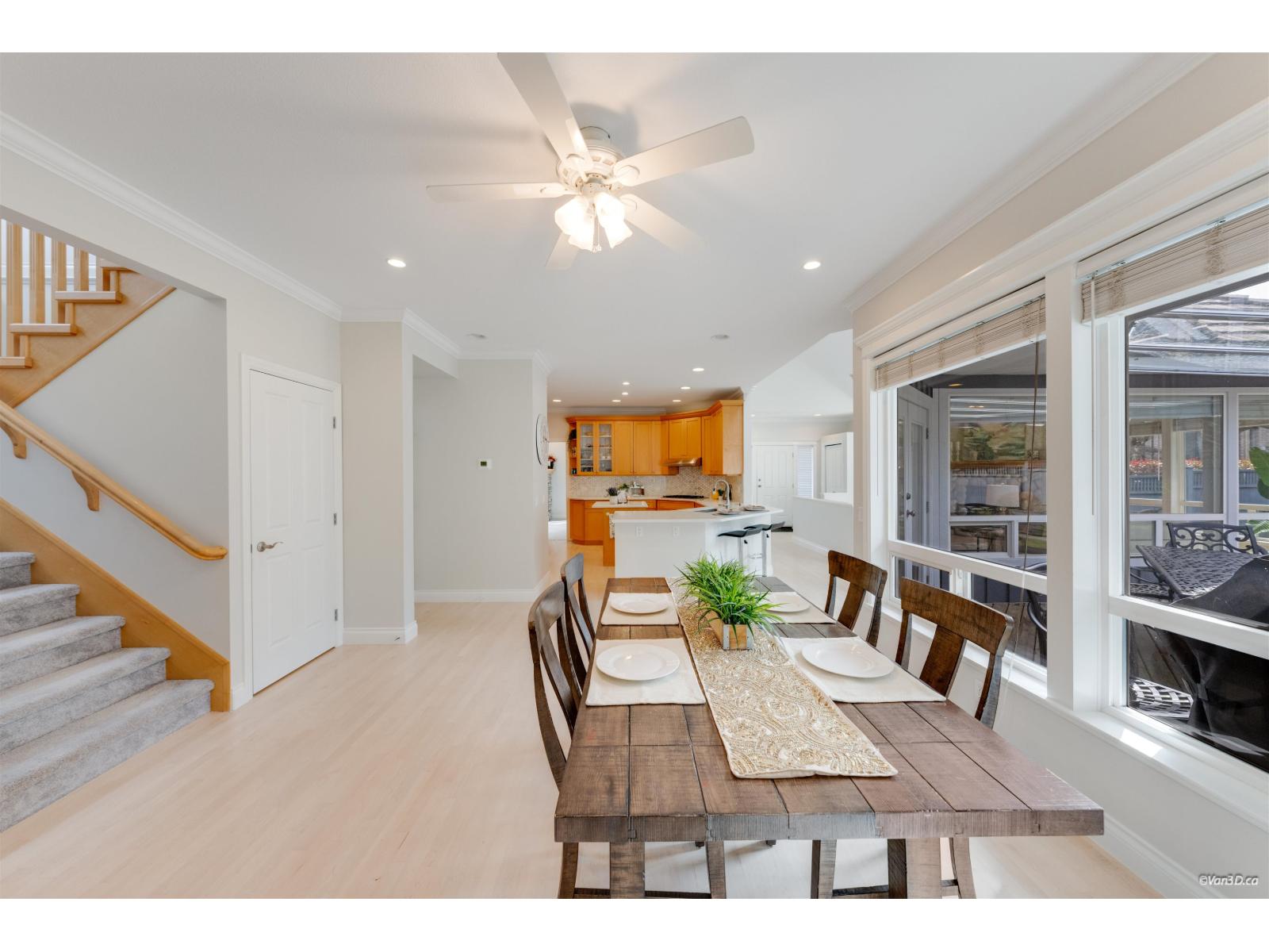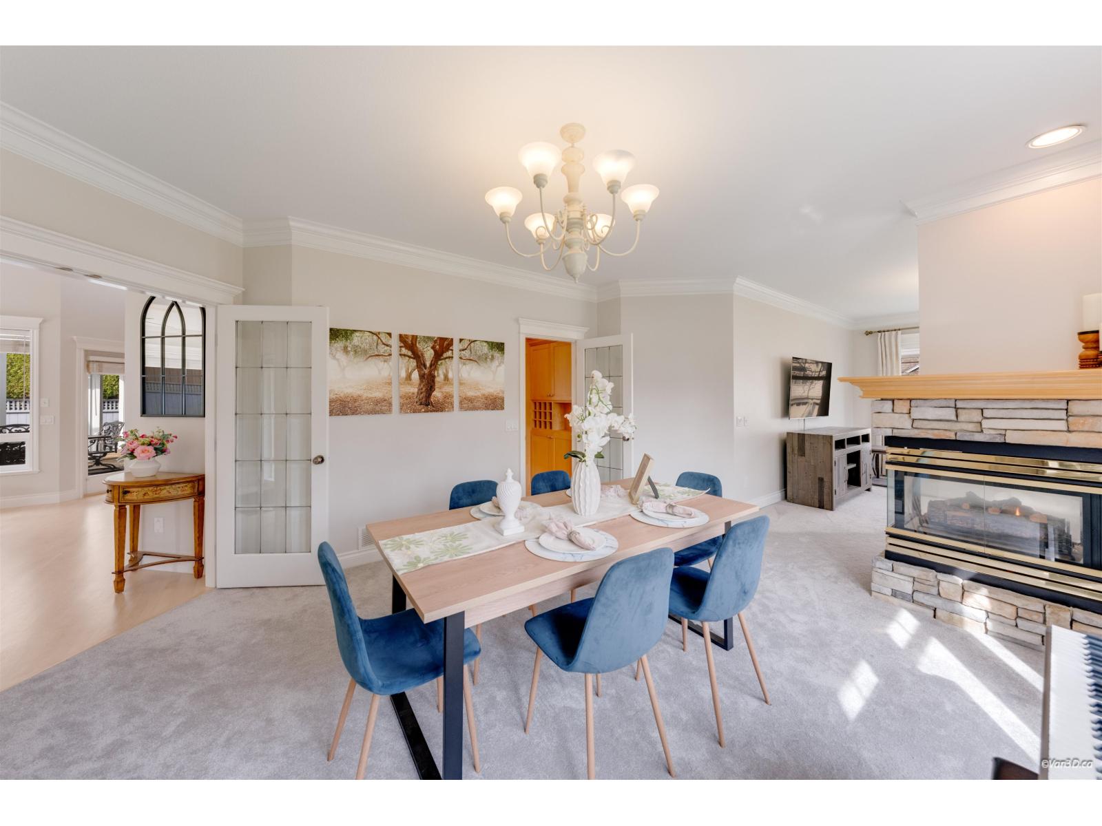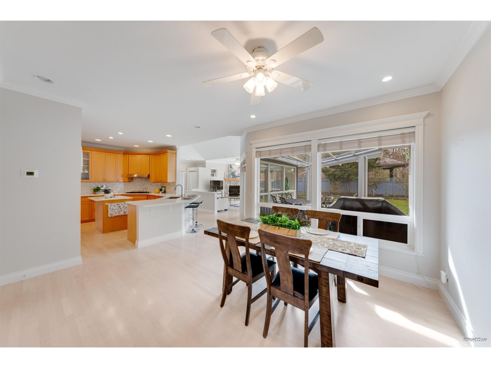 Welcome to this beautifully updated family home in prestigious Morgan Creek. Located on a quiet cul-de-sac corner lot, this home offers great curb appeal and a sunny south-facing, partially covered backyard. The main floor features 9' ceilings, a bright living room with vaulted ceilings and gas fireplace, plus elegant dining and family rooms with a double-sided fireplace. The kitchen is upgraded with new countertops and marble backsplash. The main floor primary bedroom includes a walk-in closet and renovated ensuite with heated floors. Upstairs offers two bedrooms with a flex room. Basement features a large recreation room with separate entrance. Updates include new paint, refinished hardwood floors, A/C, and bathrooms. Close to golf and schools. (id:44393)