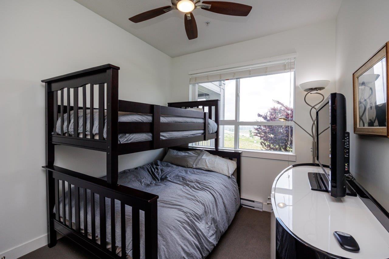 This furnished Surrey condo for rent in Cloverdale offers modern luxuries within a charming countryside lifestyle. With a spacious 1078 Sqft. floor plan, this corner suite boasts 2 bedrooms plus a den and 2 bathrooms, providing ample space for you and your loved ones. Step onto the balcony and immerse yourself in the breathtaking panoramic views of the surrounding farms. The serenity and tranquility of this location will truly captivate you. Inside, you'll find a range of exquisite features that will make you feel right at home. The kitchen showcases elegant granite/stone/quartz countertops and stainless-steel appliances, ensuring a stylish and functional cooking space. The master bedroom is fit for royalty, featuring a king-size bed, a walk-in closet, and a private bathroom. (id:44393)