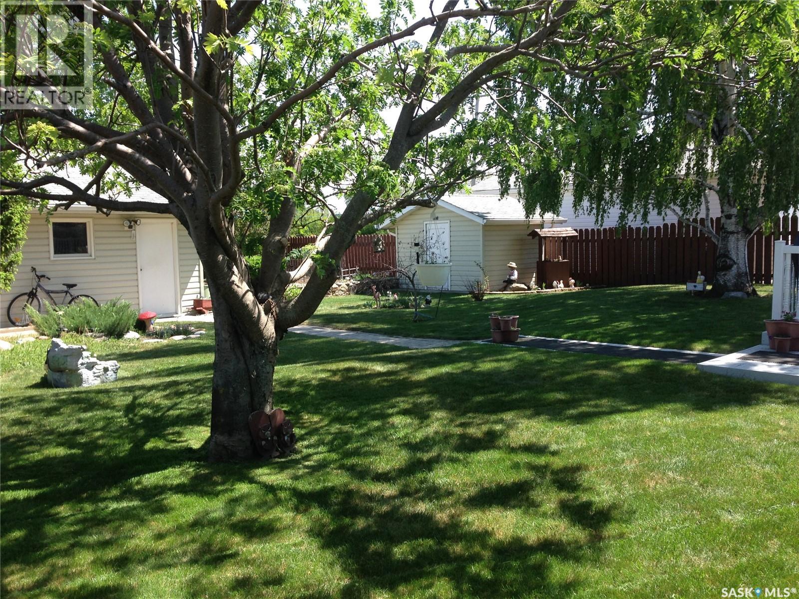 Just 35 minutes from Saskatoon, this solid bungalow in Allan gives you that small-town pace without giving up easy city access. Sitting on a corner lot and backing onto green space, the setting alone is hard to beat. The home has already had many of the big ticket items taken care of. Shingles were replaced in 2025, there’s a new water heater 2025, furnace and central A/C were both updated in 2024, and the windows were done in 2022. Inside, you’ll notice updated countertops and vinyl plank flooring in parts of the main floor that help give the home a fresh feel. The layout is practical and comfortable, featuring main floor laundry and a back mudroom/foyer that’s perfect for boots, coats, and everyday Saskatchewan living. The fully finished basement adds great extra living space with a cozy wood-burning fireplace. There’s also a den downstairs that could work well as an office, hobby room, or guest space. Outside is where this property really stands out. The huge, fully fenced yard backs onto park space and is filled with mature trees, garden areas, deck, and sheds for extra storage. You’ll love the double detached garage, plus an additional heated room that’s ideal for a workshop or extra storage. Interlocking brick walkways connect the front and backyard and add great curb appeal. If you’ve been looking for a move in ready home on a large lot in Allan, this one is definitely worth a look. (id:44393)