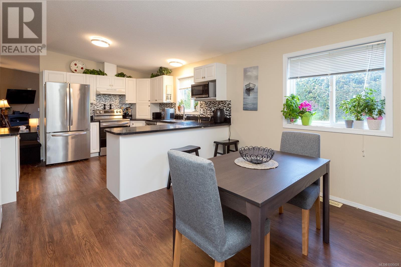 $675 MonthlyThis 2003 doublewide mobile home is equipped with CSA-certified electrical, sturdy 2x6 construction, and a recently upgraded heat pump/furnace (with A/C), ensuring comfort year-round and low energy costs. Situated in a peaceful cul-de-sac within a well-kept park, the home reflects pride of ownership, offering a bright and spacious open layout. The private master suite boasts a 4-piece bath and a walk-in closet. The kitchen is designed with plenty of counter and cabinet space, while the dining room includes additional custom cabinetry for extra storage. A large entryway leads to the living room, enhancing the home’s airy and inviting atmosphere. Nestled in a quiet, rural setting Enjoy a peaceful, private backyard with beautiful gardens and a relaxing patio, all while being just minutes away from shopping, parks, trails, and recreational activities, plus Shawnigan Lake nearby. Move-in ready and perfect for summer living—book your viewing today! (id:44393)