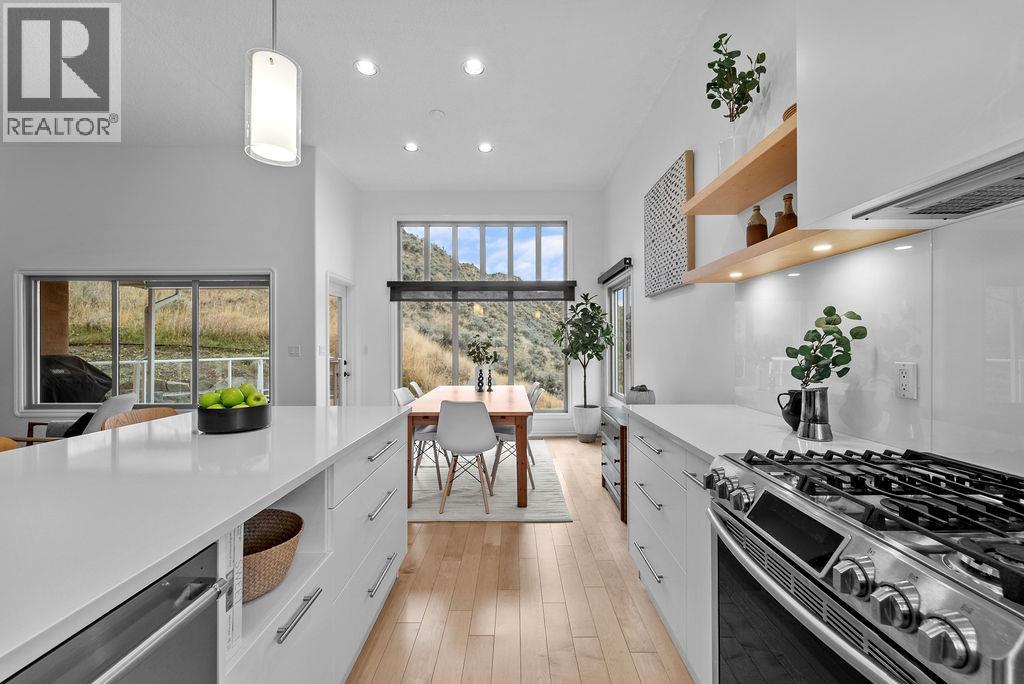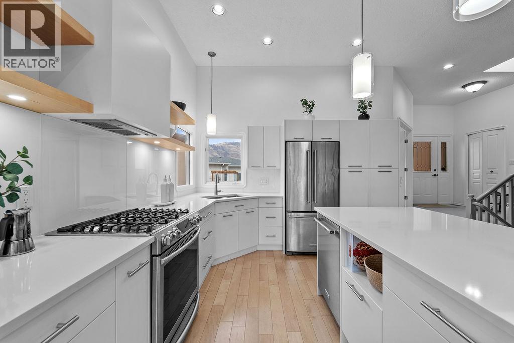 $200 MonthlyStop Your Search- the home of your dreams is here! This 4 bedroom, 3 bath home was custom built by an interior designer, tucked just above the hustle and bustle of Valleyview, in a semi-private setting backing onto trails in Valleyview. The kitchen renovation needs no introduction- custom cabinets, quartz countertops, engineered maple floors… it’s stunning. The bathrooms were also redone in 2021, the A/C & furnace in 2023 and a new hot water tank this year- the big things have been taken care of. Soaring 11’ ceilings and an open concept floorplan in the main living area, but there are still enough separate spaces in this home that you have some breathing room from the rest of the family over the holidays. Curl up in the living room OR basement, each with their own cozy gas fireplace, or enjoy the iconic view out over the valley. This Valleyview complex is a hidden gem- the well managed bareland strata has a low fee of $200 which includes access to a pool and hot tub facility, all city utilities, as well as free RV parking. Community room available for use too! Quick access to the highway to get anywhere in town within 10 mins, but with all of the downtown and Valleyview amenities you need in less than half that. The yard is fully irrigated AND xeriscaped for low maintenance. The oversized garage provides you with indoor parking plus a never-ending amount of storage space. This home is move-in ready… what are you waiting for? (id:44393)
