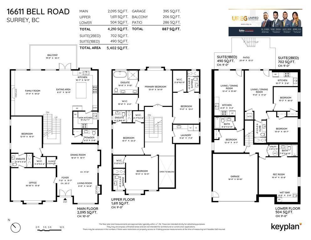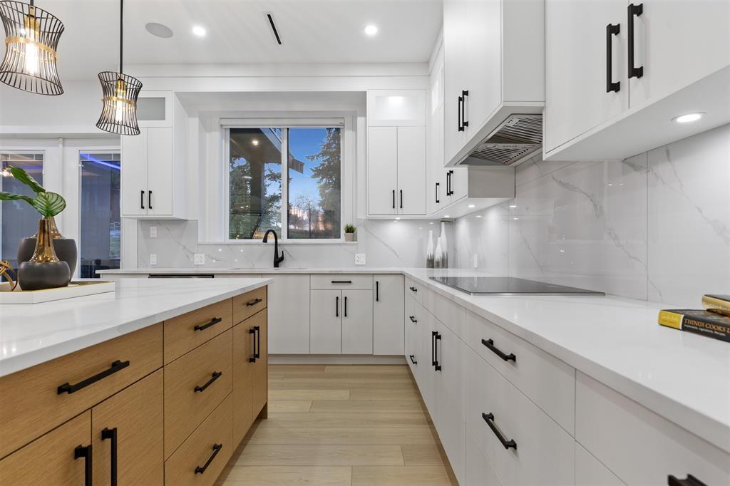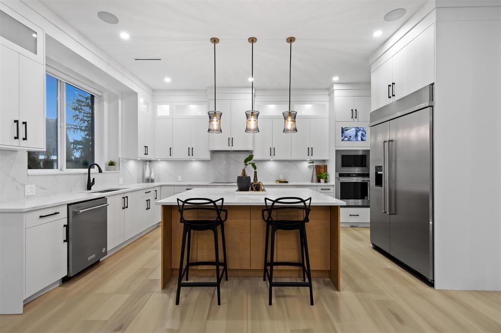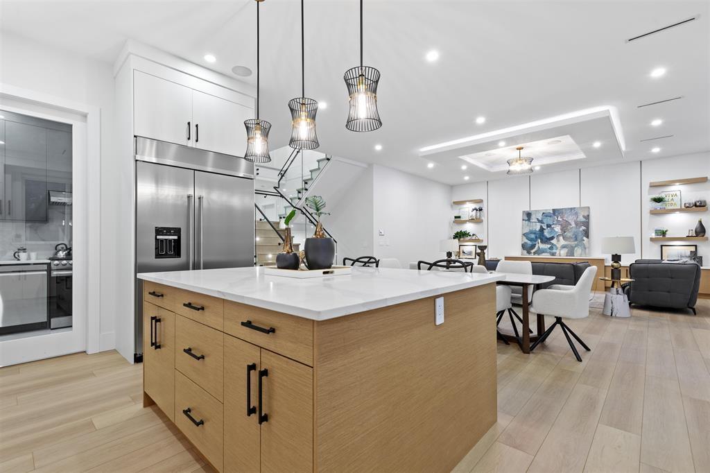 **BRAND NEW** one-of-a-kind custom-built home in the heart of Cloverdale. Located in a QUIET neighbourhood, offering over 5,400 SF of lavish finishing showcases our DESIGNER and builder coming together for a MASTERPIECE. The interior boasts an OPEN FLOOR PLAN with designer lighting package, extensive woodwork, custom chef's kitchen with nook, spacious spice kitchen, pantry, central A/C, HVR, high end appliances, and Radiant Heating throughout. With a primary bedroom on main floor that boasts a private ensuite along with gym/recroom on main. Upstairs, you'll find 4 bedrooms & 4 bathrooms, perfect for a large family. The basement includes 2 Rentals Suites (2+1) as great mortgage helpers! Bonus - Private THEATRE ROOM, custom-built bar, and full washroom downstairs. New Home Warranty 2/5/10. (id:44393)