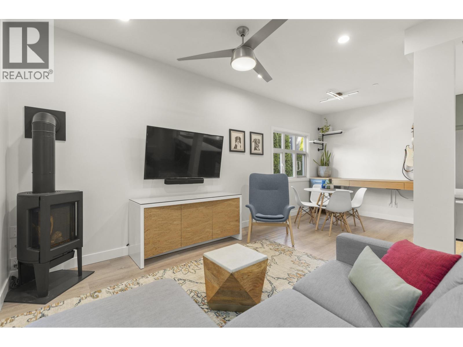 Beautifully updated 2 bed & den duplex just off The Drive with private fenced yard, nestled among mature cedars. Completely renovated main floor has spacious kitchen with eat-in island overlooking living room with cozy fireplace, and dining room. Upstairs has 2 bedrooms, each with en-suite bathroom. Downstairs, also completely redone, features a large laundry/mudroom with separate entrance, big den/flex room and 4pc bathroom. Air conditioning and Nest smart home system are just a couple of the modern comforts added to this home. Outside, this corner lot has a big private, fenced yard with 2 sheds for plenty of storage and driveway for off-street parking. Just one block from the heart of Commercial Drive, the best the city has to offer is at your doorstep! (id:44393)
