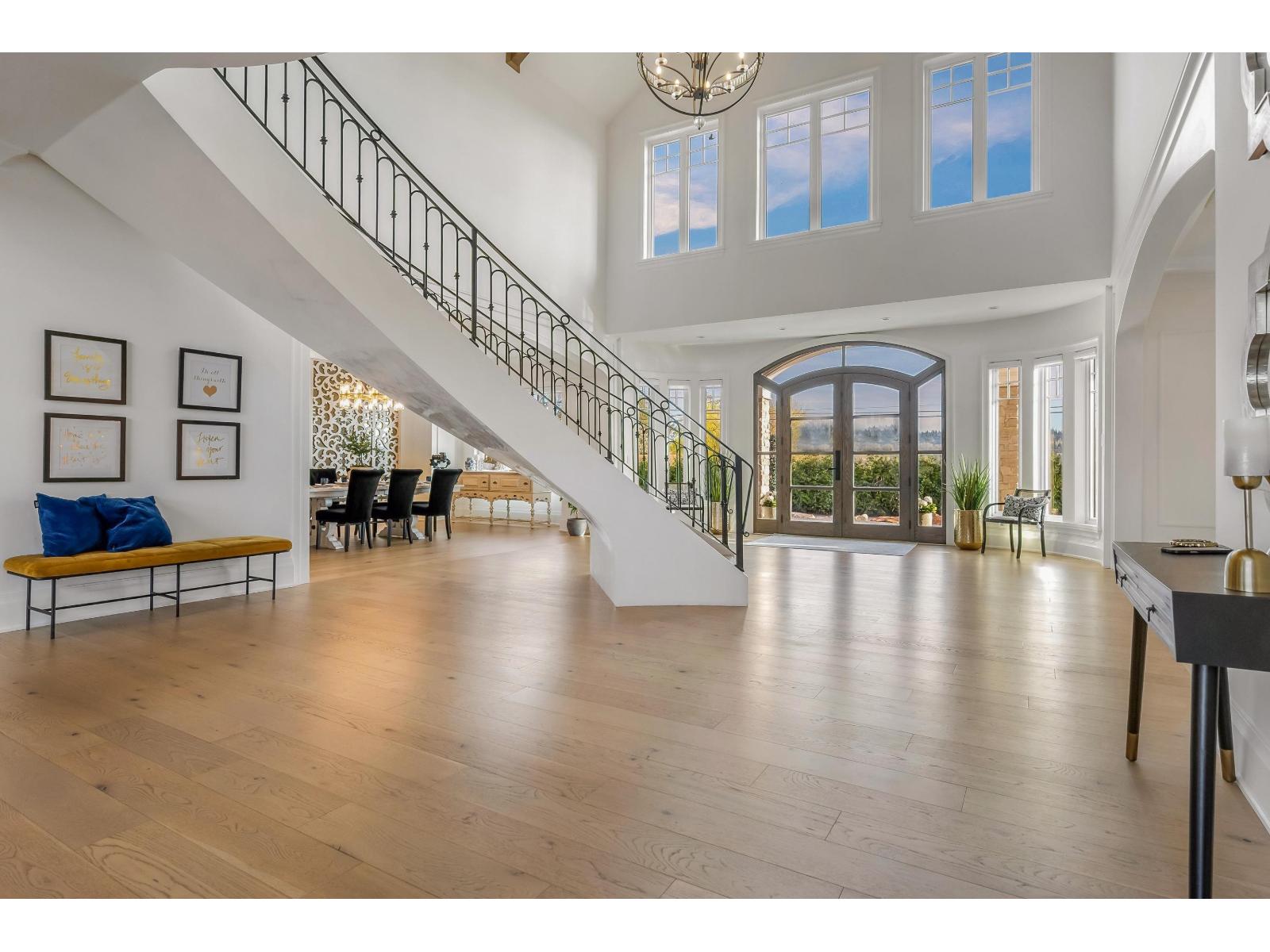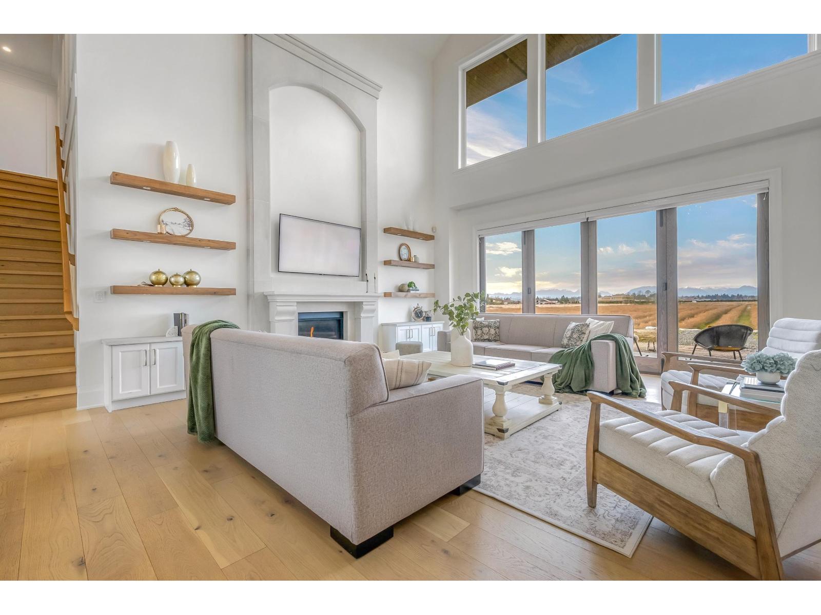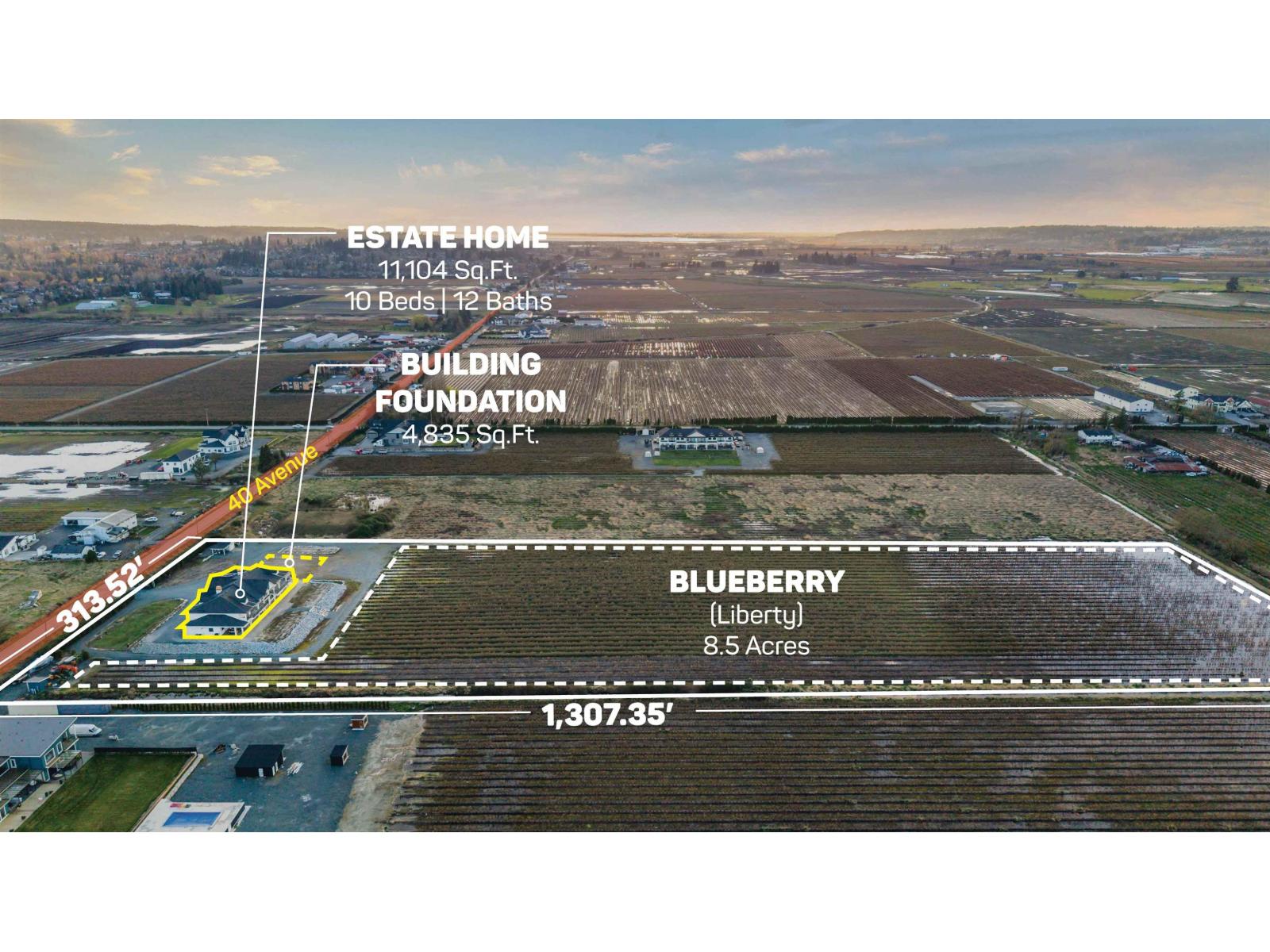 This sunny 9.41 Acre estate unites IRREPLACEABLE LUXURY w/country living in a coveted location. 11,000-SF dream home w/HIS+HERS GARAGES, 8.5 acres of established Liberty BLUEBERRY in a professional setup AND Foundation + approved plans for an ADDITIONAL 4,835-SF bldg! The main residence welcomes you with a custom plastered FORMAL STAIRCASE in a GRAND ENTRYWAY+ a feng shui WATERWALL. Soaring 25-FT VAULTED CEILINGS decorated w/architectural wood beams. Elegant interior design features a limestone fireplace, beautiful chandeliers, interior stone, & a lavish primary ensuite. 9 over-sized Bedroom Suites, Home Gym, Theatre, SAUNA, Wetbar + temp.controlled WINE CELLAR. Enjoy MOUNTAIN VIEWS from the walkout nano doors or upper balconies. Near PRESTIGIOUS AMENITIES w/easy access to hwys+border. (id:44393)