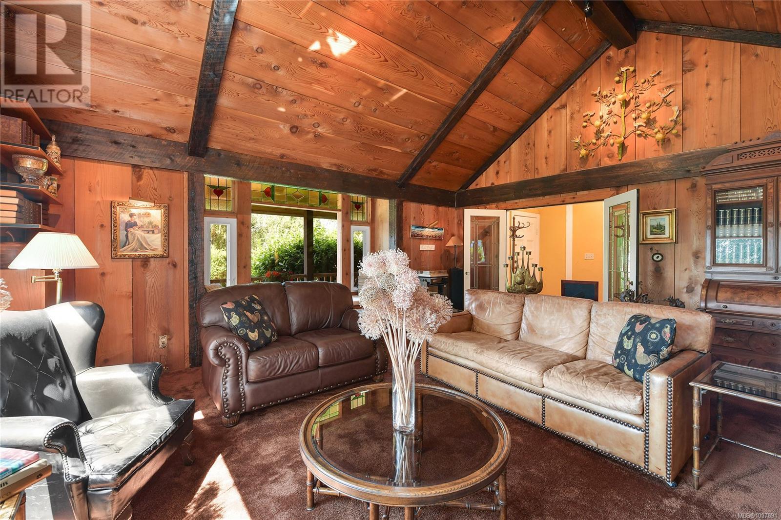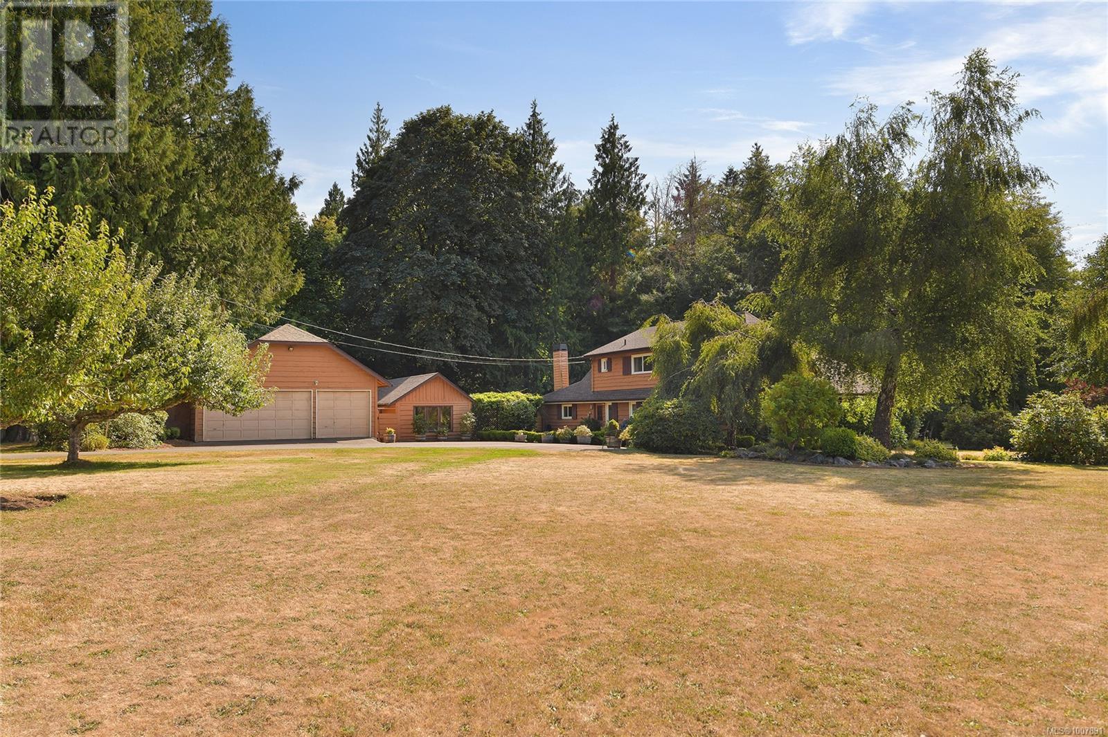 SAANICH PENINSULA COUNTRY RETREAT! Discover your very own sanctuary in the Mount Newton Valley on the beautiful Saanich Peninsula with this European styled home. The charm of exposed beams, vaulted ceilings, a stone fireplace, and leaded French doors create an inviting retreat that is awaiting your update ideas. This custom-built home features 4 bedrooms, 4 bathrooms, a primary bedroom on the main level, a separate dining area, a country style eat-in kitchen, a cozy family room with a wood stove, and a private patio overlooking your own magical forest. The property also includes a separate studio and retreat building which offers an array of flexible living options and space for the entire family. Lovingly landscaped gardens, fig/fruit trees, grapevines, vegetable gardens and open grassy areas surround the home, while the nearly 5-acre nature retreat offers creatively developed trails and the peaceful sounds of Graham Creek. This is a legacy property waiting for you and your family! (id:44393)