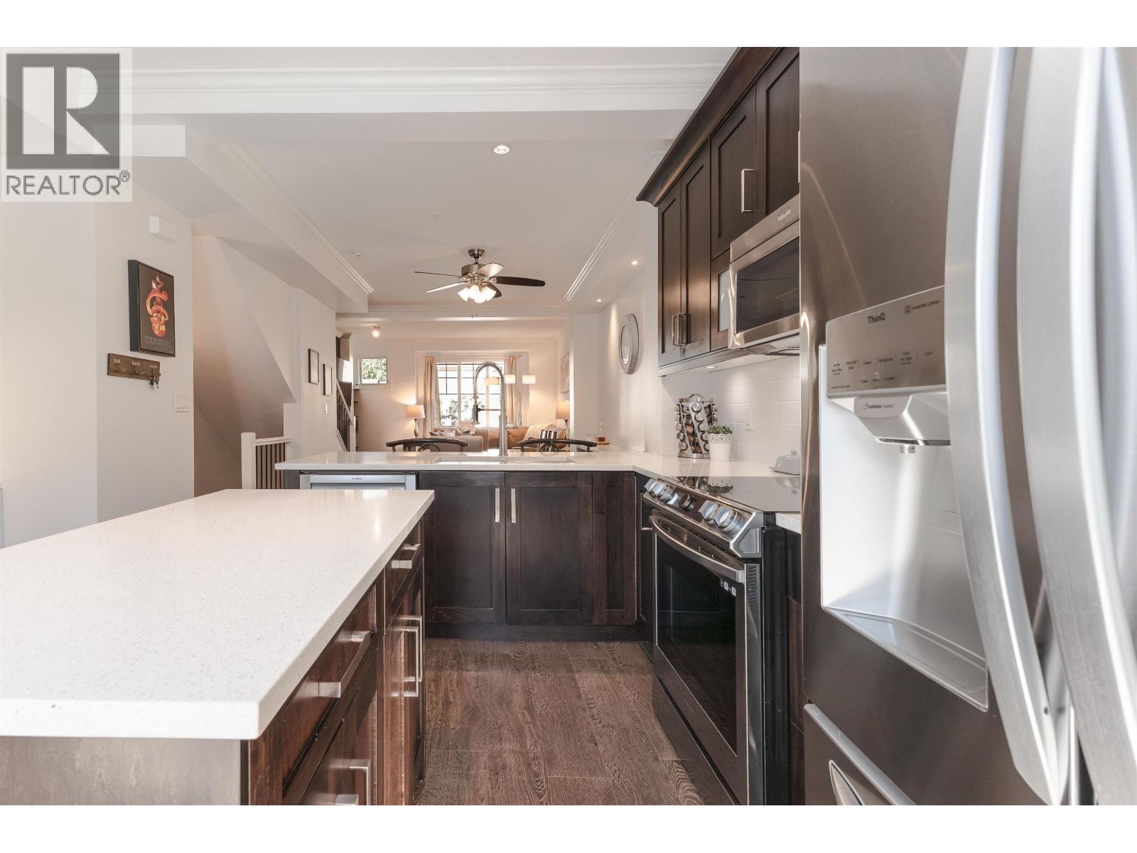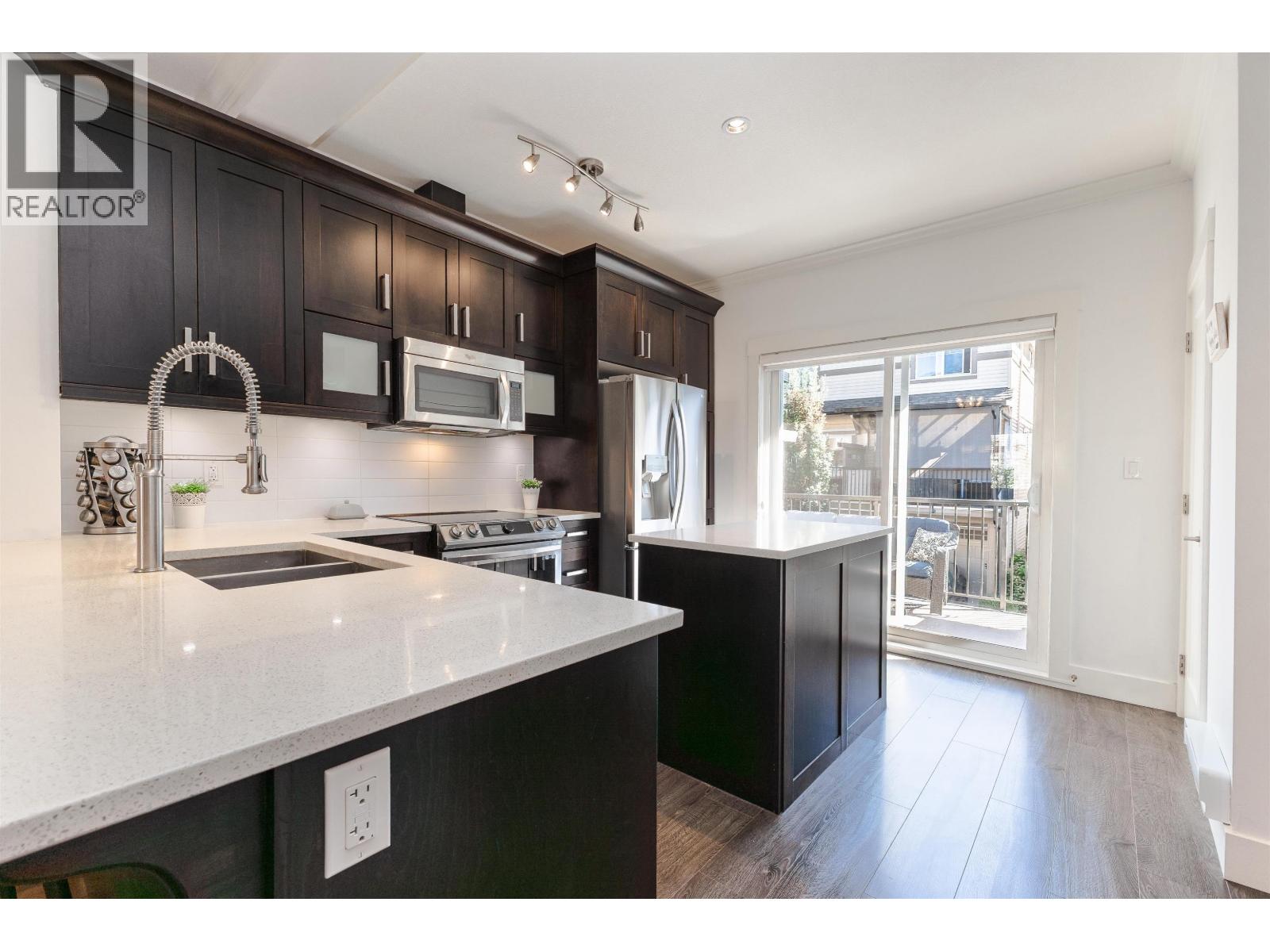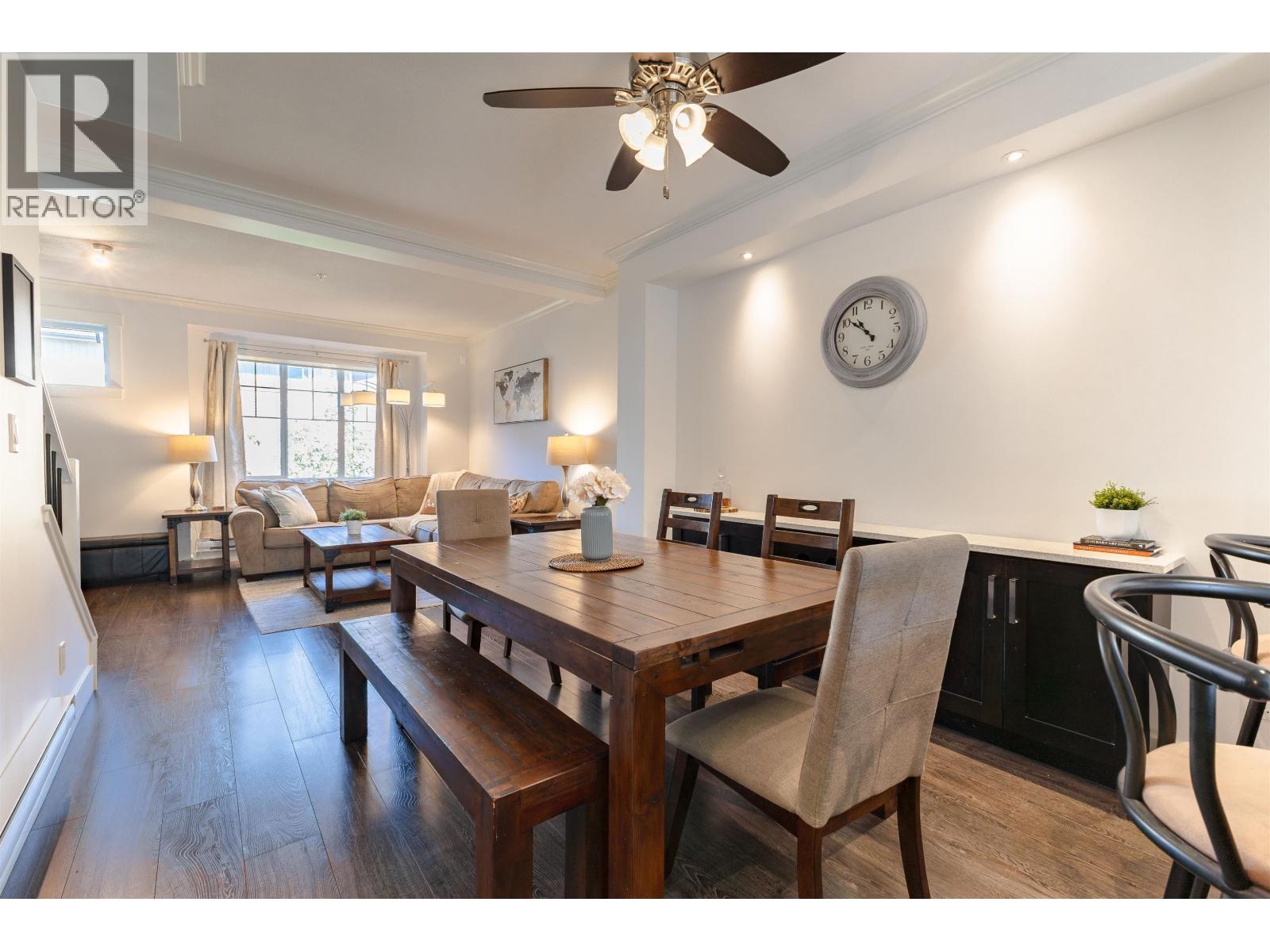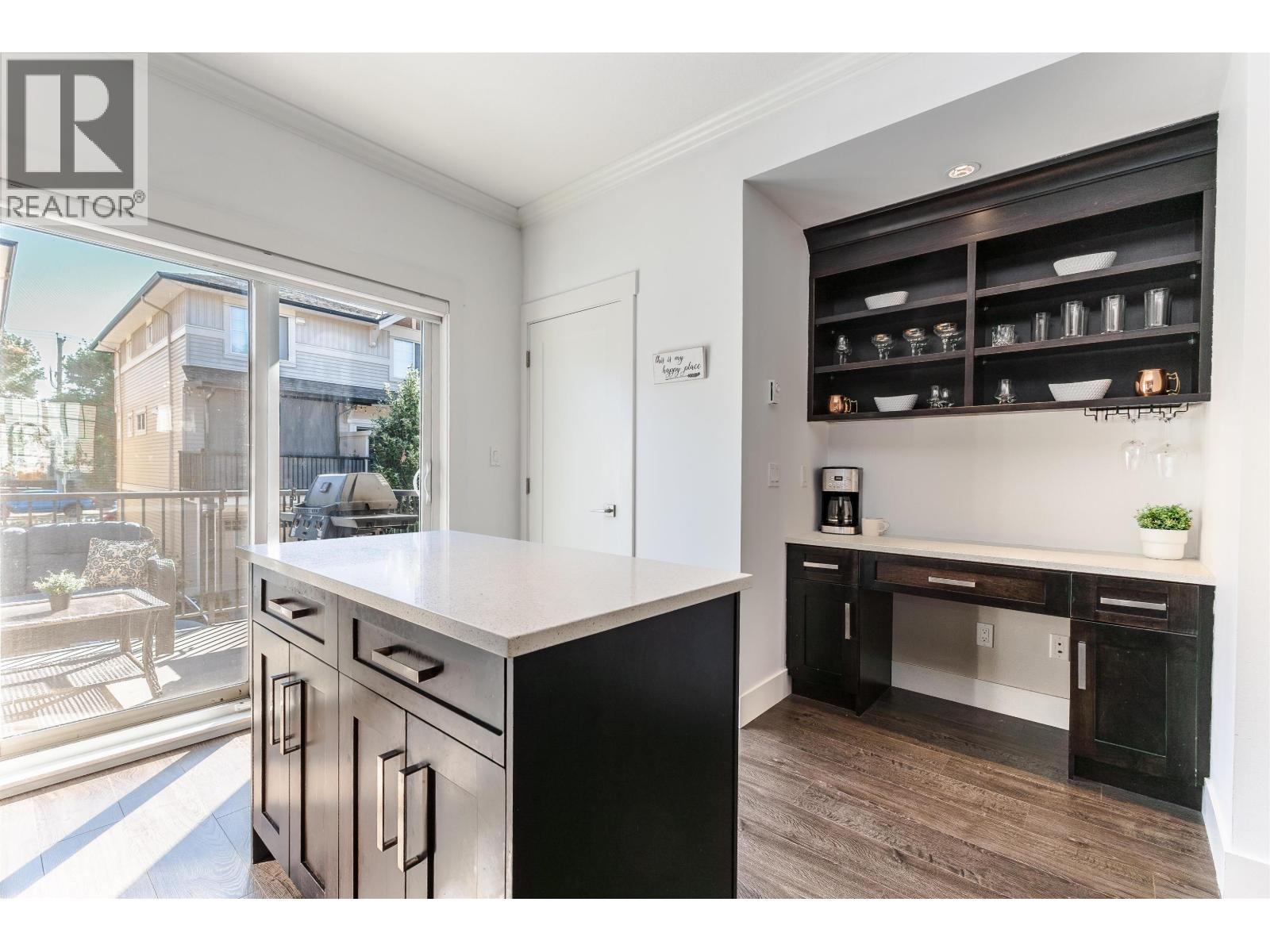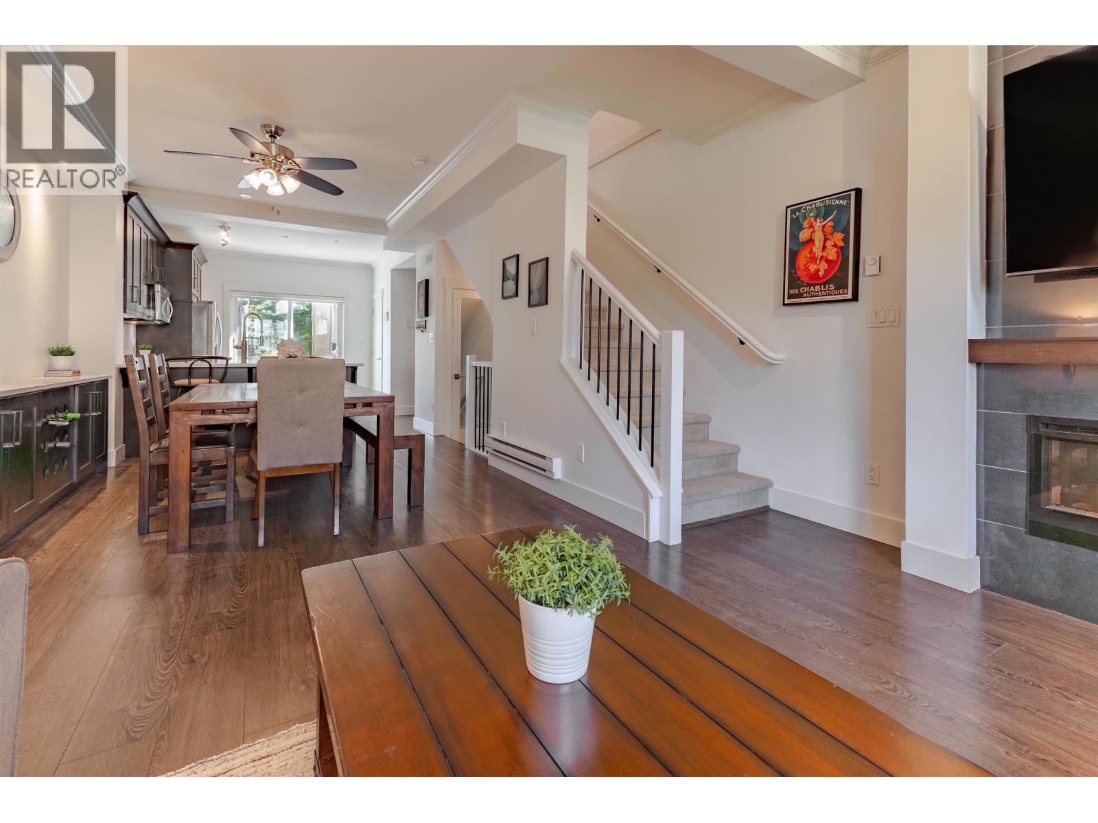 $284.95 MonthlyAlbion Station Presents: Beautifully kept 3 Bedroom 3 Bathroom townhouse in quiet area of complex. Main floor features open floorplan with kitchen, dining and living room with cozy electric fireplace. Kitchen features shaker style soft close cabinetry, quartz counters newer stainless steel appliances, and built in desk and bar area. Upstairs you will find spacious primary bedroom, walk through closet, and renovated 5pcs ensuite boasting frameless glass rain shower and double sinks! Two additional bedrooms upstairs and laundry for your convenience. Walk out patio on main floor and fully fenced yard on lower level. New hot water tank and low strata fees. Close to schools, parks and trails! (id:44393)