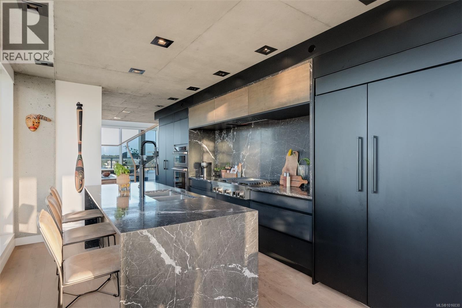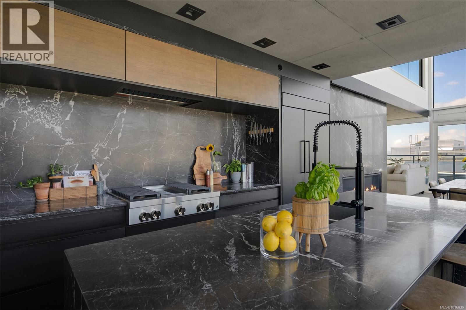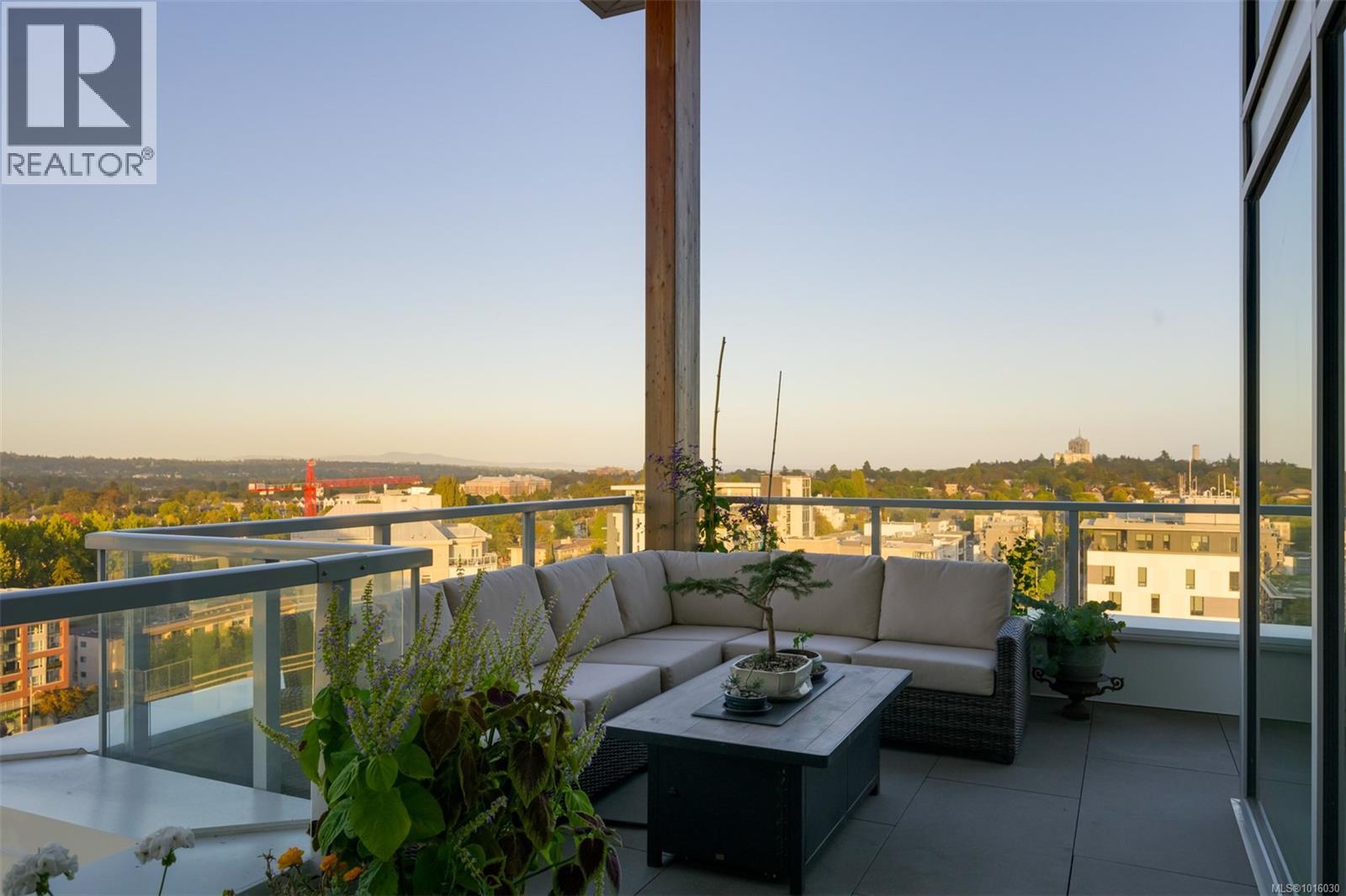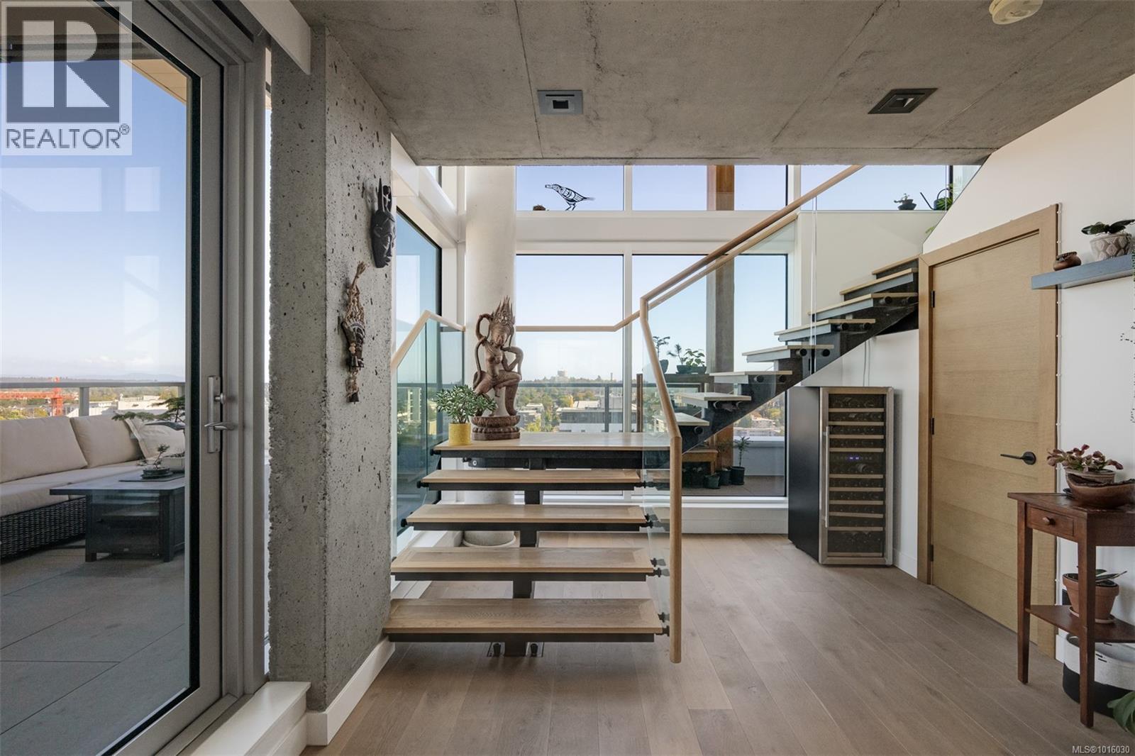 $999 MonthlyDiscover the ultimate penthouse lifestyle at 989 Johnson St in downtown Victoria. This stunning steel and concrete home spans 1,800 sqft over two levels with 17.5-ft ceilings. Floor-to-ceiling windows fill the space with natural light. The kitchen flows seamlessly into the open-concept living area, perfect for hosting or unwinding. Enjoy 270-degree views of mountains, ocean, and city, with three patios to take it all in, including two covered east-facing decks with electric blinds and water/gas hookups. High-end finishes and warm wood accents bring elegance to the industrial style, complementing three bedrooms and baths. The primary bedroom suite, complete with a luxurious ensuite, sits above the family room for unparalleled views. Just steps from restaurants, spas, and downtown amenities. This pet-friendly, rentable penthouse includes two parking spots and a large private storage unit. (id:44393)