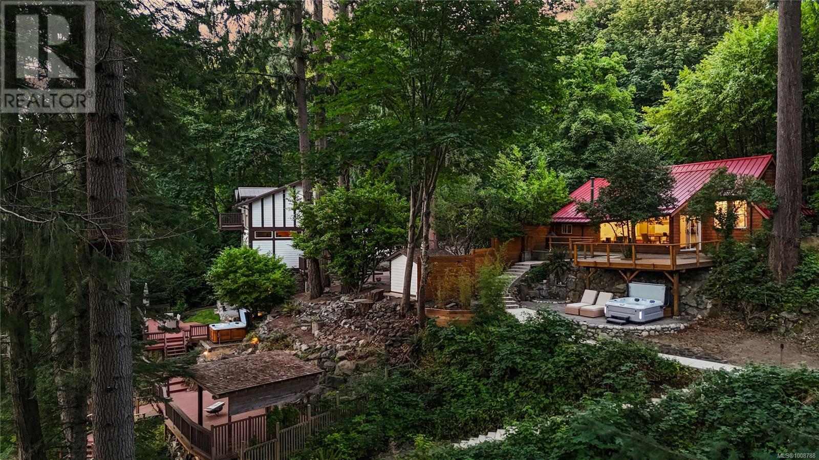 Live amongst the old growth forest of Goldstream Provincial Park. Welcome to your own west coast retreat, located at the end of a no exit road within city limits. Spread over two oceanfront lots, this assemblage offers resort-like living with a short commute to the city centre. This ultra rare paradise forms an extremely private compound overall and between each parcel. Each lot boasts its own home, driveway, well, hot tub, septic system, and shoreline deck, all with no homes on either side. Escape the city and live amidst the seals, salmon, eagles and hummingbirds. Gaze contentedly at the starry sky from the comfort of your oceanfront hot tubs. Immerse yourself in the whimsies of the coastal fauna as their business ebbs and flows with the tide of the provincial park estuary below, which in summer warms to lake-like temperatures for year-round swimming. Stroll along your private boardwalks, through lush forest, down to the water’s edge and launch your kayaks and paddle boards directly into the ocean. This is your chance to live in an extension of the park with loads of room for family and guests, or the opportunity to subsidize your finances with a highly desirable rental. Contact us today for an info pack. (id:44393)