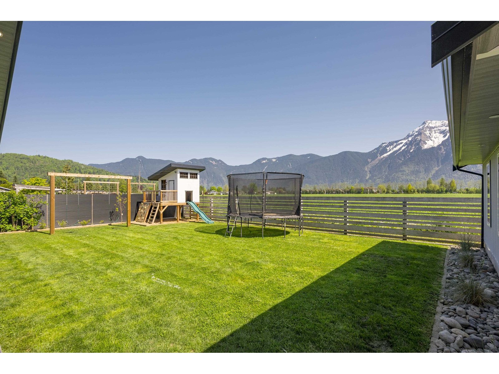 Fully renovated rancher backing farmland with unbeatable views of Mt. Cheam. This 4 bed, 2.5 bath home was completely redone in 2020 "“ including electrical, plumbing, drywall, and more. Features an open floor plan, generously sized master bed, and AC for year round comfort. 50-year metal roof, metal siding and soffits for low-maintenance living. Fully fenced yard with large covered concrete patio, NG hookup, raised steel garden boxes, pop-up irrigation on the front lawn, and a playhouse for the kids. The detached insulated shop (16'x28') and RV parking provides plenty of room for toys. Located on one of Agassiz's nicest streets w/ good walkability to the town, the community rec centre, Agassiz Elementary/Secondary, and access to over 5km of trails through farmland. Move in and enjoy the best view in the Valley! (id:44393)