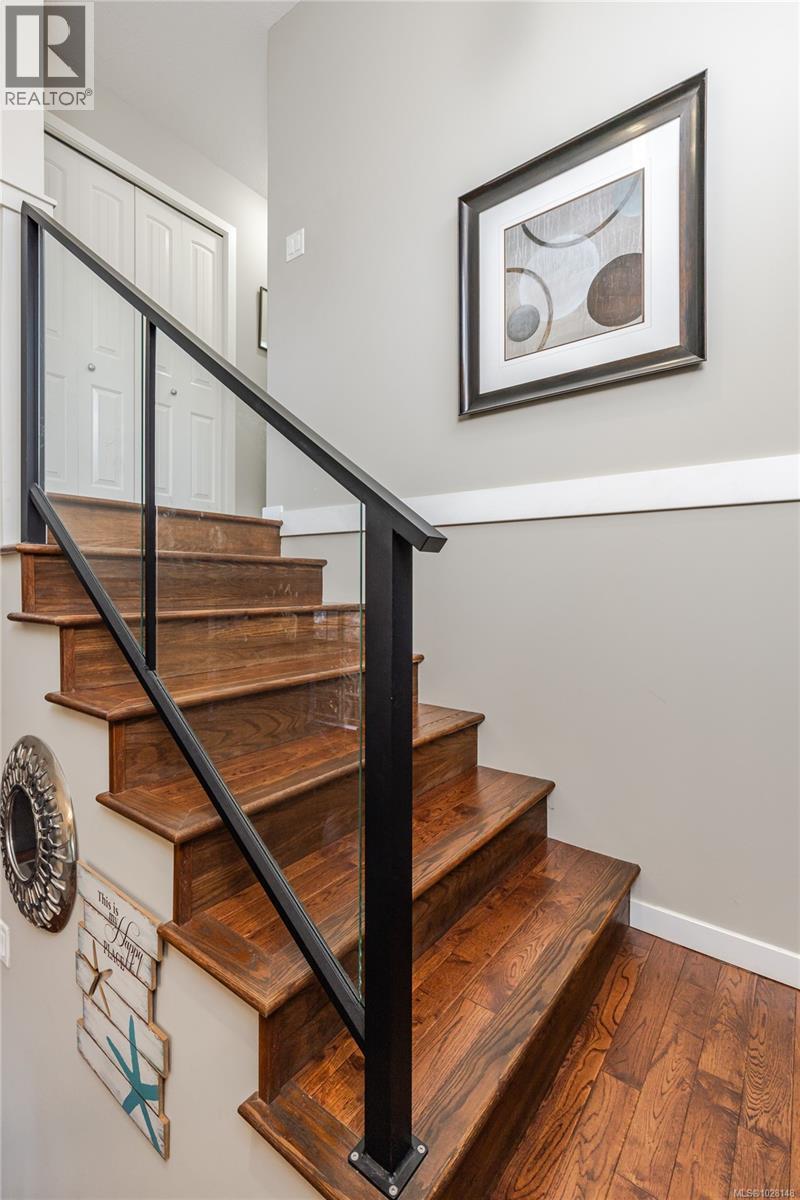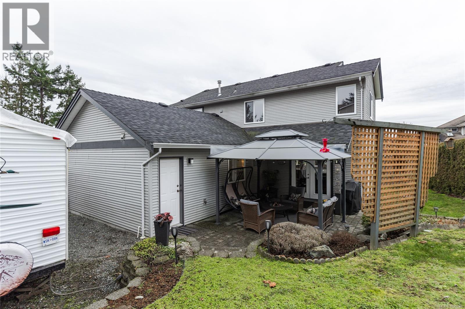 Situated on a spacious 8,973 sq ft corner lot in the heart of Chase River, where space and privacy are truly valued. This impressive home offers 4 bedrooms and 3 bathrooms between 2 levels and shows even better in person. A charming covered front porch welcomes you inside, where pride of ownership is clearly evident. The main level features continuous hardwood flooring, a bright and spacious living room with a natural gas fireplace, an inviting open-concept kitchen that flows through to the adjoining dining and family rooms. The family room is enhanced by French doors opening to an enchanting covered patio, creating a wonderful indoor-outdoor atmosphere. Upstairs, a glass-railed staircase leads to the primary bedroom with walk-in closet and ensuite, 3 additional sun-filled bedrooms and a main bathroom. A heat pump provides economical year-round comfort. Completing the home is a spacious dbl garage, ample driveway space for 5 vehicles and enclosed RV parking—perfect for all your toys. All measurements are approx. and must be verified if relied upon. (id:44393)