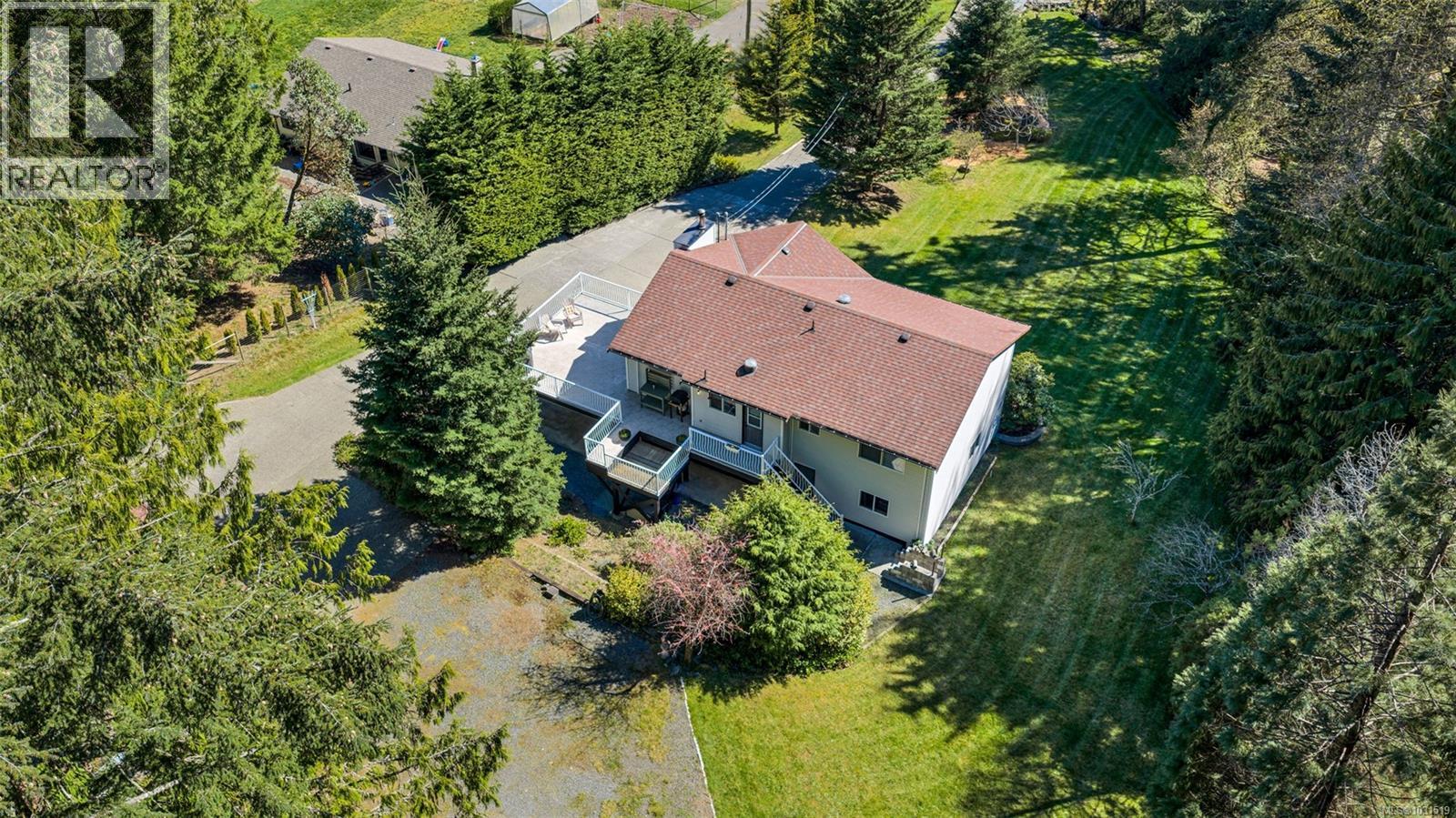 OPEN HOUSE Sat. 1-3 pm. Located in the popular Hillcroft Acres and backing directly onto Cobble Hill Mountain Regional Park, this well-maintained 2,200 sq. ft. home offers 3 bedrooms and 3 baths on a picturesque 1-acre parcel. Enjoy beautiful mountain views and the privacy of forest land right in your backyard. The property includes a large detached, over-height shop/garage that is insulated, heated by a wood stove, and spacious. Inside the home you’ll find hardwood flooring, wood stove, and access to an entertainment-sized deck—perfect for relaxing or hosting. The grounds are equally impressive, with a variety of mature fruit trees including apple, plum, fig, and quince. Other features include a carport, a covered area attached to the woodshed, and plenty of extra space for personal and garden storage. The finished basement is well-suited to a potenial 1-bedroom suite, with lots of space, light, and an easy conversion to shared laundry. (id:44393)