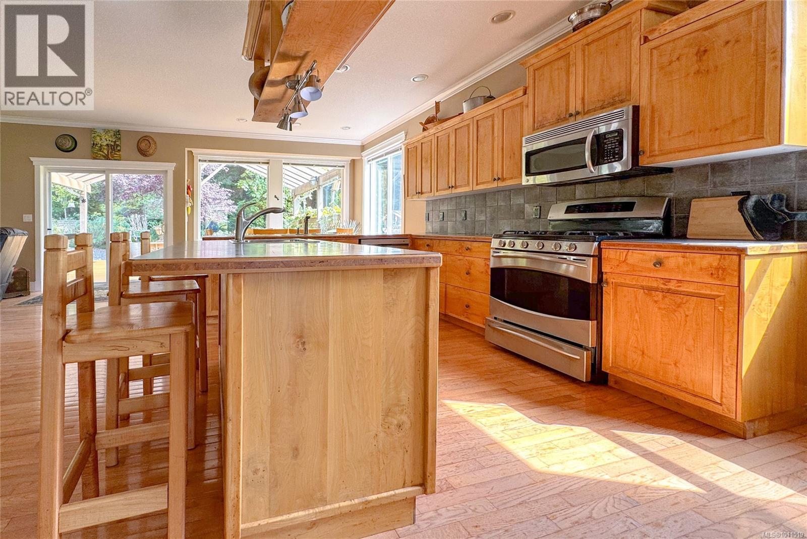 This sunny and spacious custom-built 3-bedroom, 3-bathroom home offers 2,820 sq ft of comfortable living on a 0.68-acre southwest-facing property just a short stroll to the beach. Built in 2000, the home showcases quality craftsmanship and thoughtful finishing throughout, including maple kitchen cabinets crafted from wood milled on the property, detailed trim and mouldings, hardwood floors, and a cozy propane fireplace. The open-style kitchen with island and secondary prep sink is ideal for both everyday living and entertaining. The generously sized primary bedroom includes a 4-piece ensuite and walk-in closet, while the lower level provides plenty of flexible space with a family room, bathroom, two additional bedrooms, and direct access to the 800 sq ft garage. The home has a metal roof, well with UV filtration system, and lots of storage. Outdoors, enjoy relaxing evenings on the gorgeous covered entertaining deck, dip into the hot tub or step into the sauna, or wander through the picturesque property and into the gardens. A welcoming home in a desirable Gabriola setting. Floor plans, virtual tour & full information package available! All information to be verified by a buyer if deemed important. (id:44393)