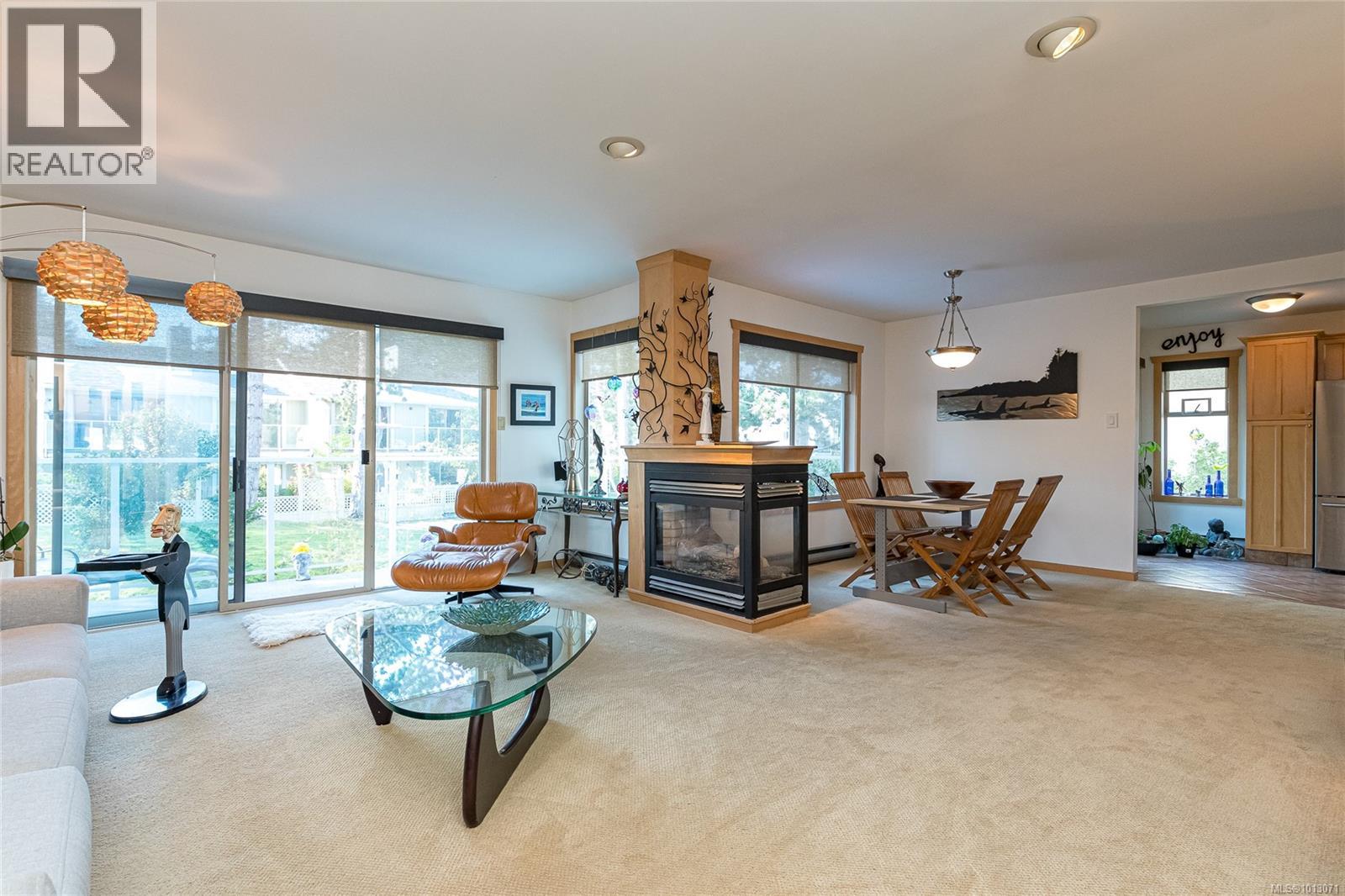 $659 MonthlyThis highly sought-after, end-unit townhouse is sure to impress, offering 1769 SQ FT w/3 BRs, 2 BA’s, a DBL car garage, and custom staircase, wood & metal work throughout. This unit boasts a stunning end-to-end patio & an fully updated kitchen with a skylight that is open to the dining area. The living room features a two-sided gas fireplace for cozy winter evenings & is also open to the dining area. The spacious MSTR BR includes a fully updated 4 PC ensuite & the 2nd BR on the upper level is currently used as an office with built-ins but is an easy conversion back to a BR. Lower level offers another large BR with a three-piece ensuite & a flex space that opens onto a private, spacious patio & gardens. This unit provides ample storage, a full size laundry area all allowing for downsizing without compromise. Enjoy the convenience of being a minute's walk from the marina, waterfront, beaches, & public tennis courts, all while remaining within walking distance of the amenities of beautiful Sidney By The Sea. Proudly presented by The Ann Watley Group, Ann Watley Personal Real Estate Corporation & Chad Tuggle, Pemberton Holmes Ltd. (id:44393)