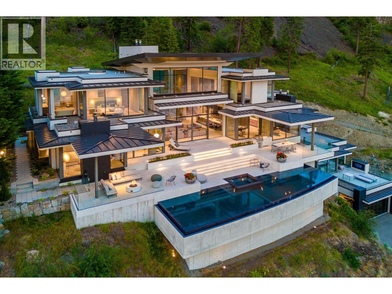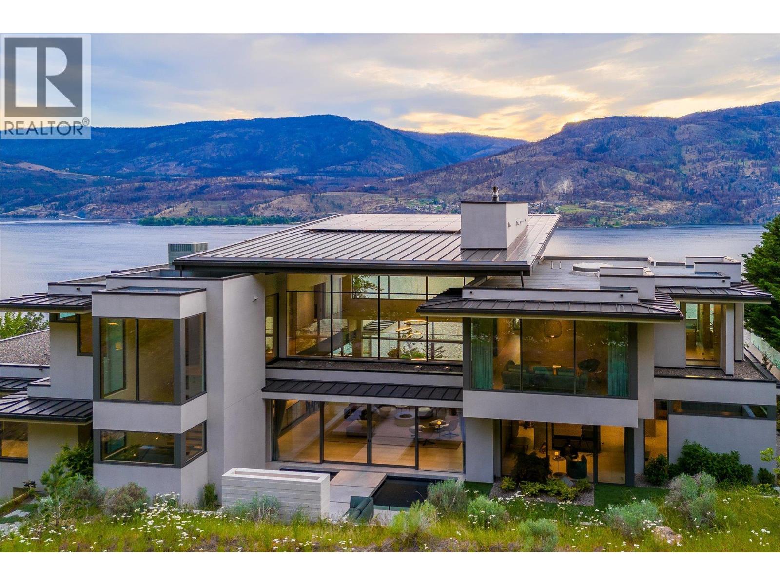 $750.37 MonthlyNestled in exclusive Sheerwater, Mont des Cieux the prestigious 2023 Home of the Year awarded by the Okanagan Housing Awards of Excellence, offers the ultimate lakefront living experience. This luxurious 10,000 square foot custom residence is strategically designed to provide unparalleled privacy and breathtaking views of Okanagan Lake. Constructed primarily of steel, concrete, and glass, this home radiates a sophisticated warmth. The glass-enclosed elevator seamlessly connects the various levels. The expansive great room, featuring soaring ceilings and walls of windows, fills the space with natural light, creating a serene ambiance. Step outside to the infinity pool overlooking Okanagan Lake or find tranquility in the back hillside seating area beside a tiled pond and waterfall, both designed for your relaxation and enjoyment. With cutting-edge mechanical systems, solar panels, and a fully-automated Crestron system, this visionary masterpiece stands out in the Okanagan region. Imported triple-pane windows from Austria, glass panels from Germany, millwork from Italy, furniture from Australia, and gym equipment from Poland all ensure this home is of the highest international standard. Boasting three primary suites, a state-of-the-art theater, and a wine cellar capable of storing over 300 bottles, Mont des Cieux offers a lifestyle of unparalleled luxury and sophistication. Embrace the Okanagan lifestyle with the benefit of lakefront access and your boat slip at the private wharf. (id:44393)