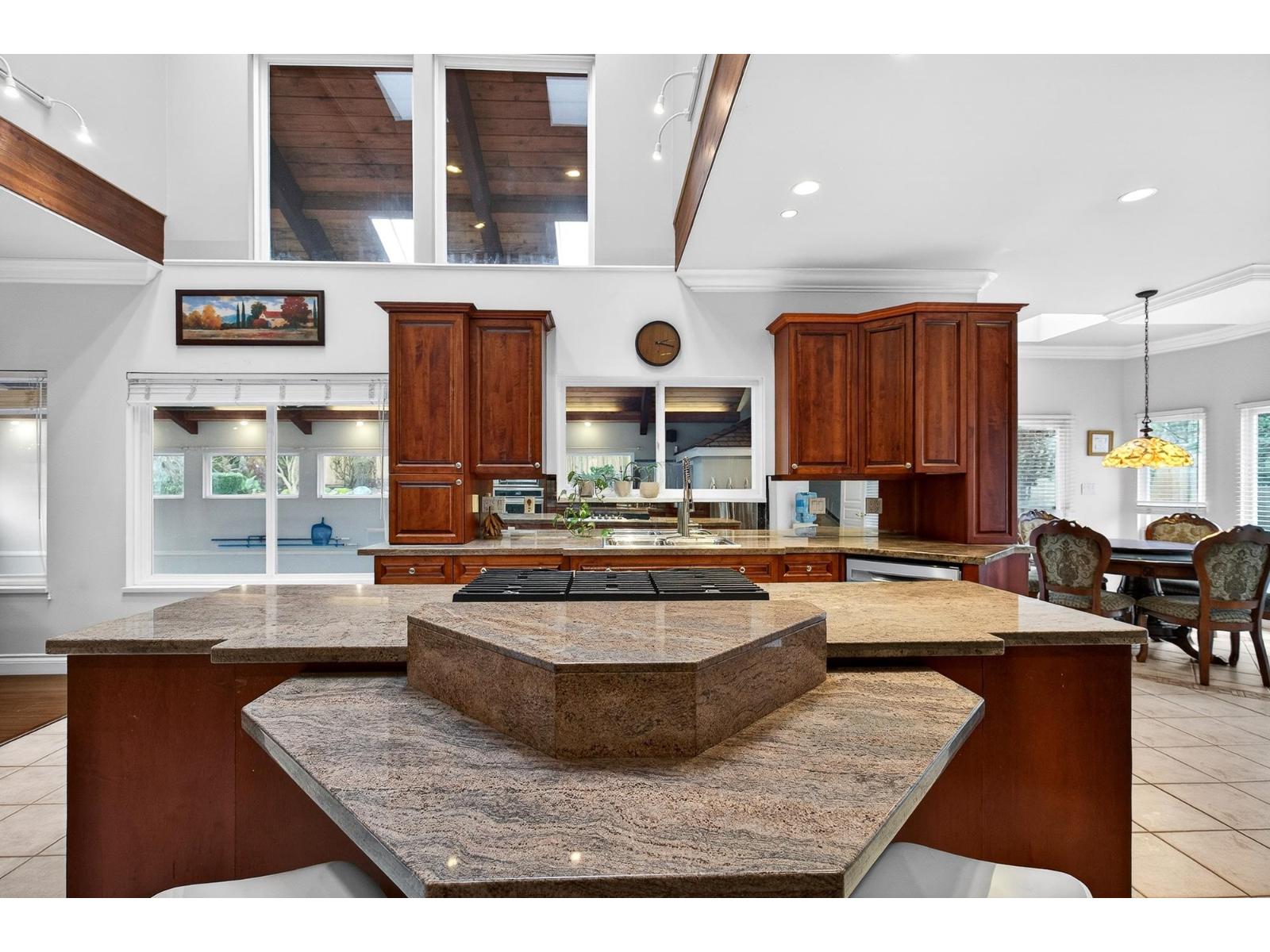 Nestled in prestigious Abbey Ridge in Fraser Heights, this exceptional 5,500 sq. ft. custom executive home rests on a sprawling 14,000+ sq. ft. lot with breathtaking mountain views and a sun-soaked south-facing backyard. Designed for refined living and unforgettable entertaining, it showcases a grand chef's kitchen with an elegant butler's pantry, seamless access to multiple patios, and a private indoor pool and hot tub for year-round enjoyment. Upstairs features three expansive primary bedrooms, each with its own ensuite. The massive lower level offers space for recreation or a future income-generating suite. Triple garage. Minutes to top-ranked public and private schools. (id:44393)