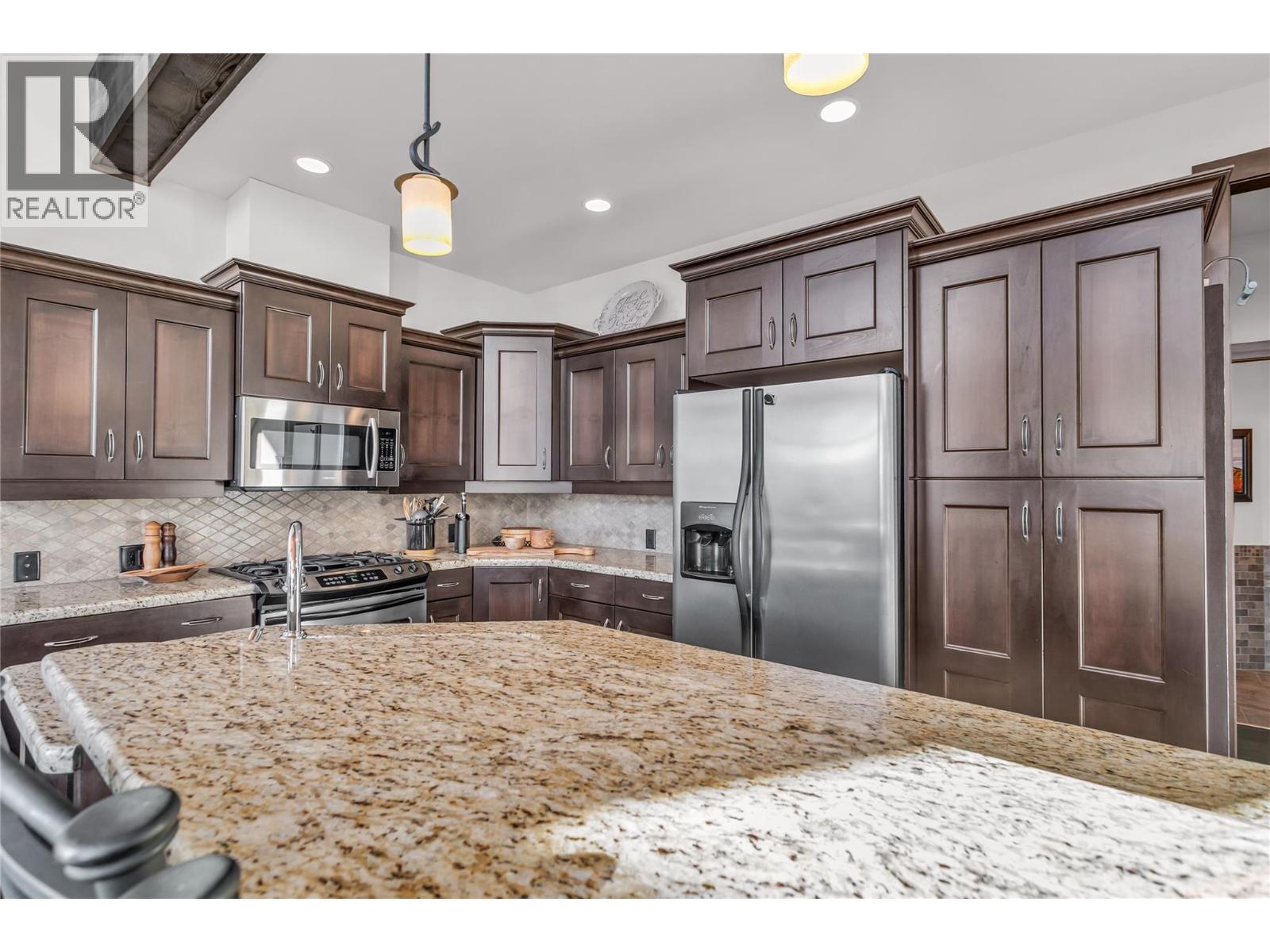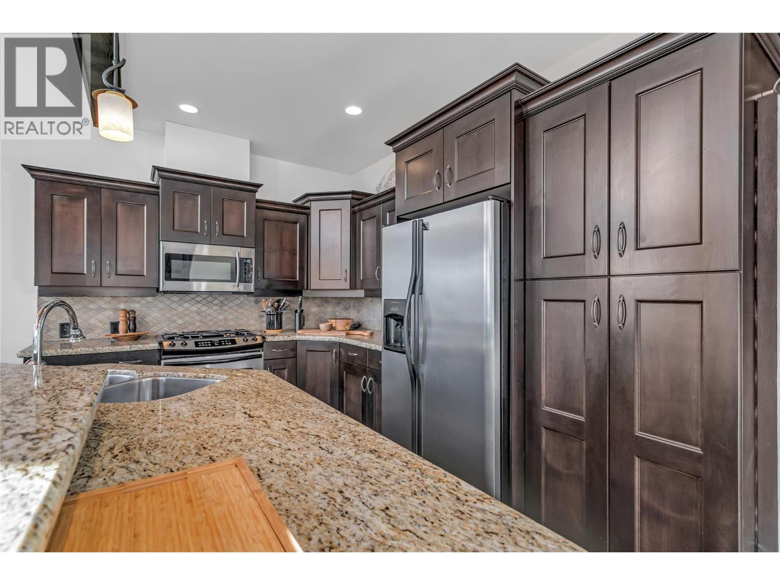 $135 MonthlyLocated in Grizzly Ridge at Big White Ski Resort, this true classic ski chalet delivers timeless alpine character paired with thoughtful, high-end upgrades throughout. Originally built as the show home, the residence showcases superior craftsmanship, refined design, and premium finishes rarely found on the mountain. The home has never been rented with 1 owner and presents in exceptional condition. The main living level features two large bedrooms, each with its own ensuite and one with a gas fireplace for cozy nights, while the upper level offers two additional spacious bedrooms complemented by a full bathroom. In total, the home includes 3.5 bathrooms, all with heated floors and a large steam shower in the main primary, providing comfort and functionality for families and guests. The former garage has been converted into a family room and ski/mud room with in floor radiant heat, adding approximately 375 sq ft of valuable living space (not included in finished measurements and easily converted back to a garage if desired). The main living area is anchored by vaulted ceilings, a chef’s kitchen and a WETT-certified wood-burning fireplace, creating an inviting chalet atmosphere. Additional highlights include views of the Monashee Mountain range through the floor to ceiling windows, a wine cellar, a loft, and a generous private patio with hot tub. Low strata fees complete this standout Grizzly Ridge offering. Furnishings are negotiable. (id:44393)