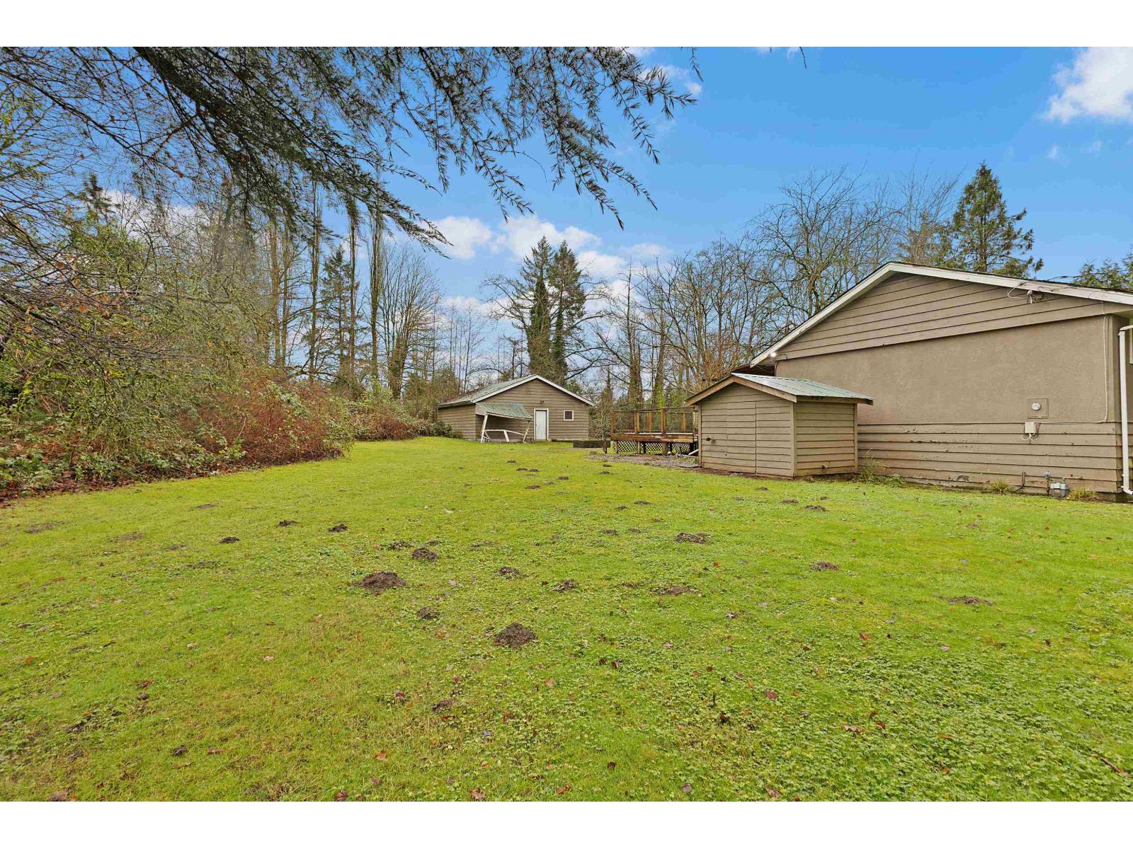 Situated on a private 1 acre lot, this well maintained home offers space, privacy, and scenic surroundings with a flexible layout ideal for extended family living. The lower level includes two bedrooms, two bathrooms, and a separate family area, making it well suited for an in law setup. The upper level features two additional bedrooms, one bathroom, a formal living room, and a dedicated dining area. The home offers an updated kitchen with newer appliances, forced air heating, and bright, well kept interiors throughout. A 730+ sq ft detached garage with 40 amp power and an additional shed provide excellent storage and workspace. Ample parking and a large deck. Located minutes from Clayton Elementary with Salish Secondary across the street. Available immediately. (id:44393)