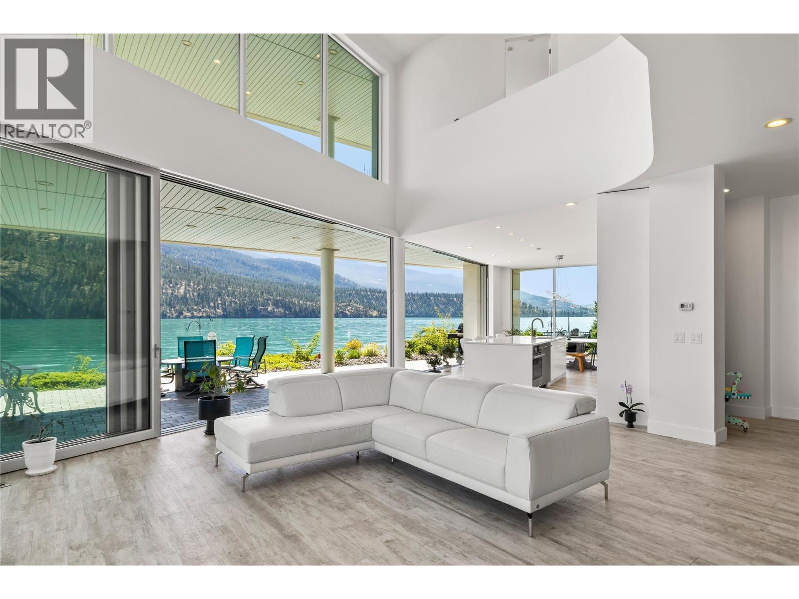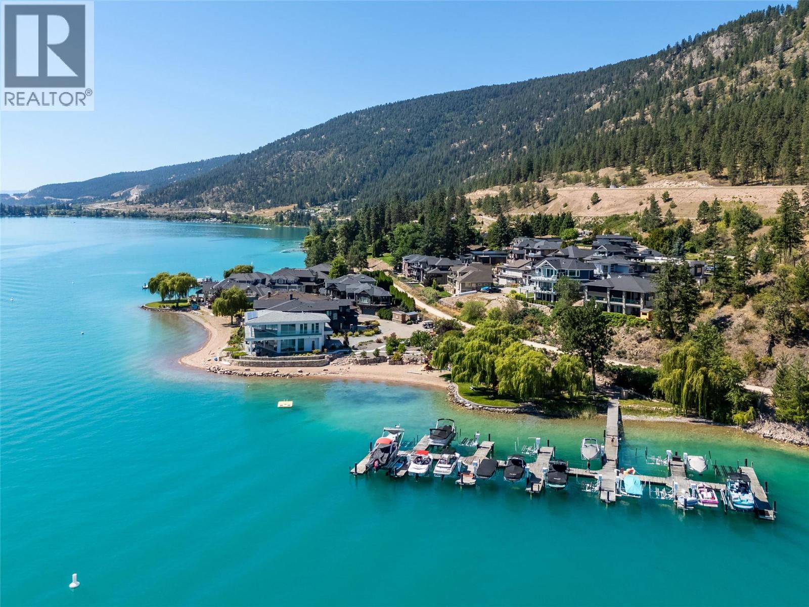 $600 MonthlyWelcome to 18541 Crystal Waters Rd — a rare opportunity to own in this exclusive, gated, bare land strata community on the shores of stunning Kalamalka Lake. This flat corner lot is the largest in the development, with 130' of lakefront with direct beach access and includes a boat lift, creating the ultimate lakeside lifestyle. The Okanagan Rail Trail is in your back yard, offering over 50 kilometres of scenic pathway connecting Kelowna to Coldstream — perfect for cycling, walking, and exploring the valley. Inside, impressive 10' tall Lift and Slide door system span the entire front wall of the home and tuck away, seamlessly blending indoor and outdoor living. The spacious kitchen with sprawling island features a mirrored backsplash reflecting the lake’s turquoise hues, a generous walk-in pantry, and premium finishes. Soaring 19’ ceilings define the open-concept living area with a gas fireplace and the ceramic tile floor throughout make for easy maintenance and care. A beach bathroom with an outside door makes for easy access to rinse off after a day on the water. Floating stairs and a glass railing lead upstairs to the primary suite with Nano doors to a private covered deck that makes the panoramic lake view part of daily life in this home. The ensuite includes a stand alone tub, frameless glass shower, dual sinks, and walk-in closet. A wraparound deck connects 2 more bedrooms to the front of the home with glistening lake views. Additional highlights include solar panels, hot water on demand, built-in vacuum, oversized double garage with mezzanine storage, EV charging (240V), a 4’ crawl space, multiple fruit trees and a raised garden bed. The strata fee is just $600/month and 2 pets of any size are permitted. (id:44393)