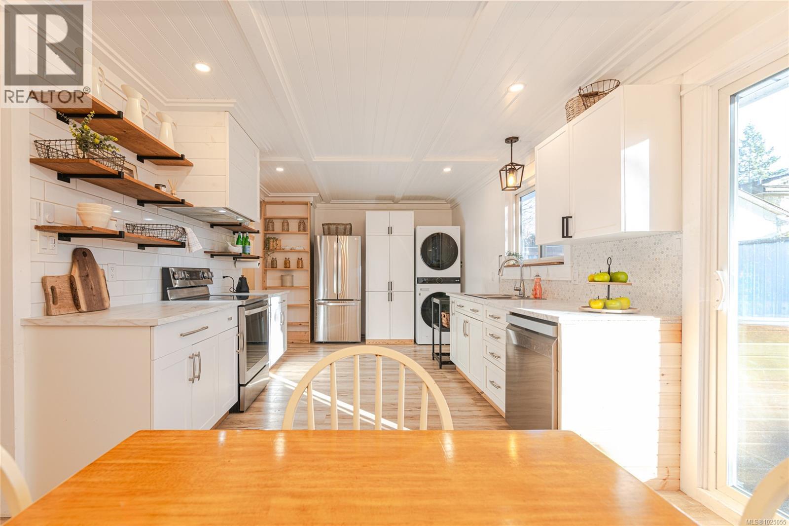 Set in Harmony Estates, a quiet, walkable Maple Bay neighbourhood near Harmony Park and Quamichan Lake, this updated 3-bedroom rancher offers easy single-level living with a polished, cared-for feel. Full of charm and in excellent condition, it’s highlighted by standout custom ceilings that add a modern, elevated finish. Updates include laminate flooring, fresh interior paint, lighting, new blinds, an updated bathroom vanity, hot water heater, fencing, and kitchen improvements like countertops, shelving, and hardware, plus new dishwasher, fridge, stove, and stackable washer/dryer. A wood-burning insert helps heat the whole house, supported by improved insulation for efficiency. Outside, enjoy a level, private, fully fenced south-facing yard with patio, garden beds, and a custom greenhouse, ideal for kids, pets, and entertaining. Extra storage and low-maintenance living, on a bus route and close to schools, parks, town, Quamichan Lake Park, and the Hand of Man Museum. Move in and enjoy. (id:44393)