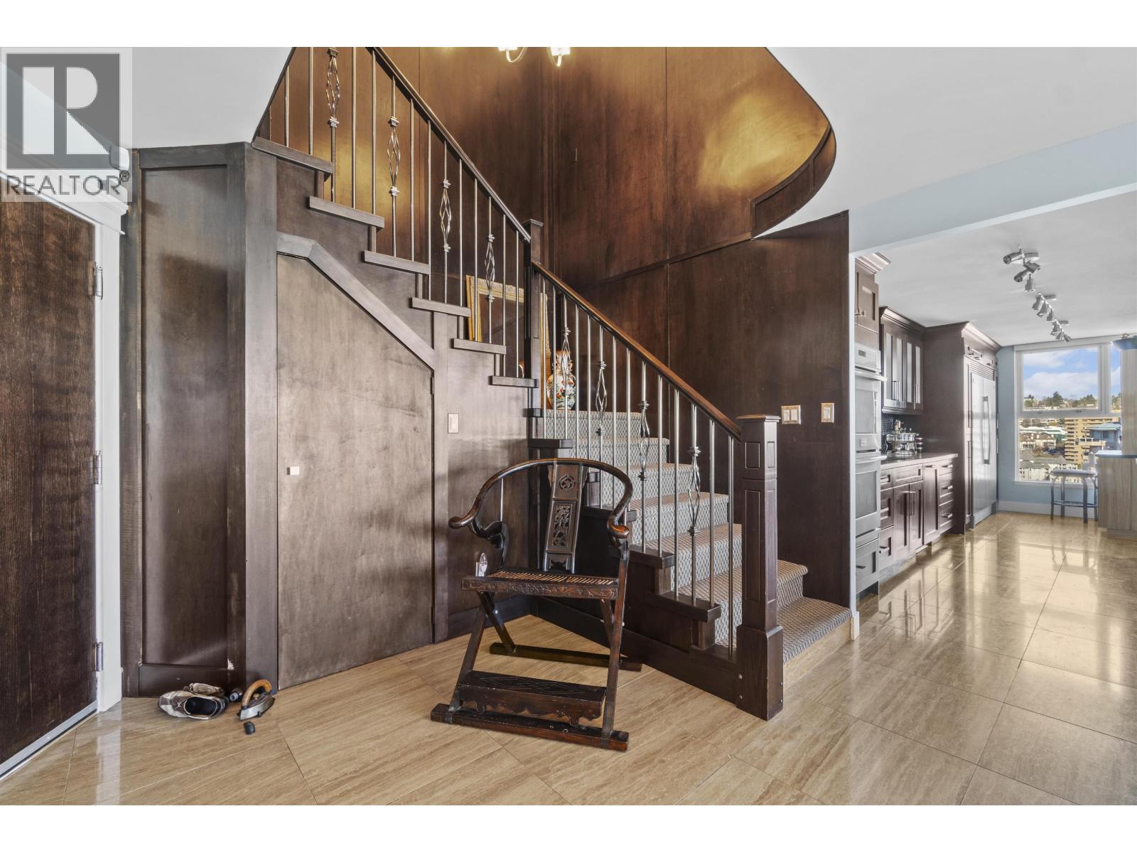 $1,779.01 MonthlyIncredible Renovation with Panoramic River Views - A Penthouse Like No Other! This luxurious penthouse blends elegance and comfort. The two-story entryway with coffered ceilings and a chandelier sets the tone, leading to a chef's kitchen with a 14' island, double convection ovens, a full-size fridge/freezer, and an induction cooktop. Spacious living and dining areas flow to a deck, while the cozy family room with a gas fireplace opens to another with river views. The serene primary bedroom boasts a spa-like ensuite, custom closets, and a private office. Upstairs, enjoy AC, three bedrooms, a den with a fireplace, a jetted tub, and the third deck. Steps from the Seawall and SkyTrain, this is waterfront living at its finest! (id:44393)