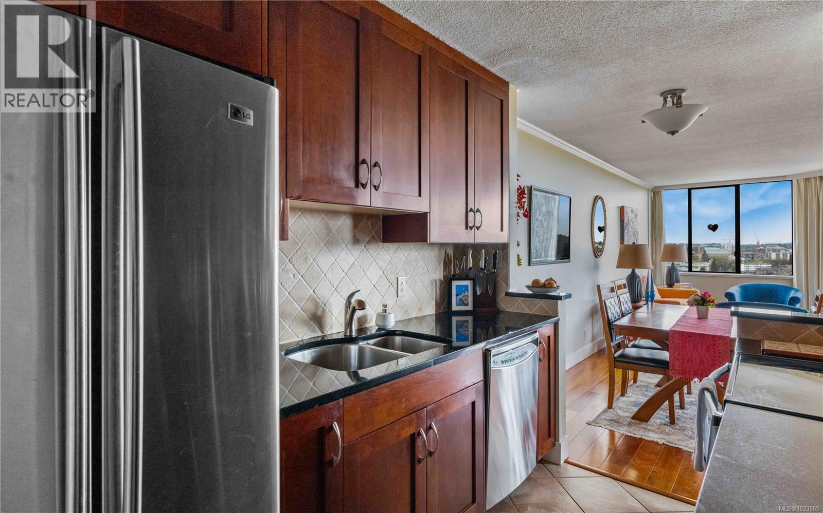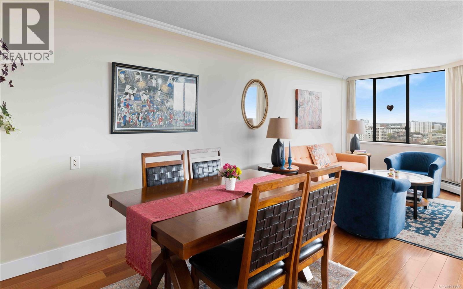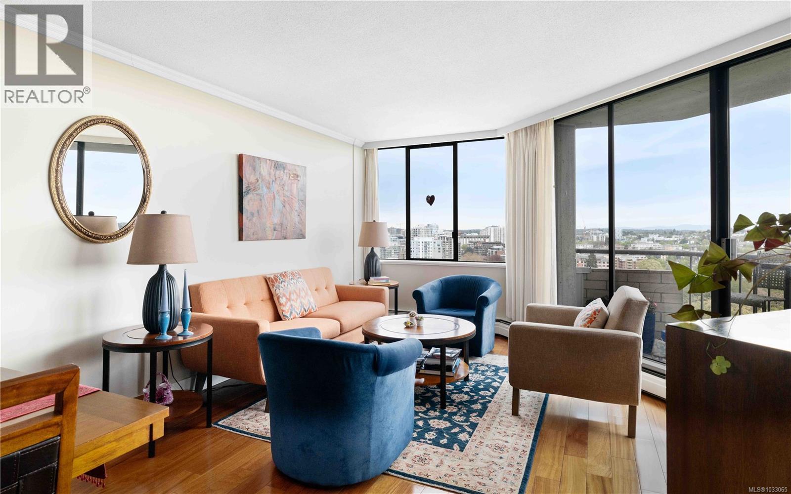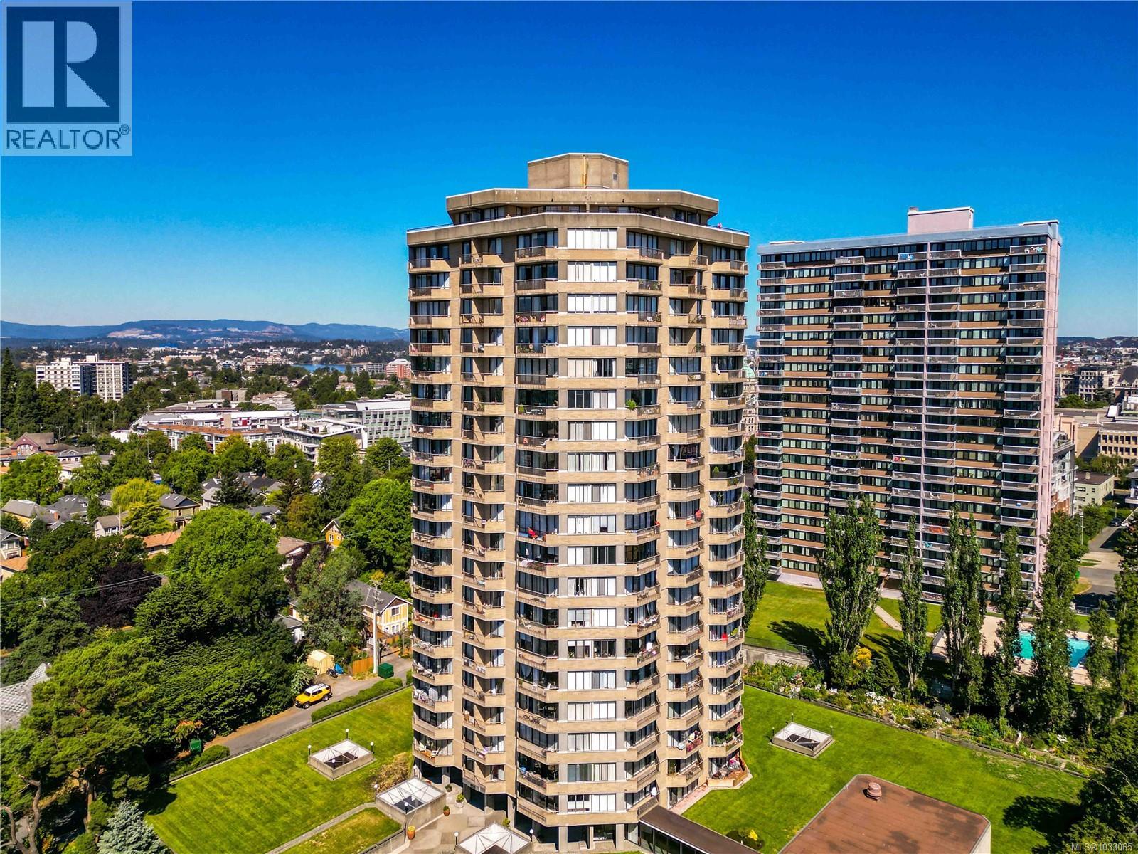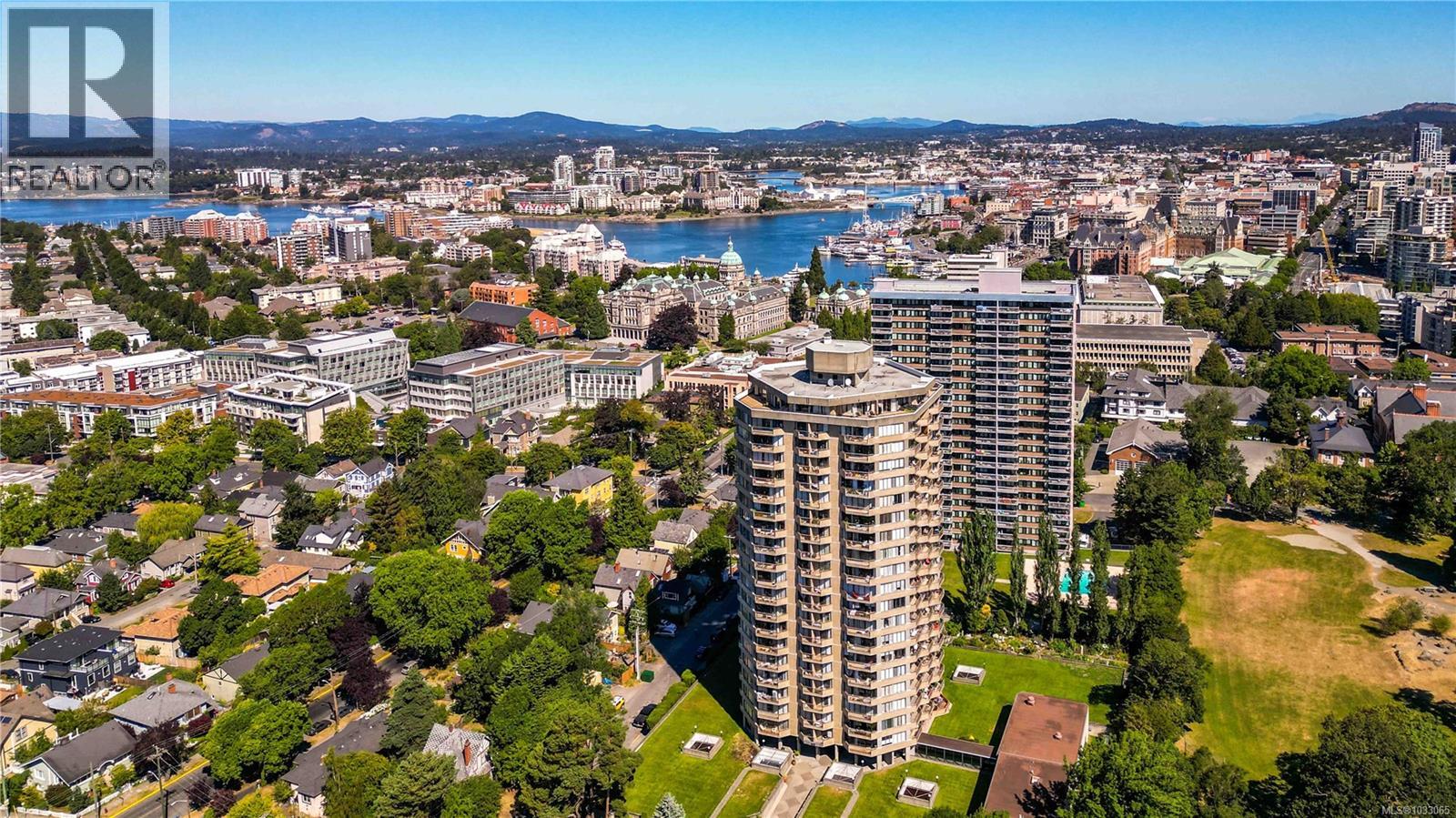 $655.98 MonthlyRare 19th floor concrete and steel 2 bedroom, 1 bath condo in sought-after Robert’s House. Stunning views over Beacon Hill Park, from the Strait and Trial Island to Mt. Baker and the Salish Sea. You will appreciate the quality upgrades, including newer kitchen cabinets with granite counters and stainless steel appliances. Updated floors throughout, with crown moldings adding a finished look. One of the best amenity packages in Victoria, including an on-site caretaker, indoor pool, hot tub, sauna, exercise room, 2 guest suites, kayak and bike storage plus secure underground parking. Heat and hot water are included in the strata fees. Pets and rentals are welcome. Steps to Beacon Hill Park, Dallas Road waterfront and downtown. Not just a condo, but a community to move into. (id:44393)